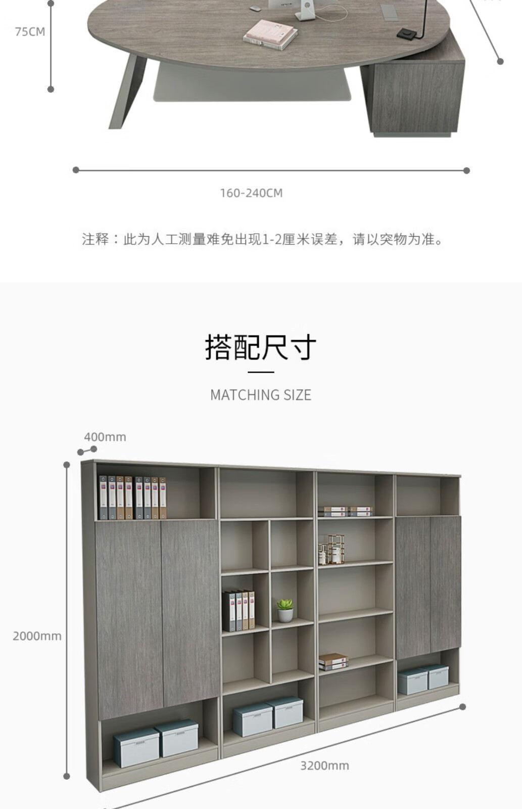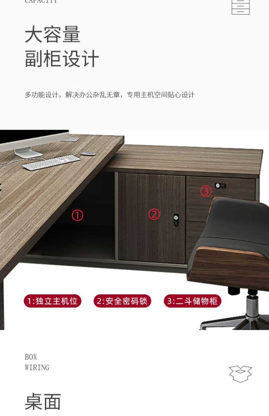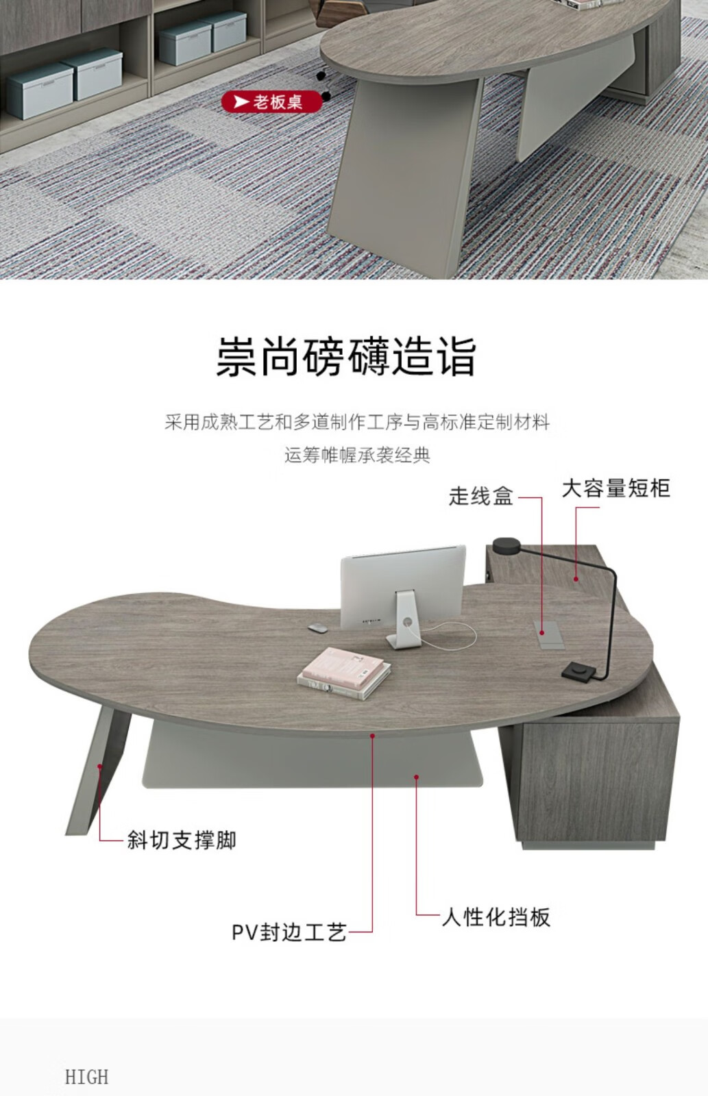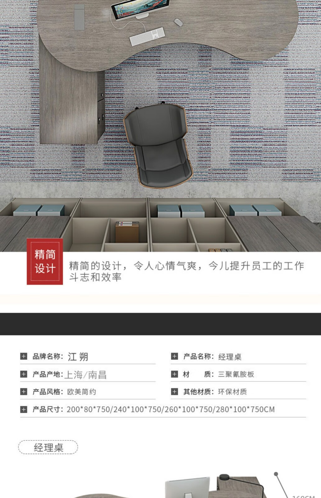 Tiju Boss Desk Simple Modern President Manager Office Curved Supervisor Executive Desk Furniture Table and Chair Combination 2.0 Meter Boss Desk