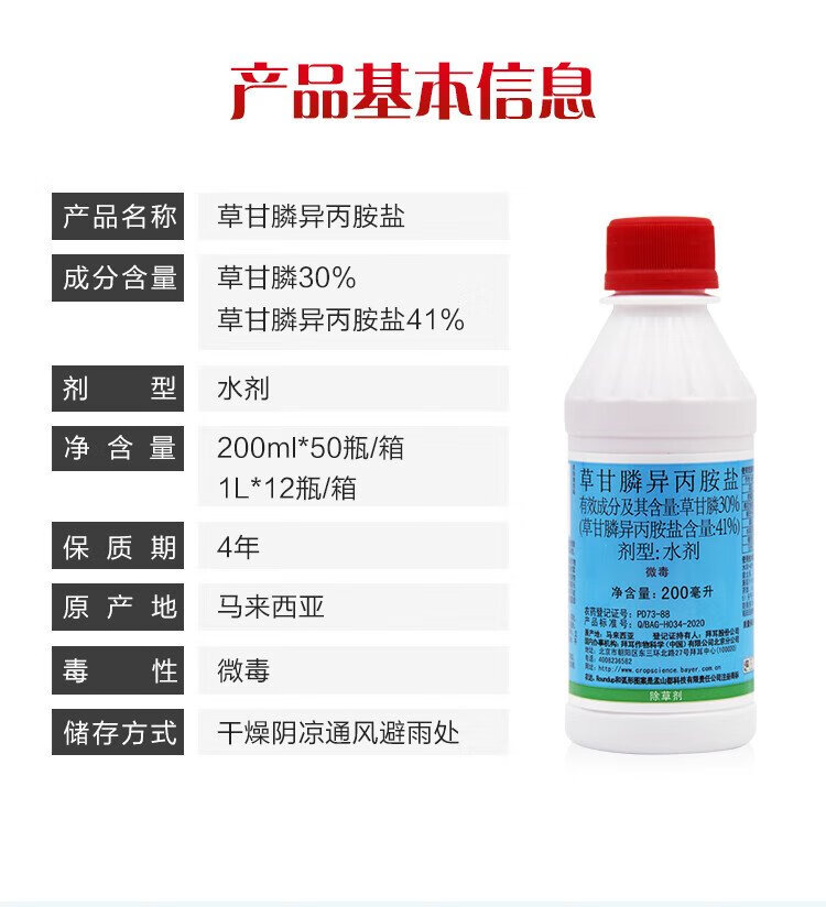 Roundup ROUNDUP U.S. Monsanto 41% glyphosate isopropylamine salt wasteland weed killing herbicide pesticide 200ml 10 bottles