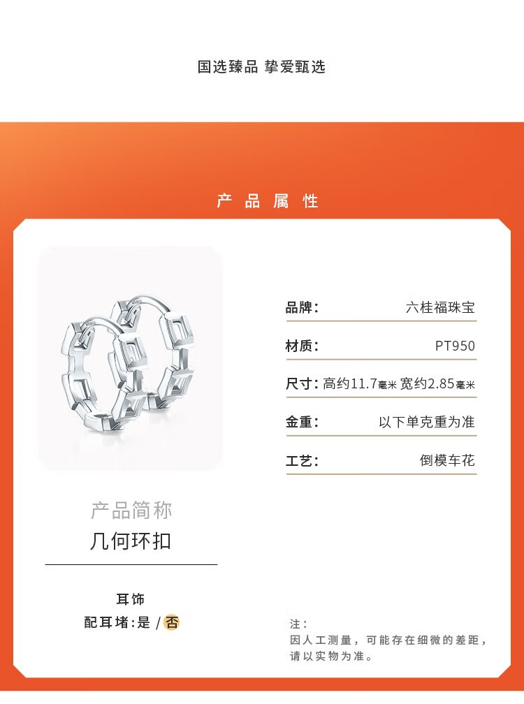 Liuguifu Jewelry Platinum Earrings for Women Pt950 Platinum Geometric Earrings Earrings for Girlfriend’s Birthday Gift 2.25g