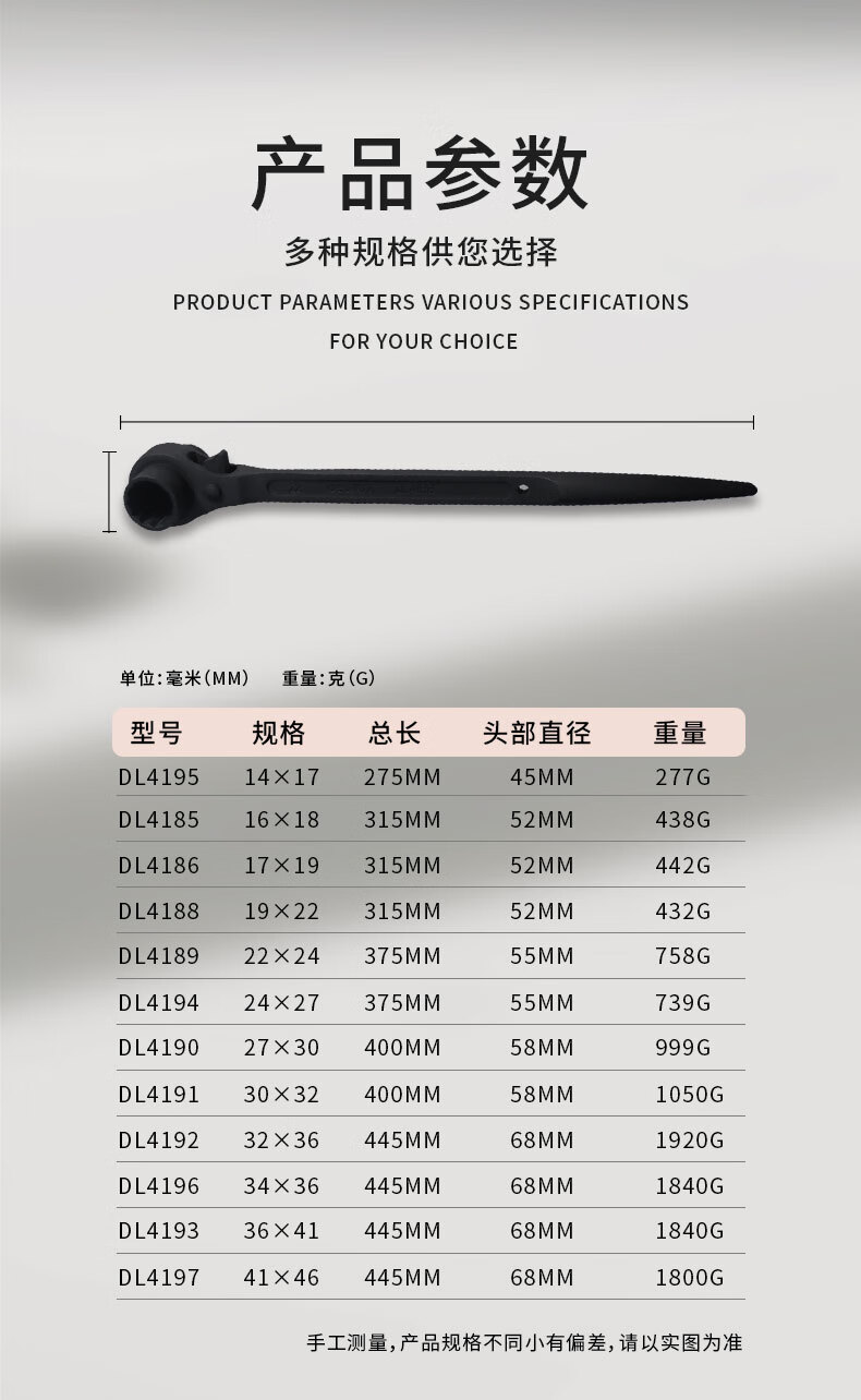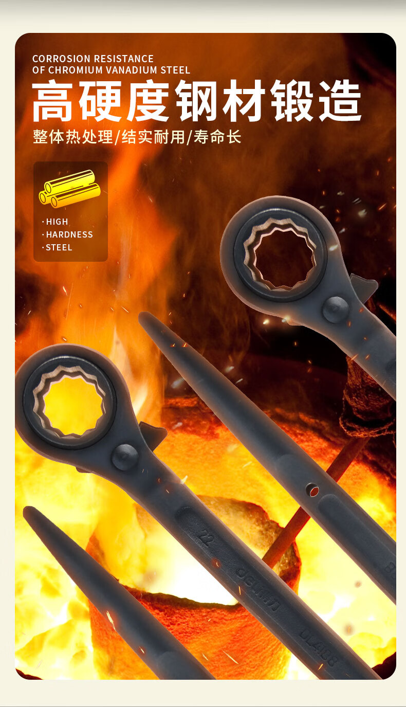 Deli sharp tail ratchet wrench, fast and labor-saving, plum blossom quick plate wrench, two-way multi-functional spur wheel socket tool, sharp tail ratchet wrench 30*32mm