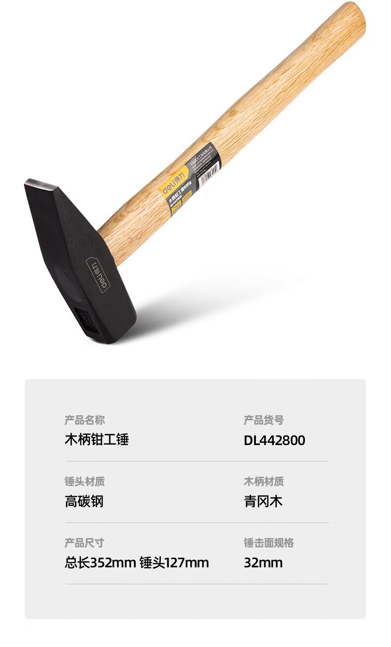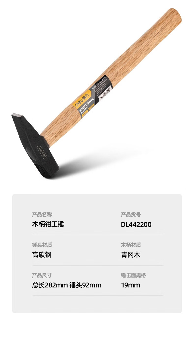 Deli fitter hammer duckbill hammer small hammer sheet metal hammer electrician hammer mini hammer hand hammer flat hammer iron hammer tool wooden handle fitter hammer 300g