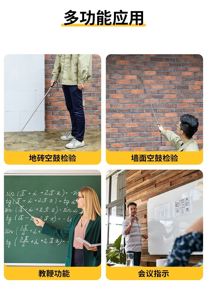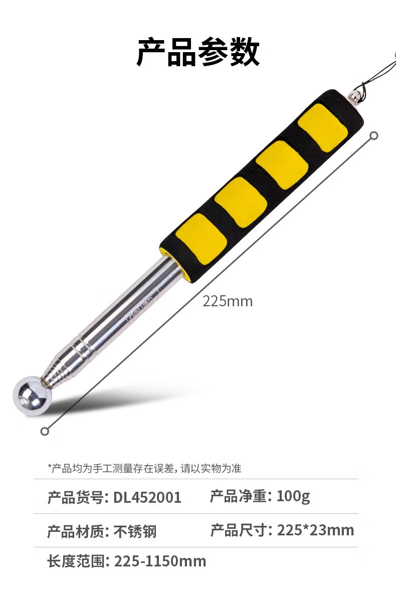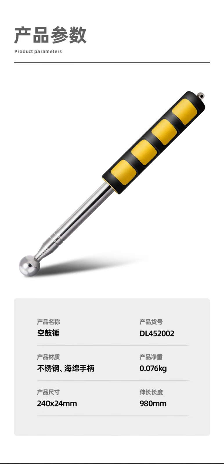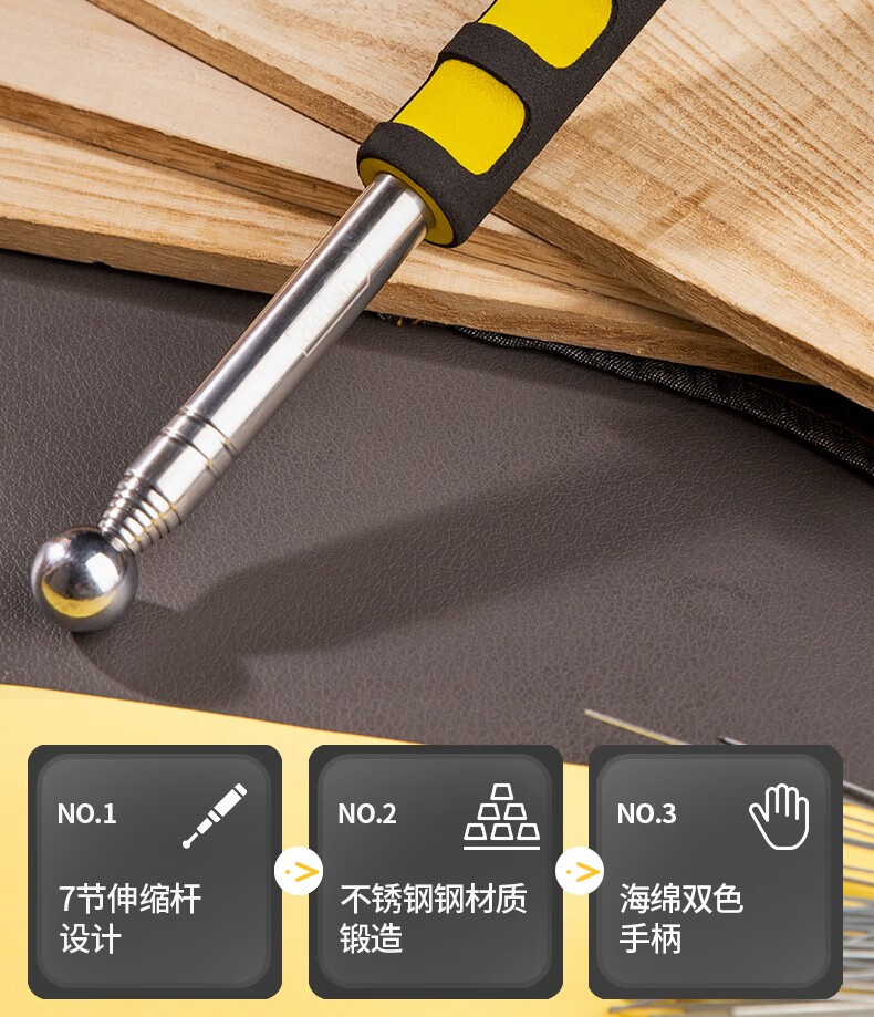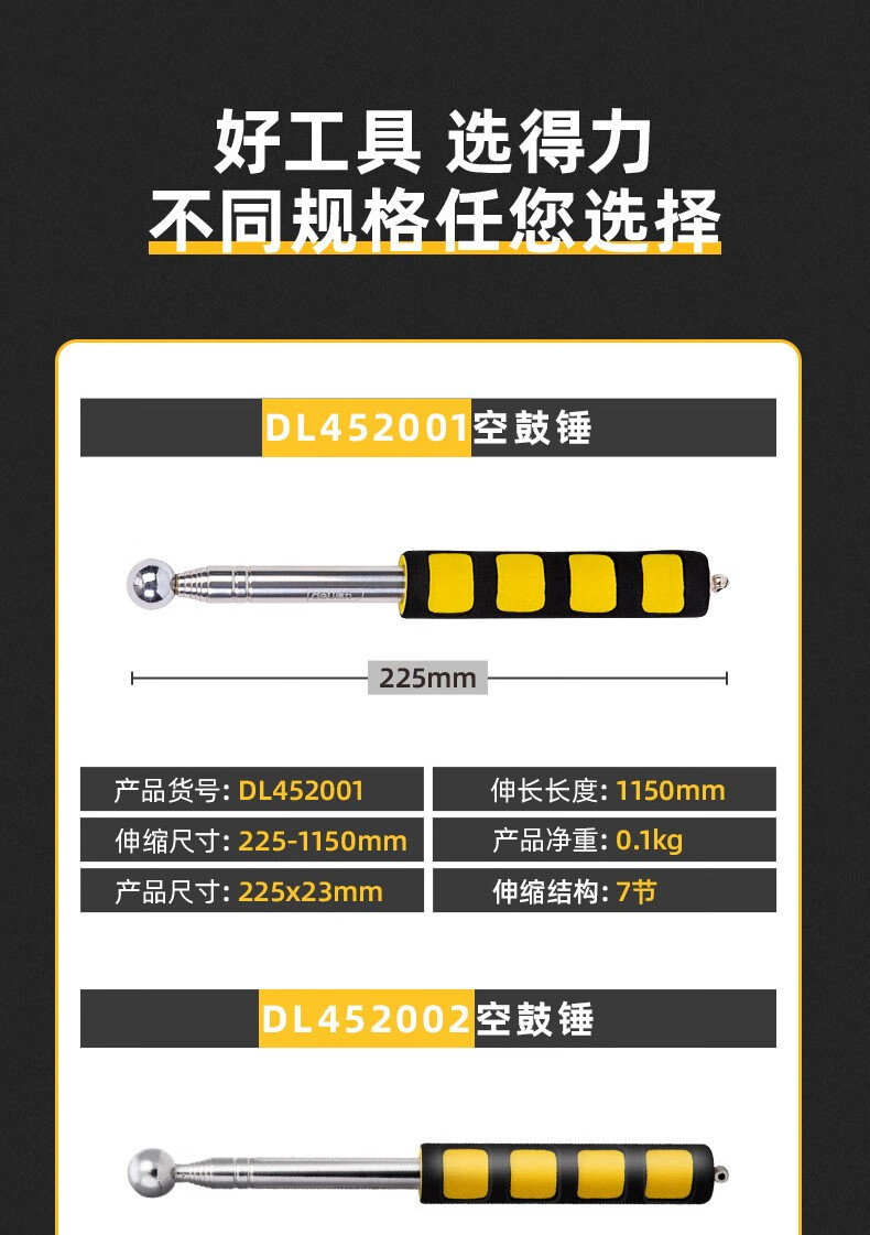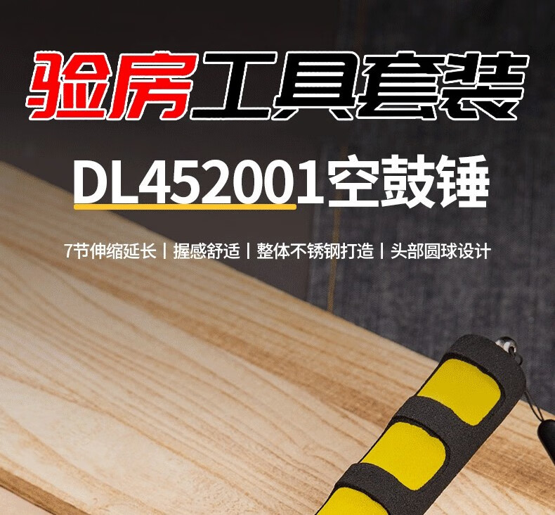 Deli hollow drum hammer house inspection tool set hammer telescopic stick tile inspection stainless steel inspection hammer ring drum hammer house inspection telescopic type 98CM hollow drum hammer DL452002