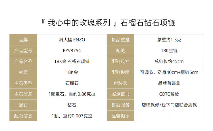 Chow Tai Fook ENZO 18K gold love garnet diamond necklace for women EZV8754 birthday gift 40cm