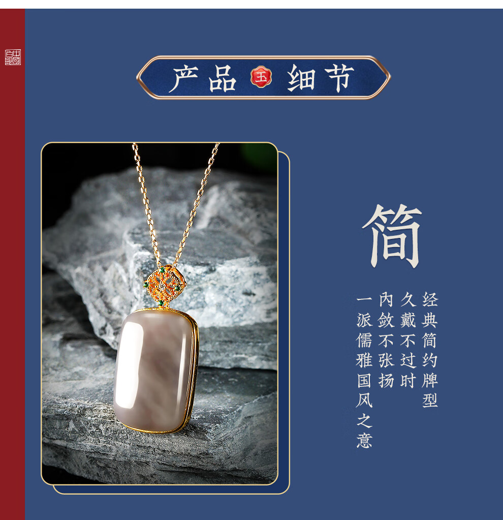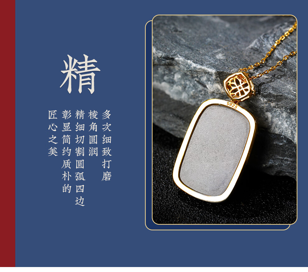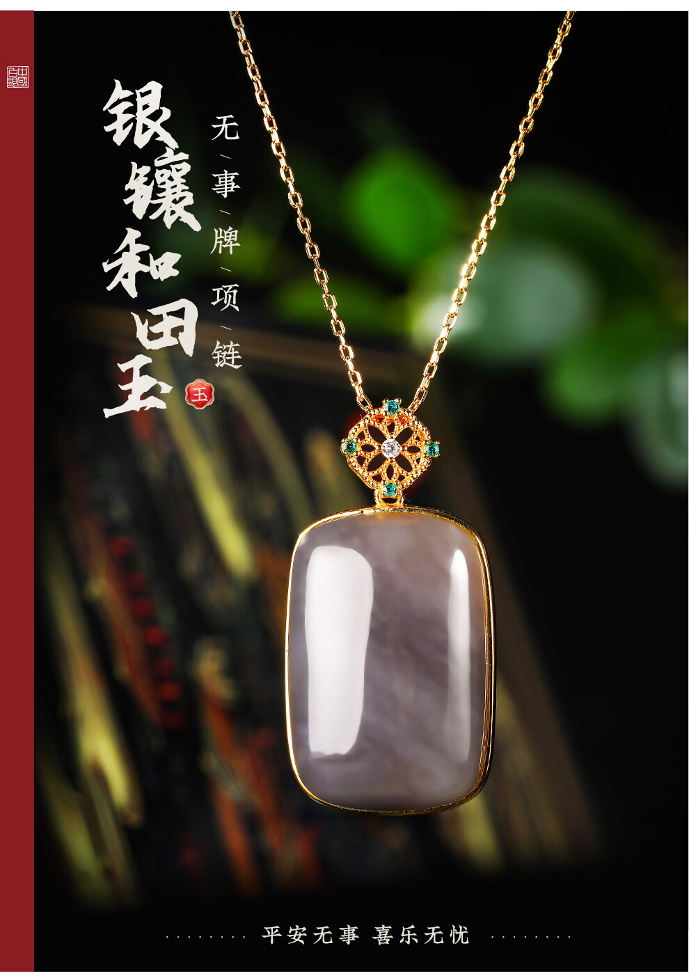 CS China Silver Hetian Jade Pendant Women's Nothing Brand Haoshi Silver Necklace for Girlfriend and Wife Holiday Birthday Gift Hetian Jade Nothing Brand