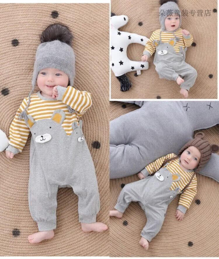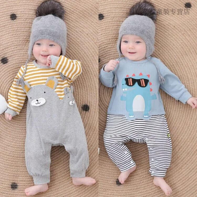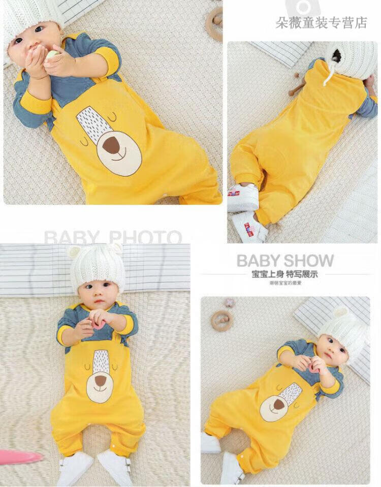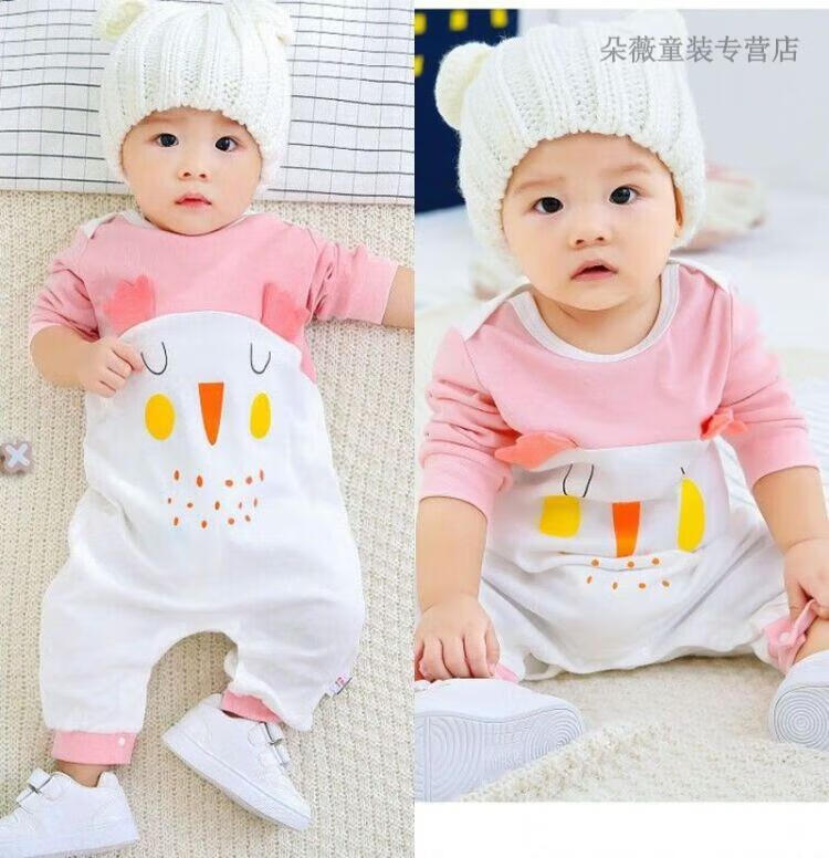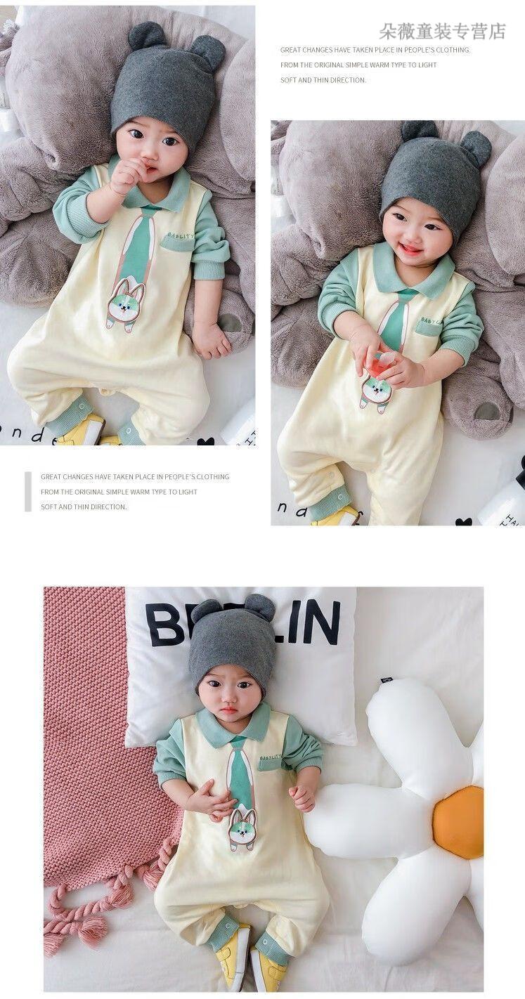 Disney (Disney) pure cotton baby jumpsuit for boys and girls, spring and autumn, toddler children's clothing, pajamas, baby clothes, newborn bag fart clothes for going out, white Snoopy, long sleeves, spring and autumn style, 90cm 20-24Jin Jin is equal to 0.5 kg
