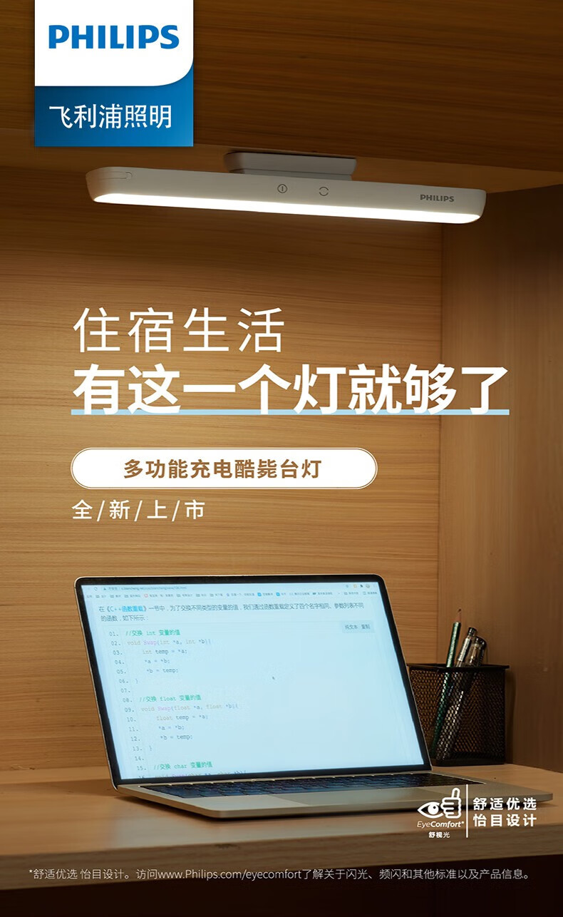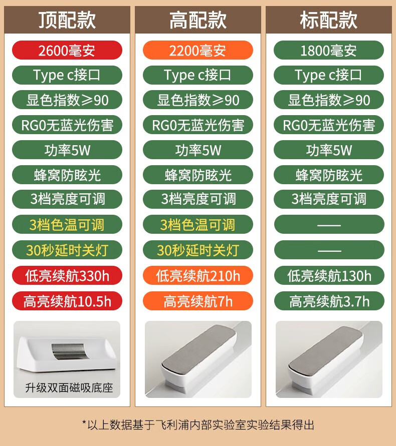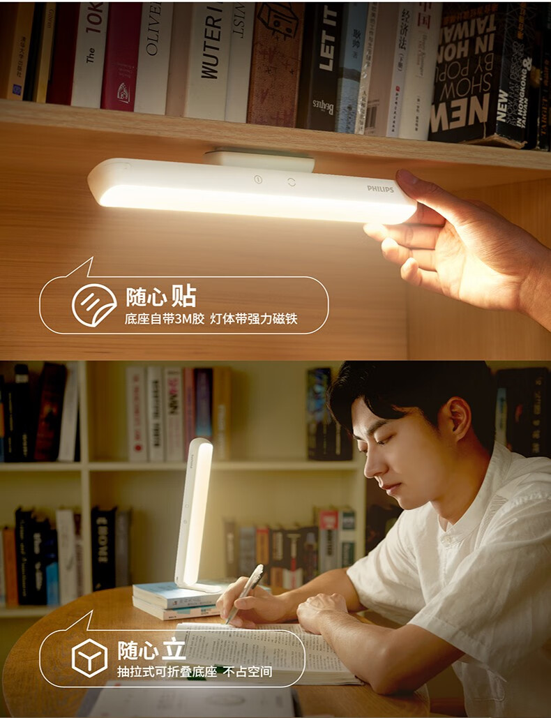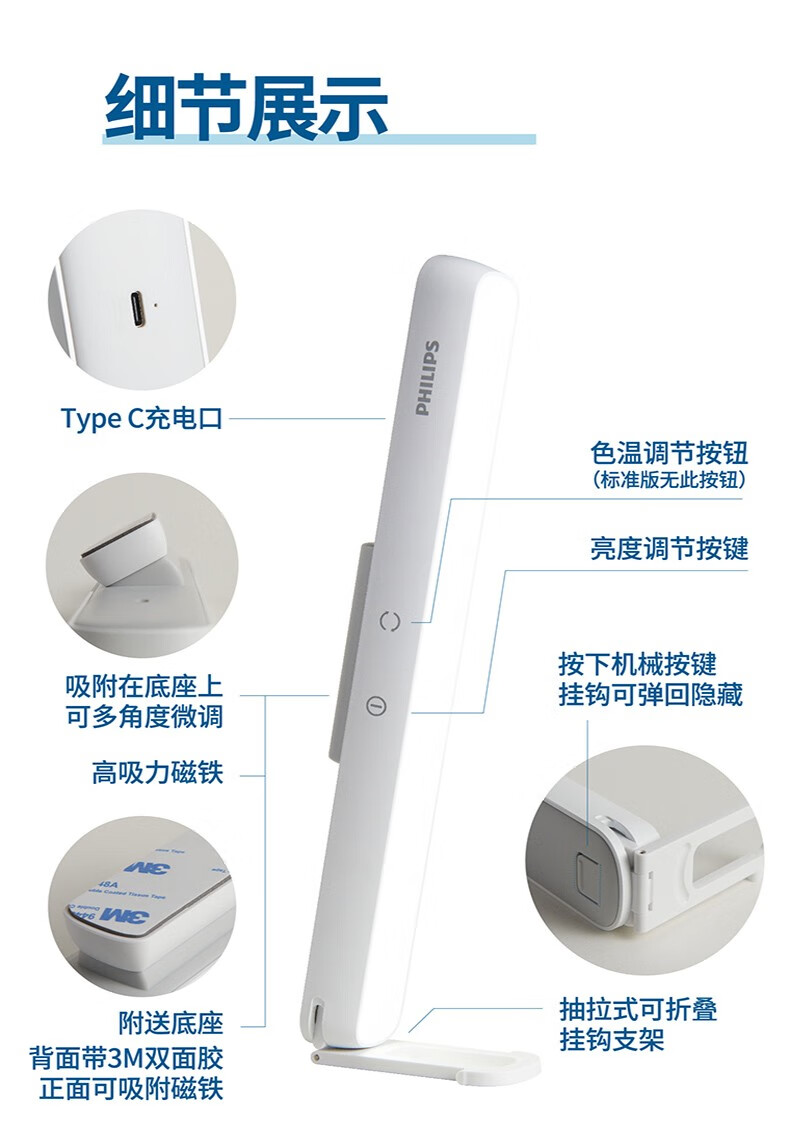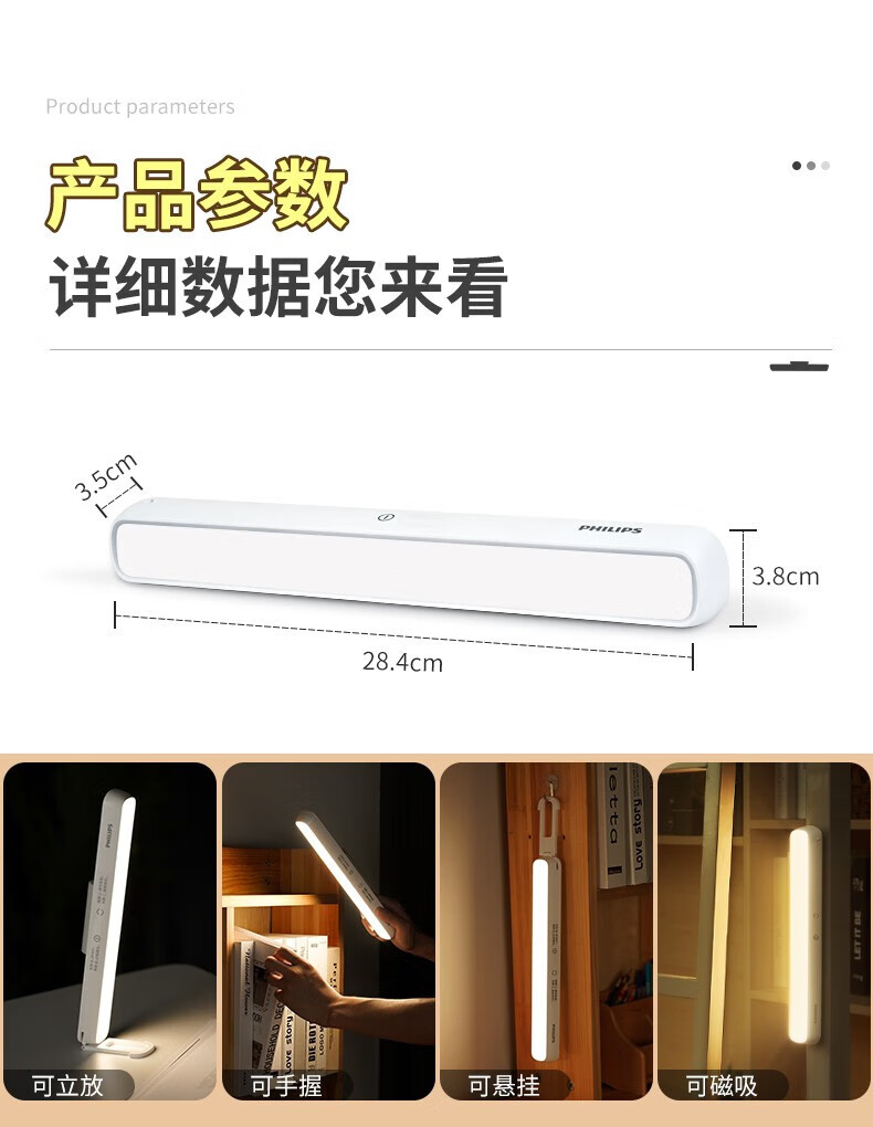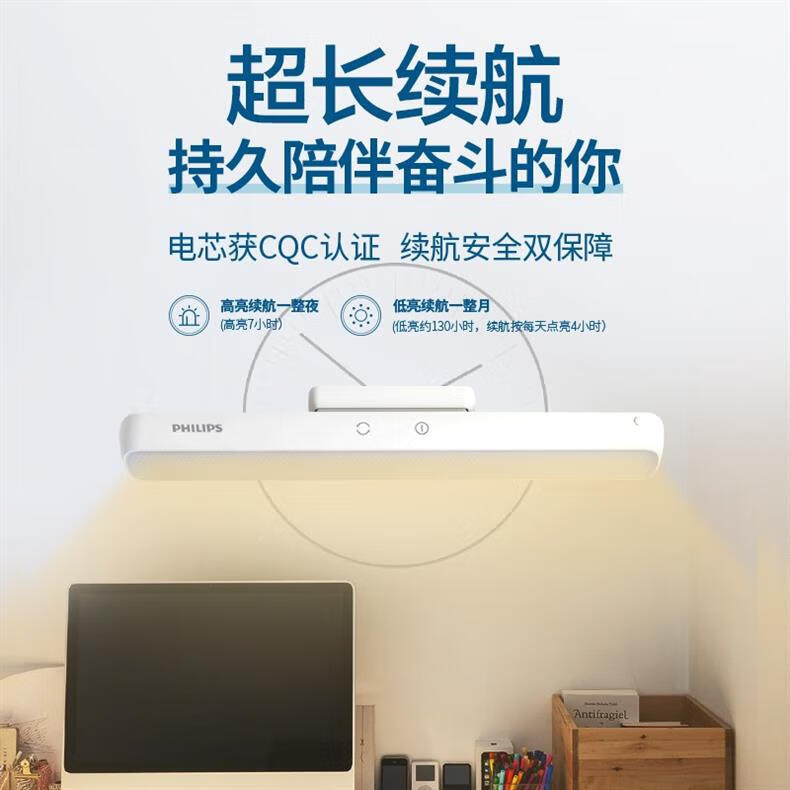 Philips (PHILIPS) led student rechargeable desk lamp school dormitory artifact adsorption led rechargeable emergency desk lamp cool lamp top version 330 hours long battery life dimming and color matching