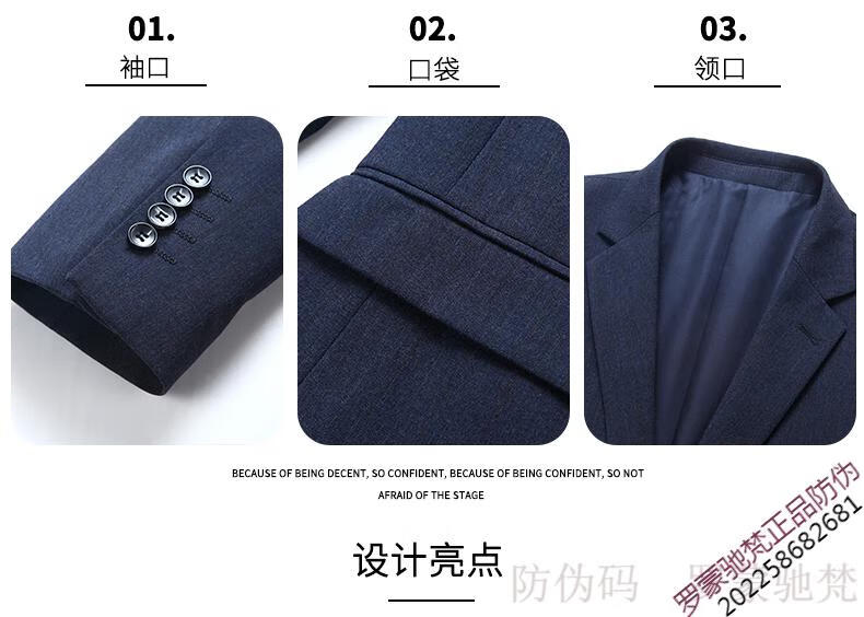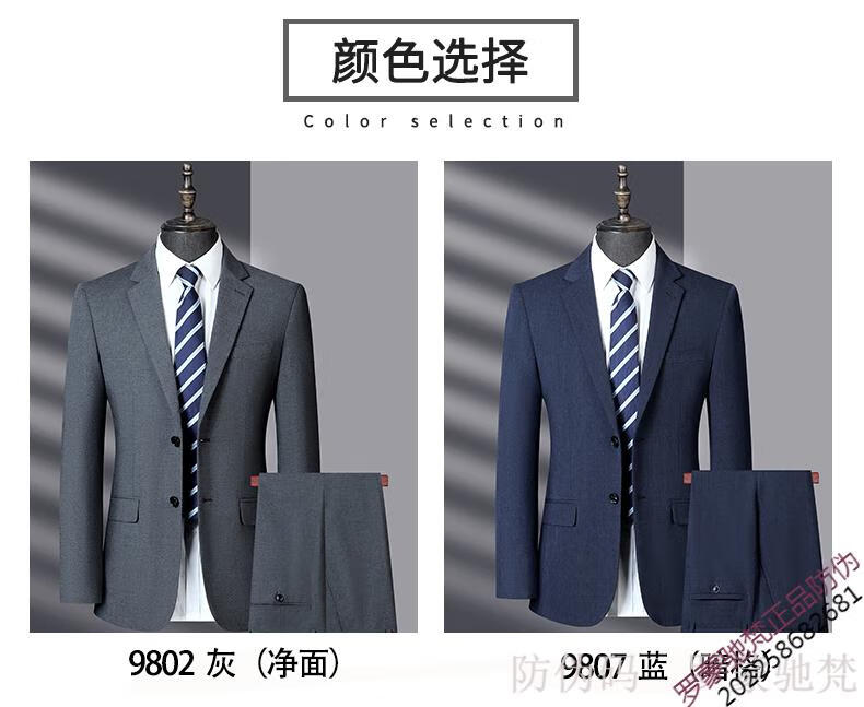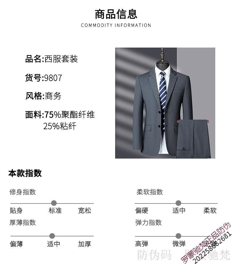 ROMON suit men's suit business casual formal suit Korean version slim groom wedding dress men's suit two-piece new product 9807 blue dark grid L 175/48