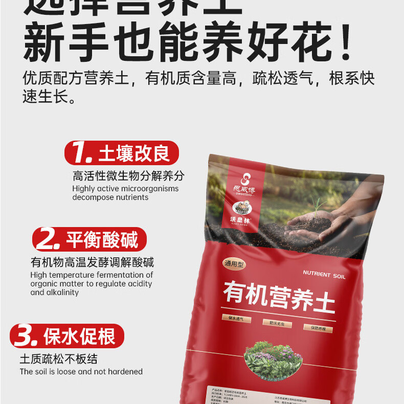 Siweibo nutritional soil for growing vegetables and flowers, general-purpose organic flowering soil, planting soil, soil for green plants, potted peat, 40Jin Jin is equal to 0.5kg, organic general-purpose nutritional soil