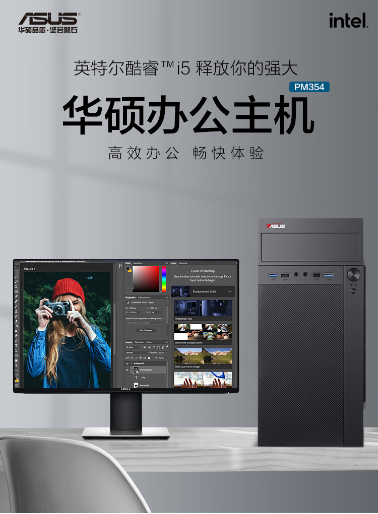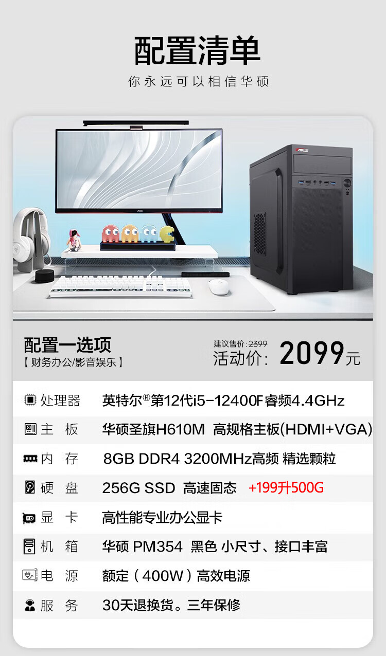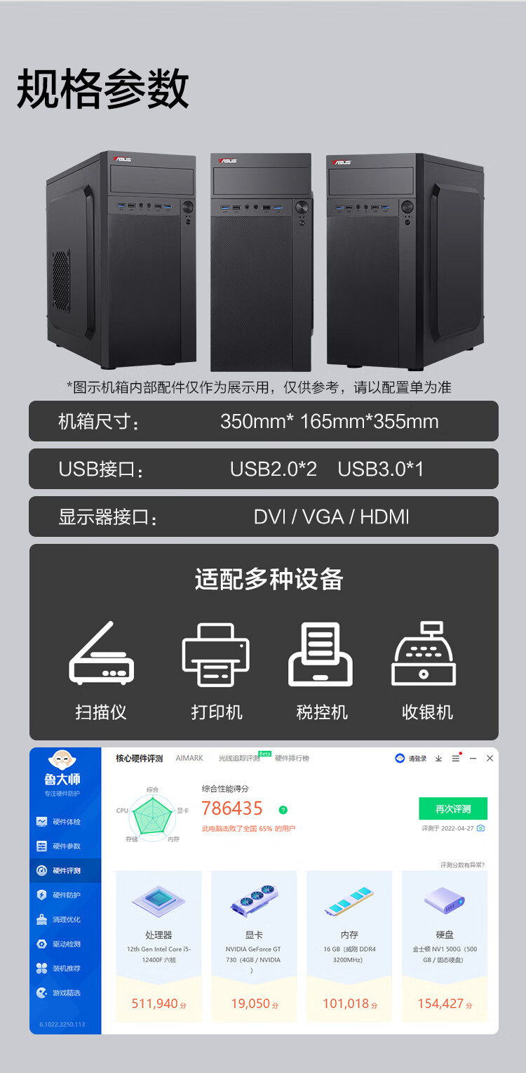 ASUS i5 12400F/13400F enterprise front desk home customer service office cashier independent display host DIY assembly machine desktop design computer host configuration two i5 12400F/16G/500G/independent display