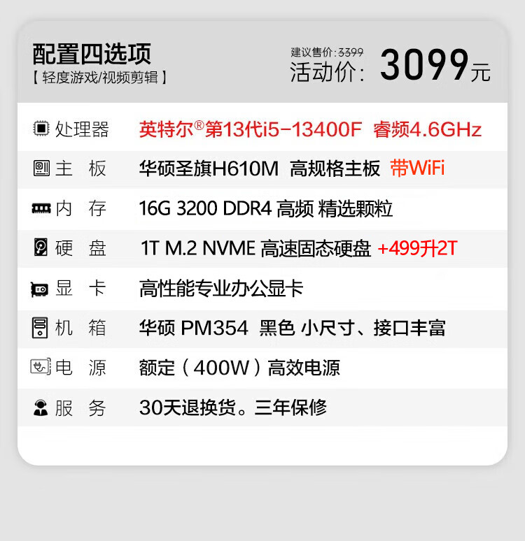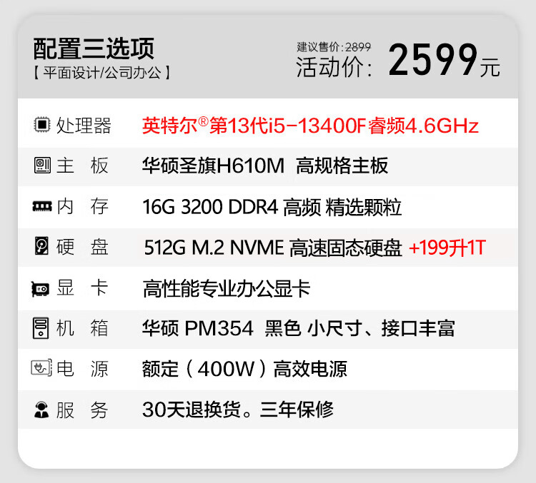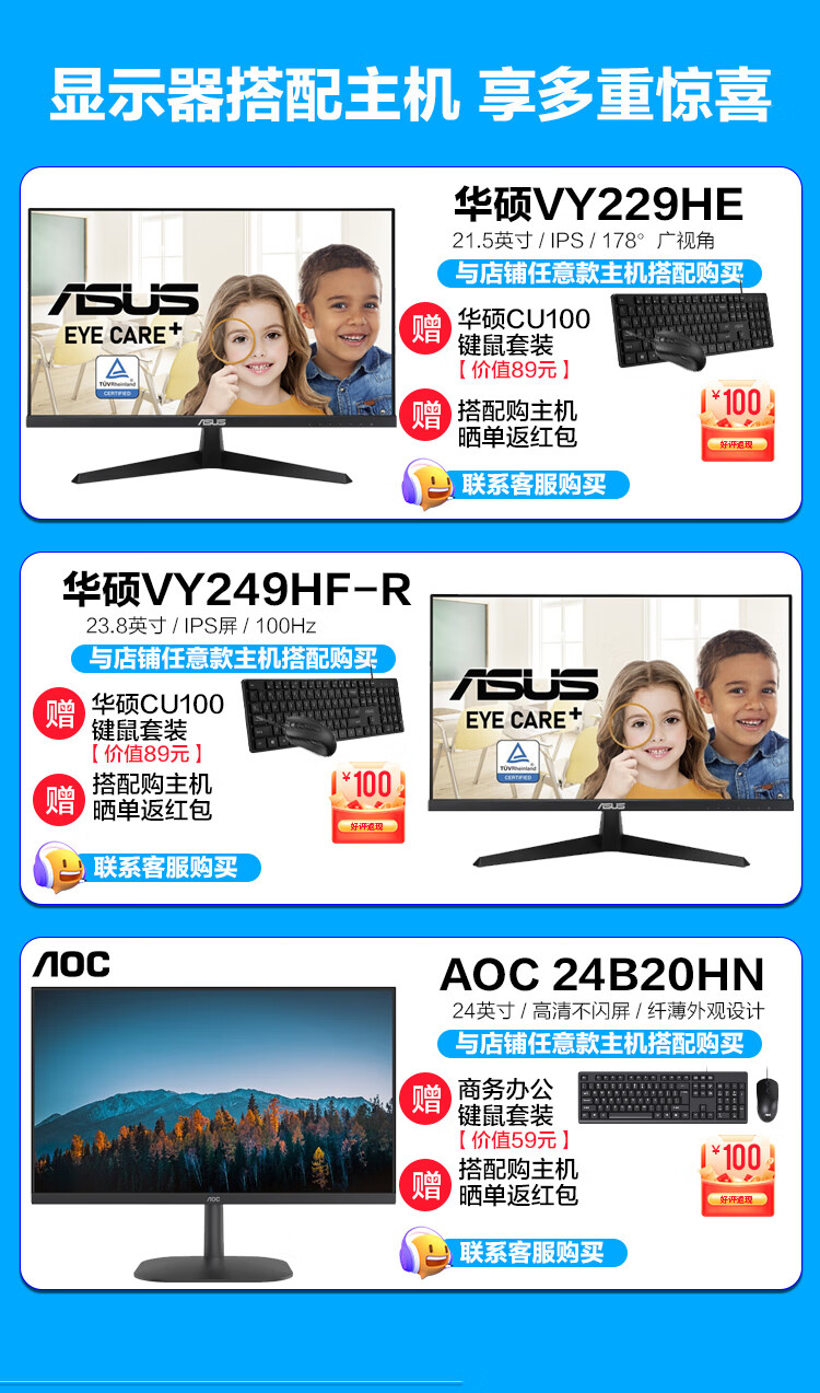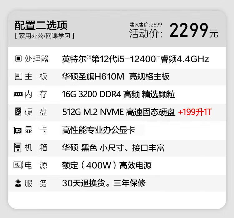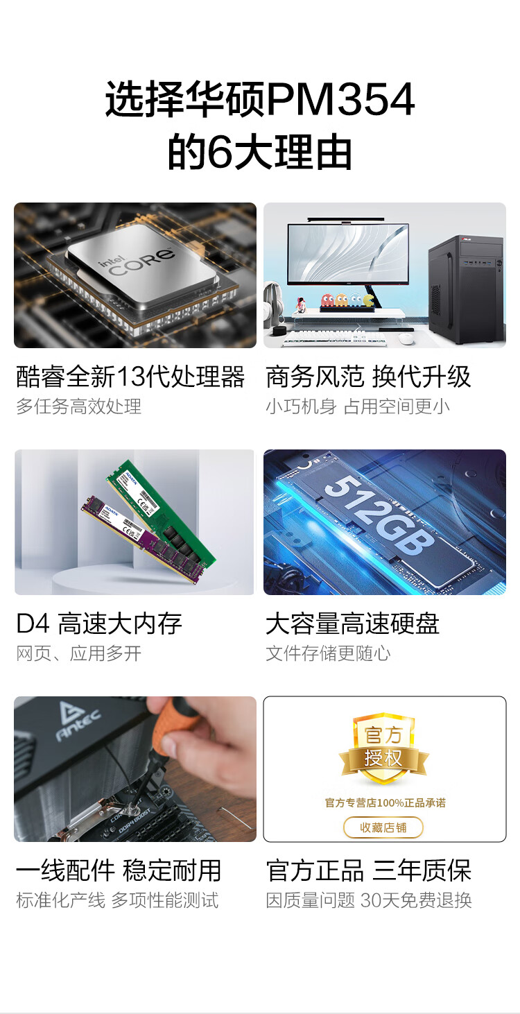 ASUS i5 12400F/13400F enterprise front desk home customer service office cashier independent display host DIY assembly machine desktop design computer host configuration two i5 12400F/16G/500G/independent display