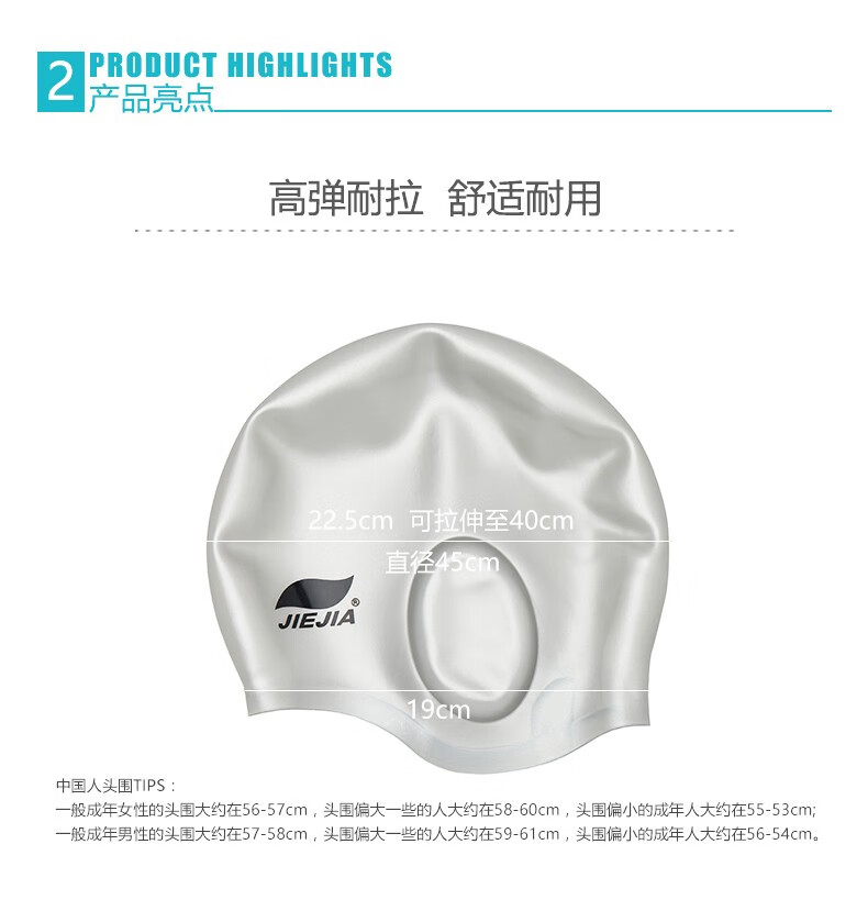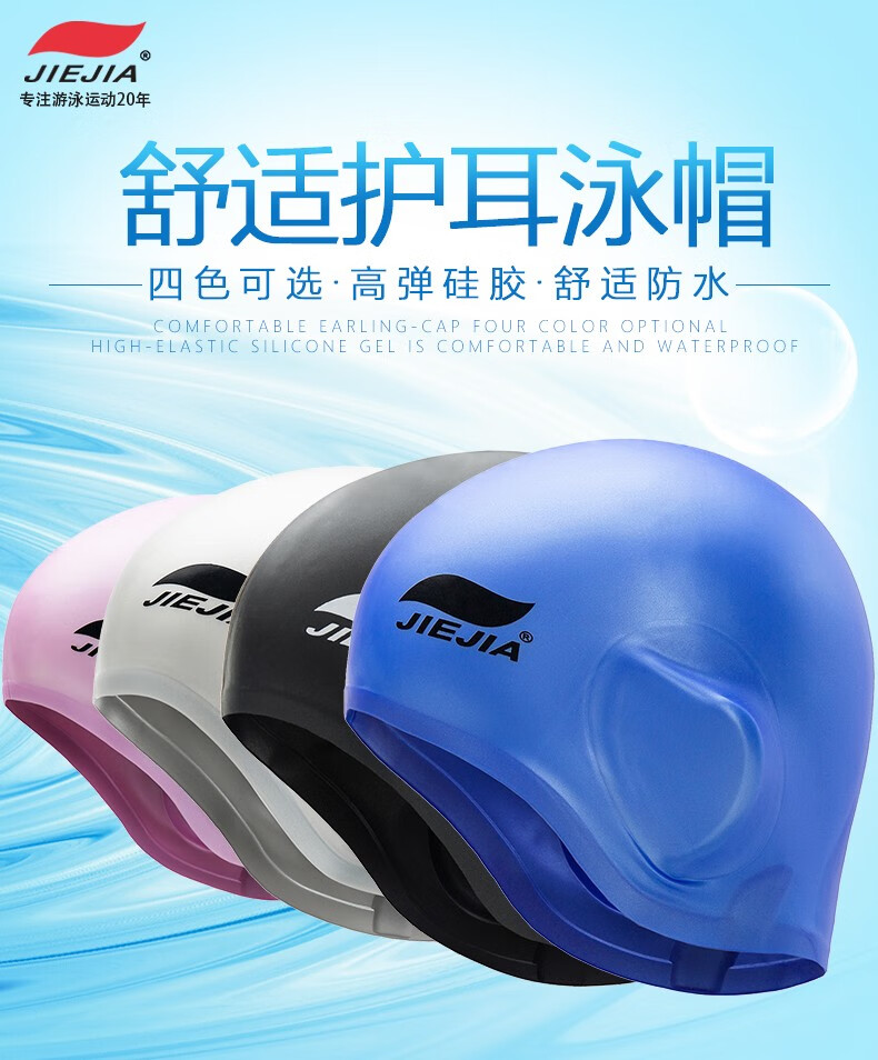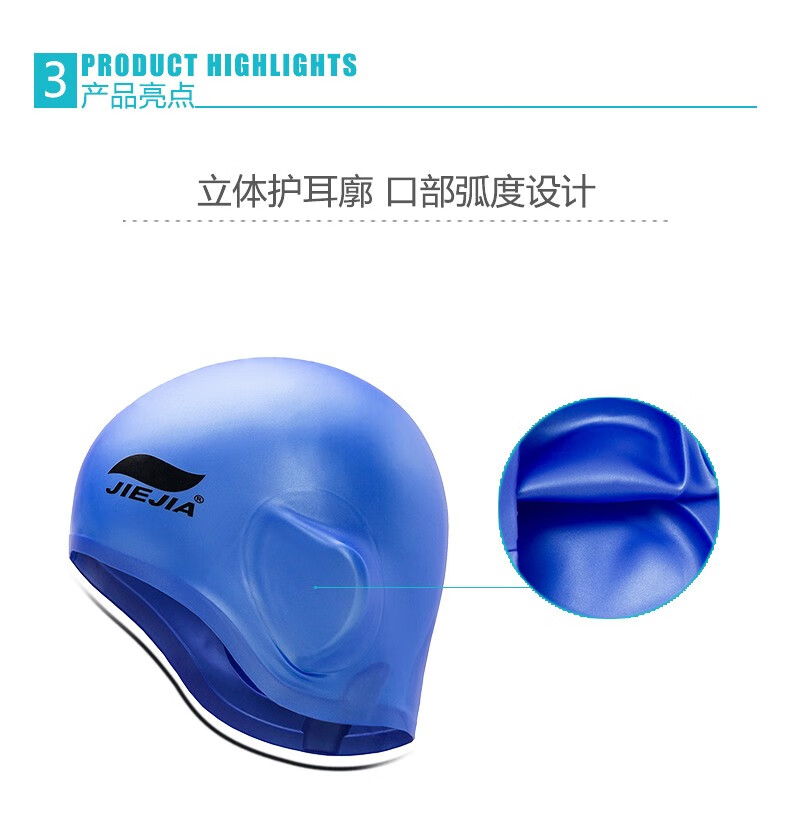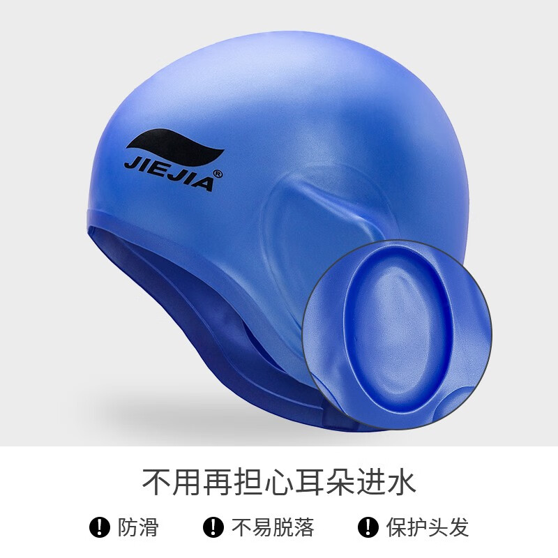 Jiejia new silicone swimming cap ear protection waterproof enlarged swimming cap anti ear water hat unisex equipment ear protection cap blue