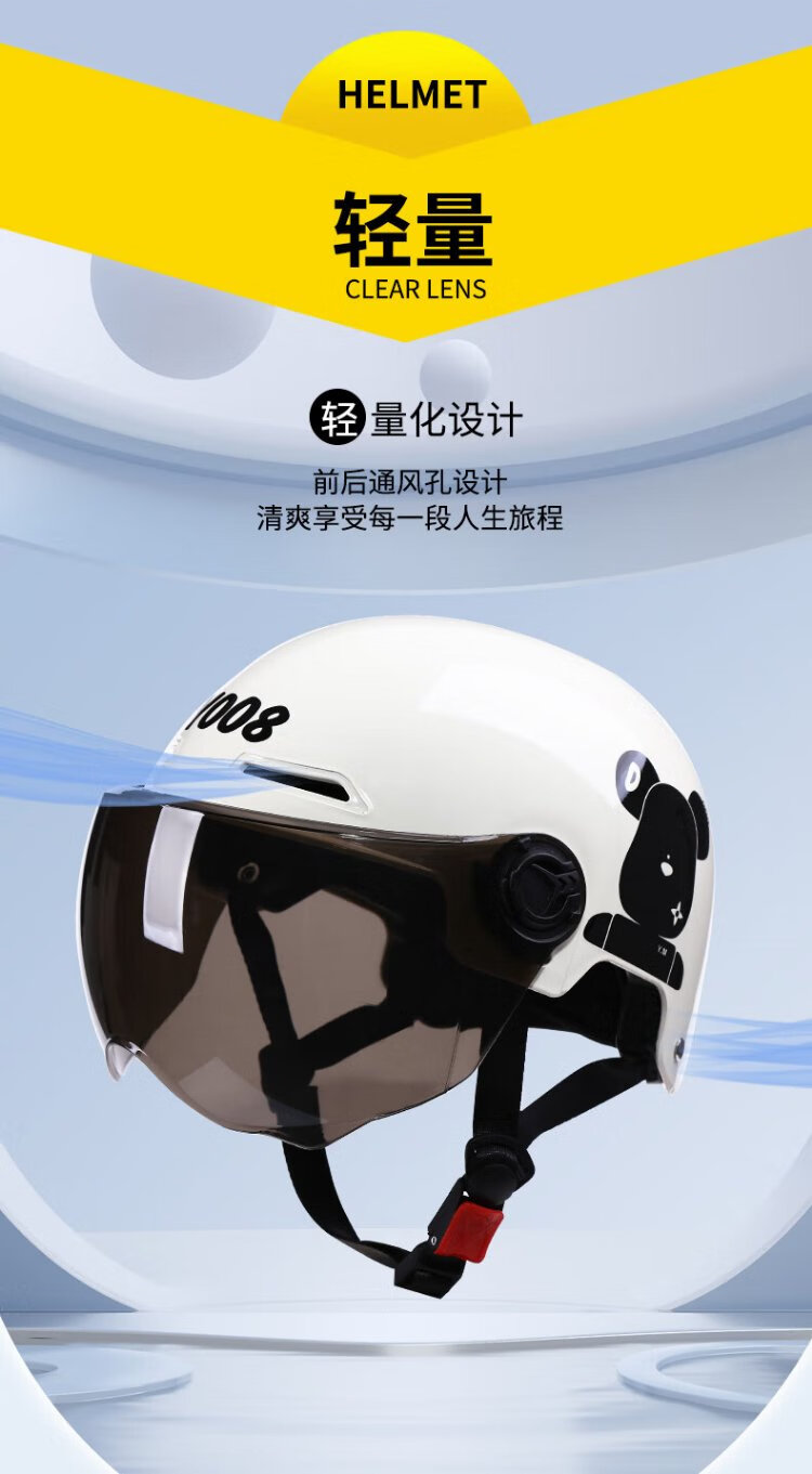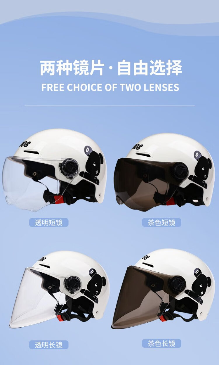 DYM3C certified electric battery car helmet for men and women, summer sun protection, all-season use, cute safety helmet, national standard half helmet, 3C frosted grizzly + cat ears, transparent
