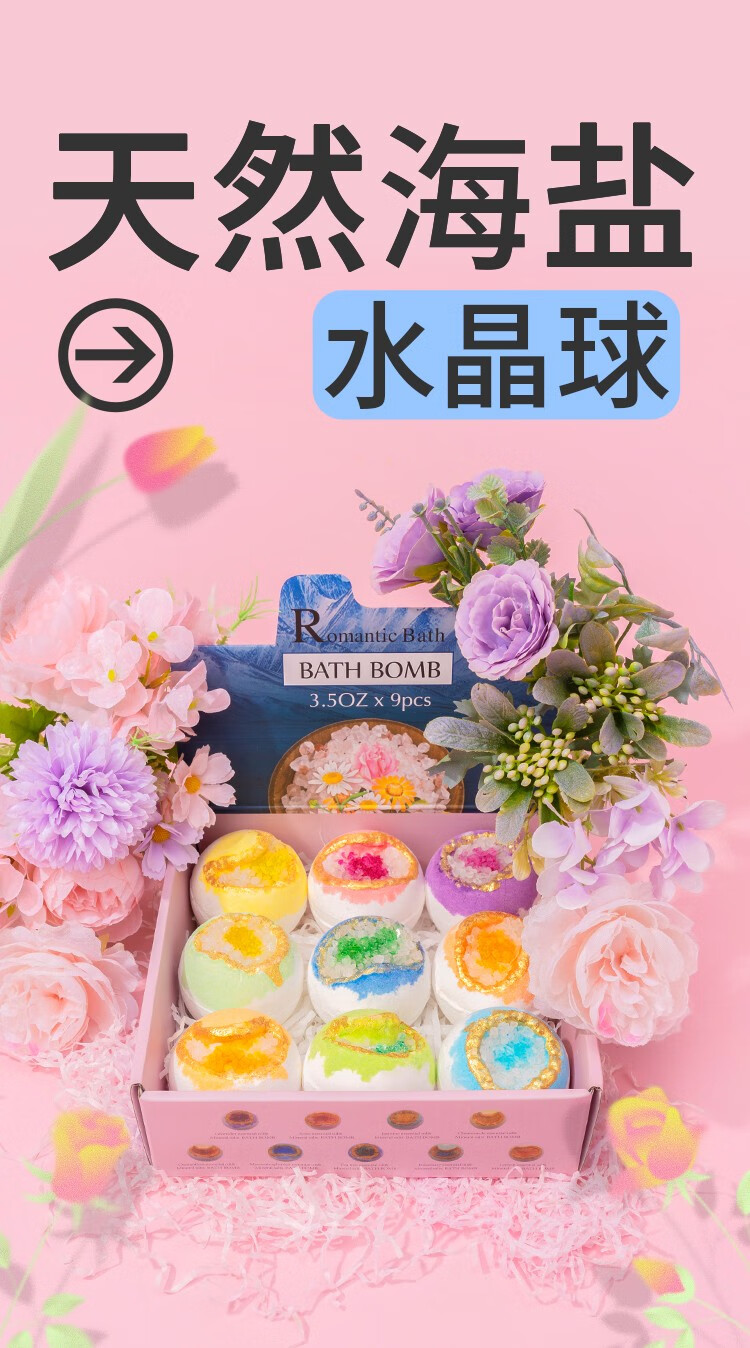 NARBERRY bath ball, explosive bath salt ball, bath ball, sea salt, dried flower bubble bath, fragrance essential oil ball, children's bath ball, crystal sea salt bath ball, gift box