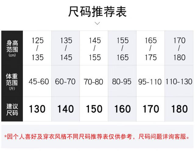 China (cm) 160-165/84-86 165-170 / 88-90 167-172 / 92-96 168-173 / 98-102 170-176 / 106-110