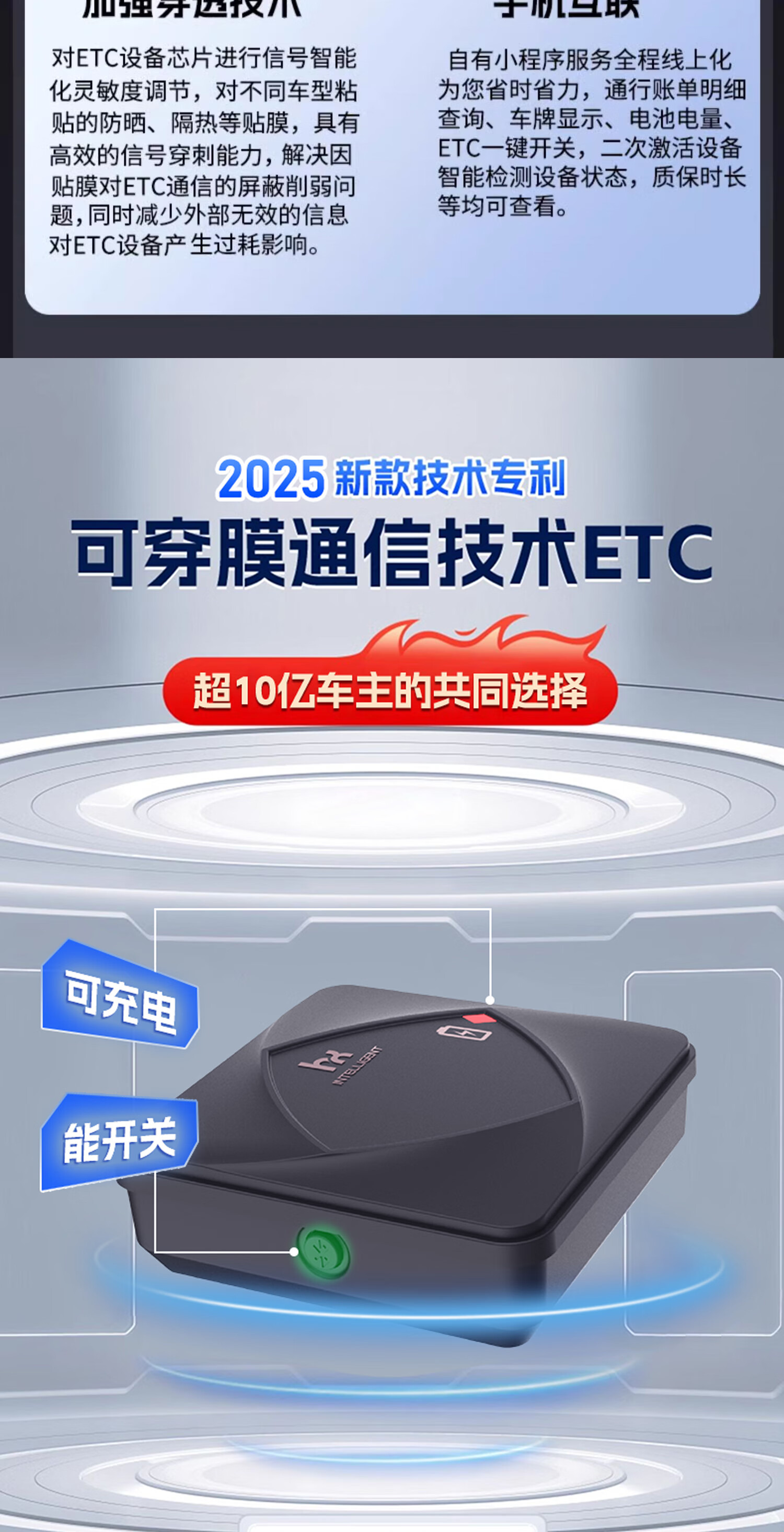 忞浵etc handles high-speed etc car equipment, national universal sticker-free glass hidden brand new smart card-less 50% off flagship mini black-switch charging model