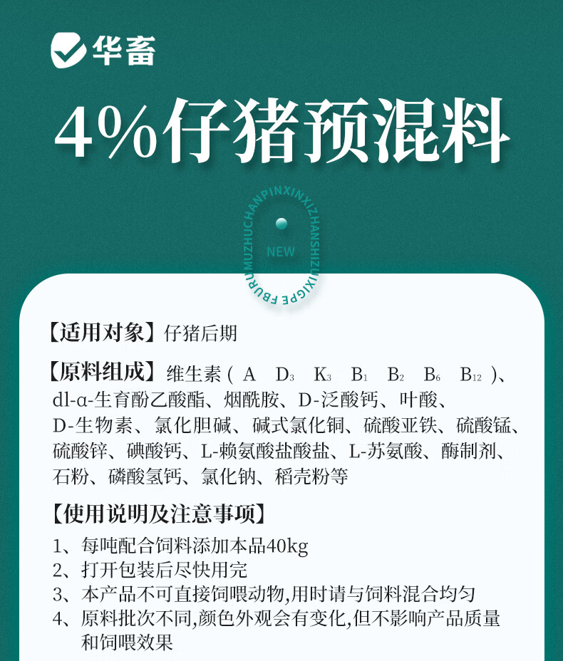 Hua livestock pig feed, piglet nursery feed, suckling pig creep feed, piglet opening feed, fattening and weight gain compound premix, 1 bag of creep feed, whole ton as low as 128/bag