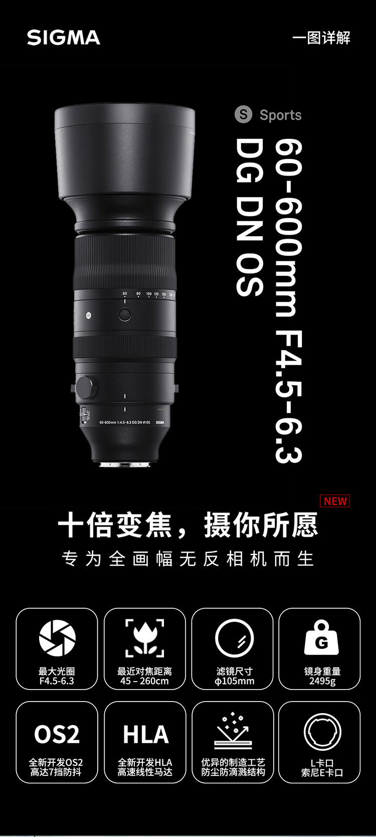 SIGMA 60-600mm F4.5-6.3 DG DN OS Sports full-frame mirrorless camera super telephoto zoom lens Sony E-mount
