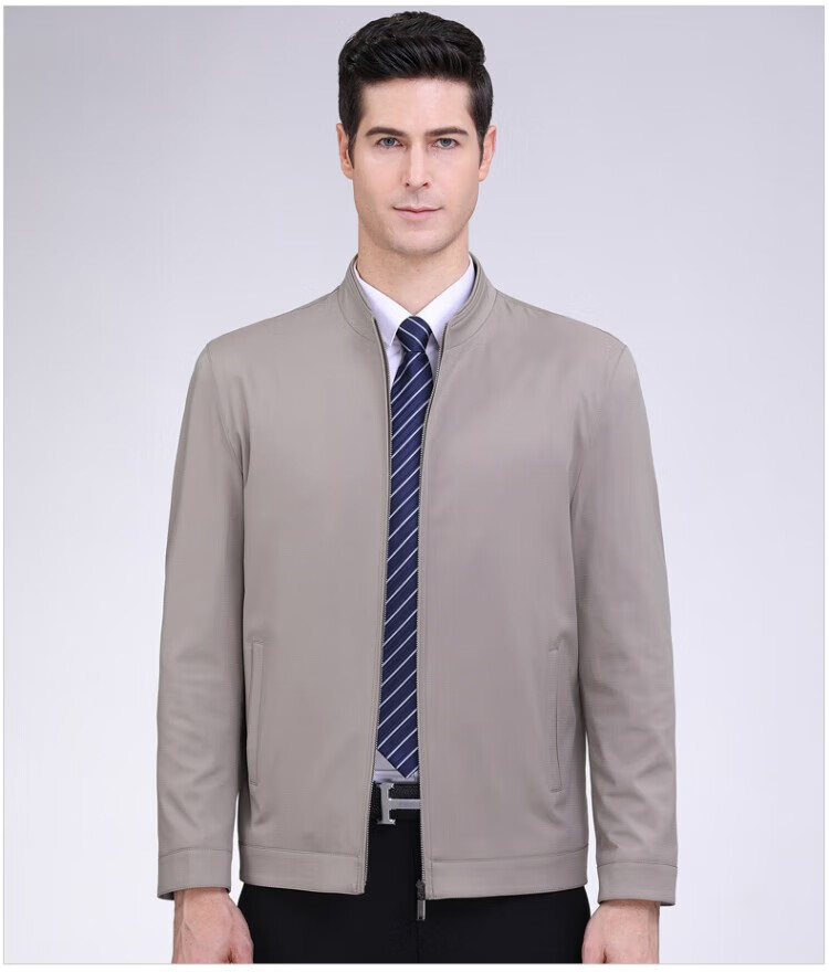 Hengyuanxiang Mulberry Silk Stand Collar Jacket Men Middle-aged Dad Clothing Cadre Business Jacket Spring and Autumn Casual Large Size Jacket Dark Blue Stand Collar 8689 XL 180 Recommended 145-160 Jin Jin equals 0.5 kg