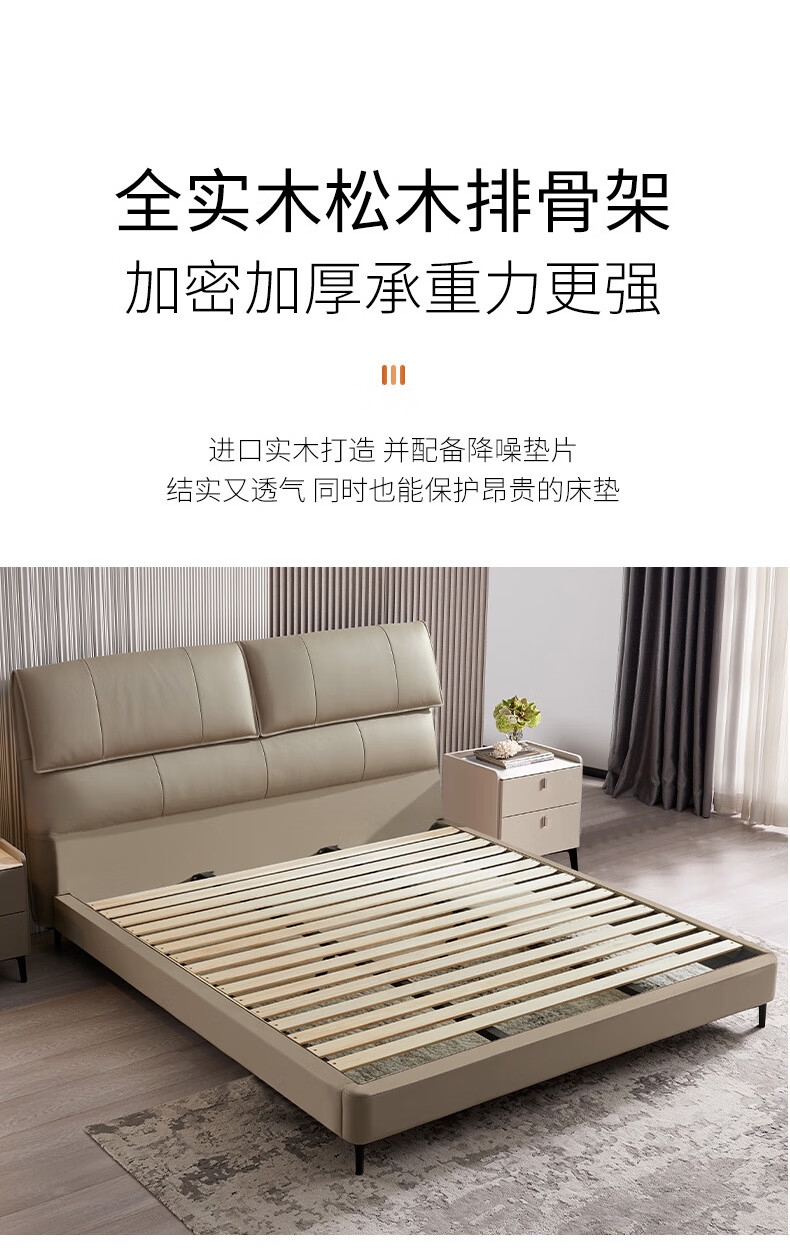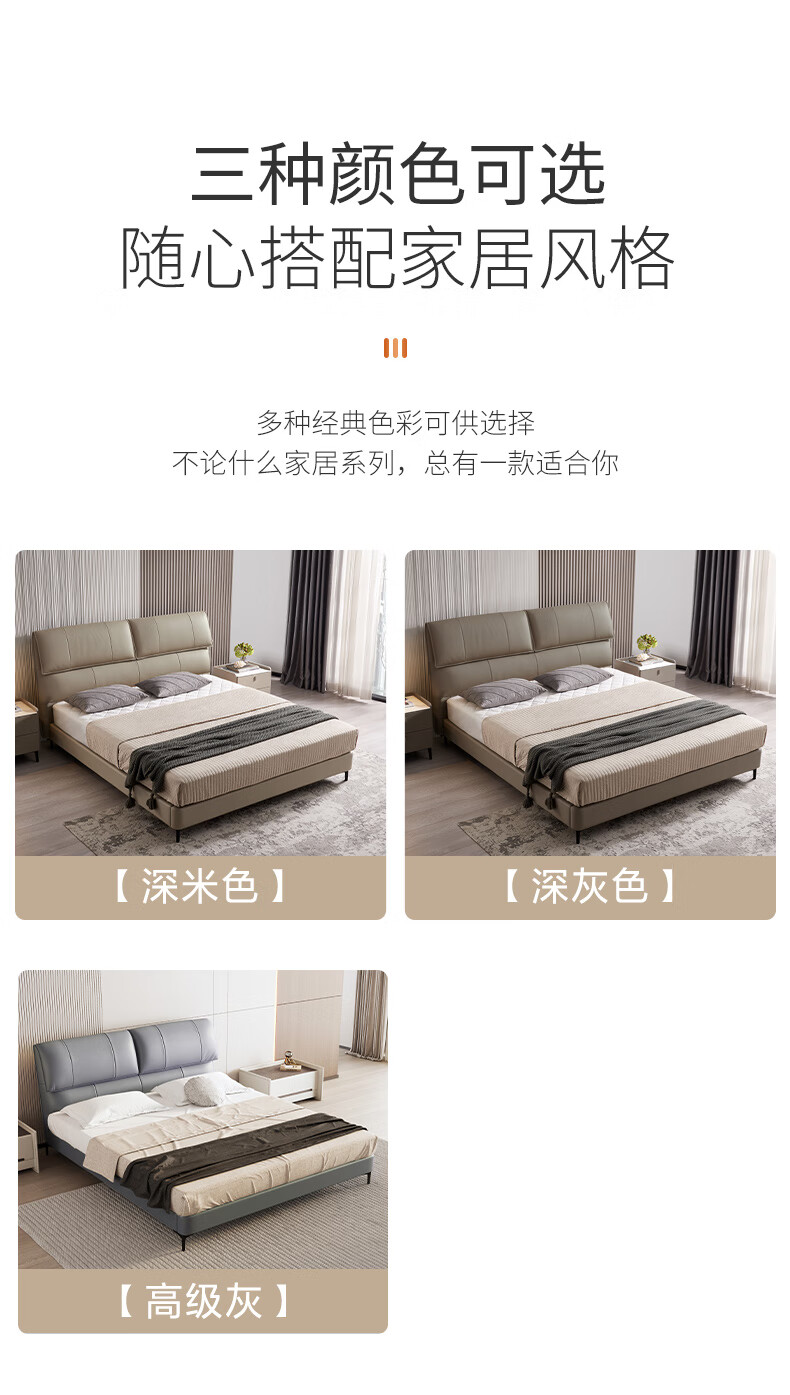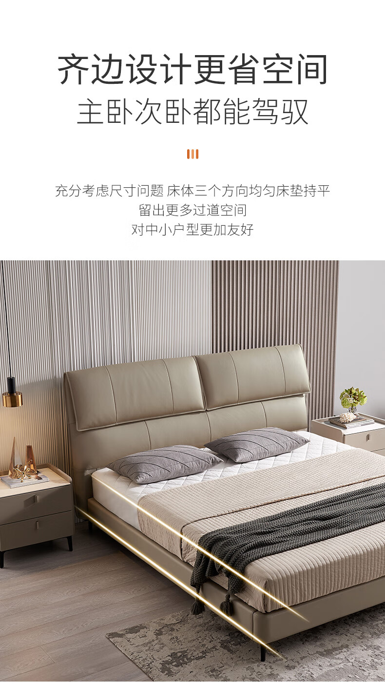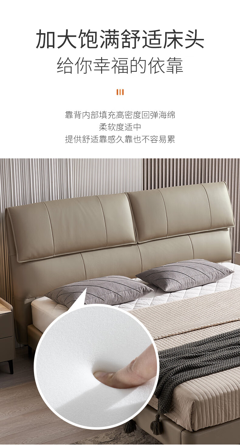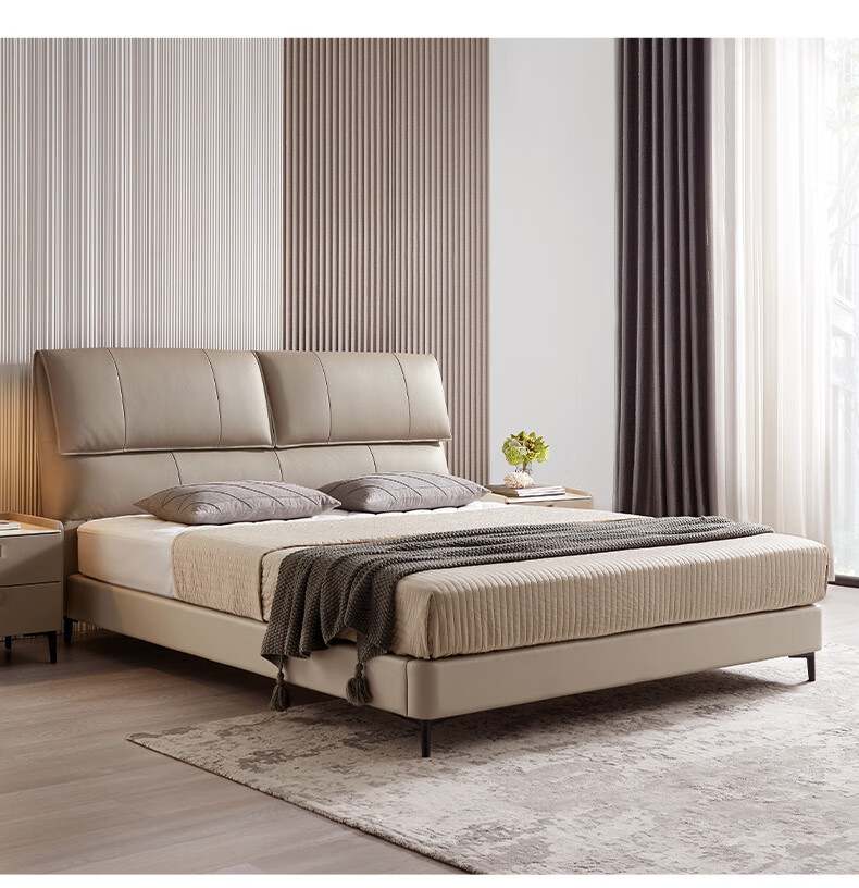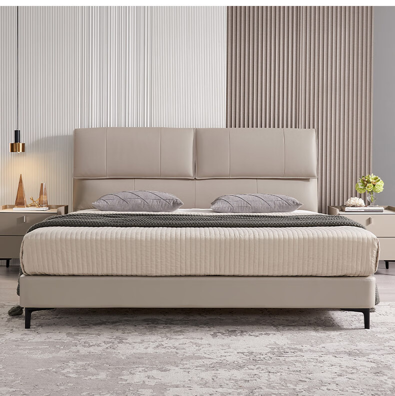 Mousse (de RUCCI) bed double bed leather bed Italian light luxury large bed master bedroom leather bed bedroom furniture large bed leather art bed edge-to-edge style (dark beige)-BCW1-103 1.8*2 meters