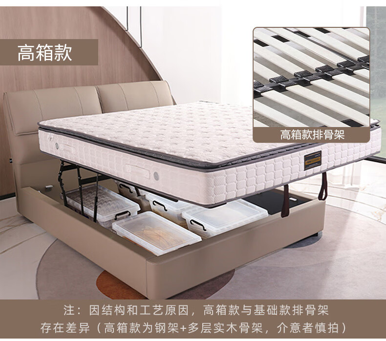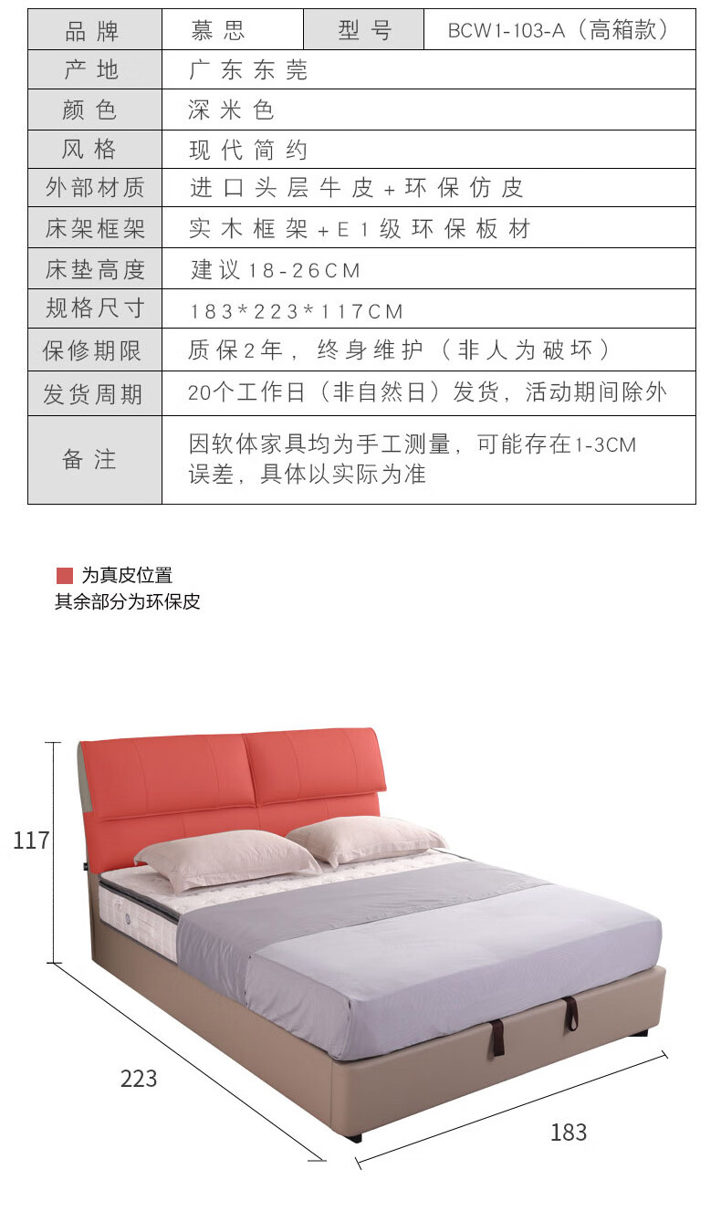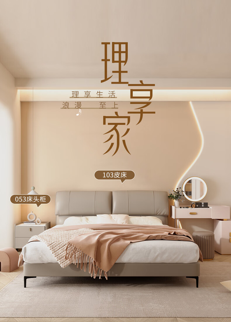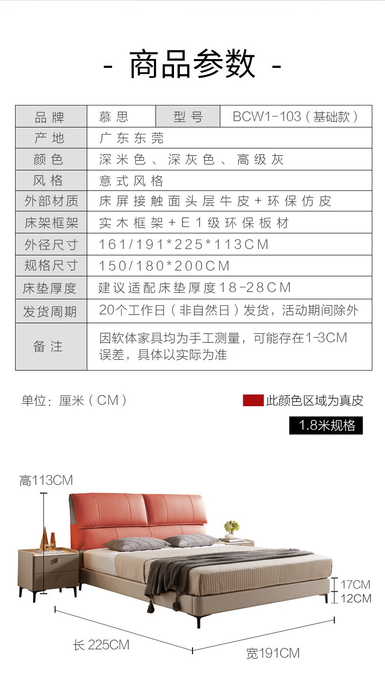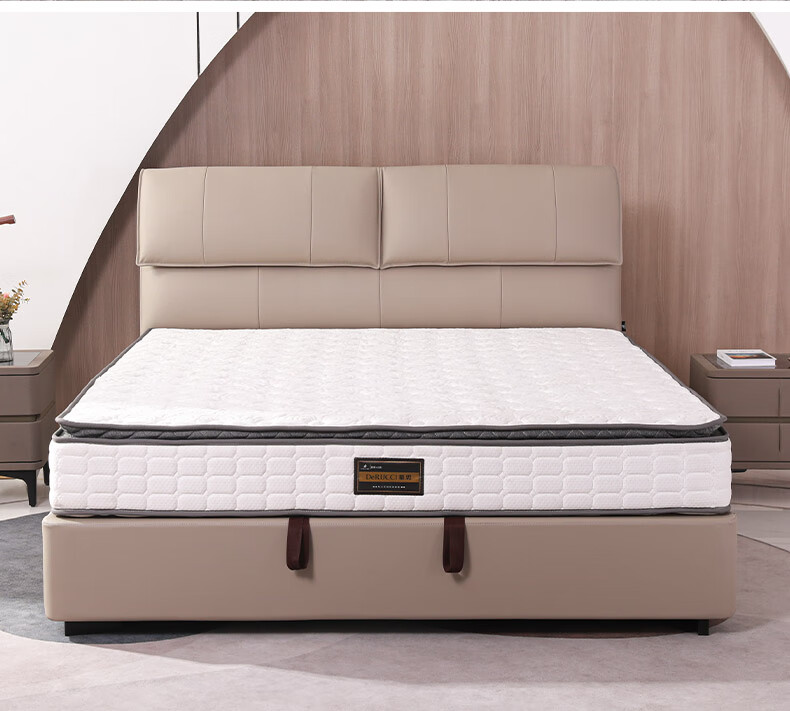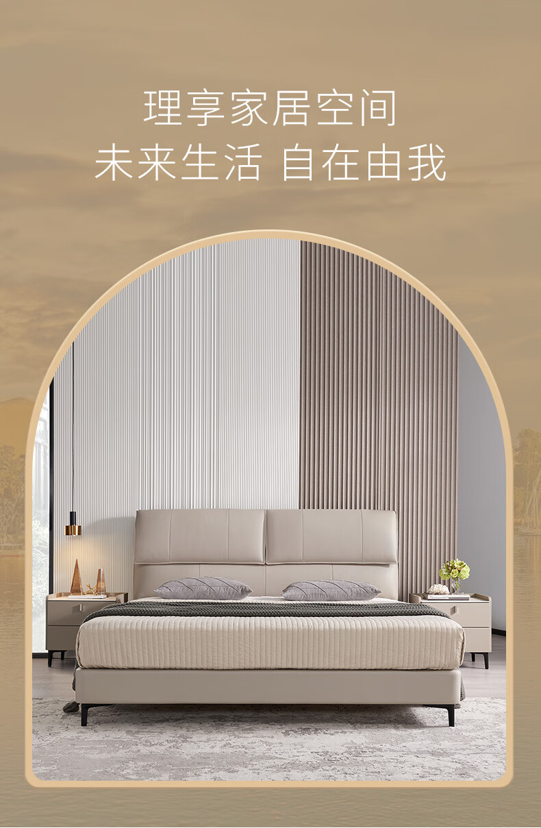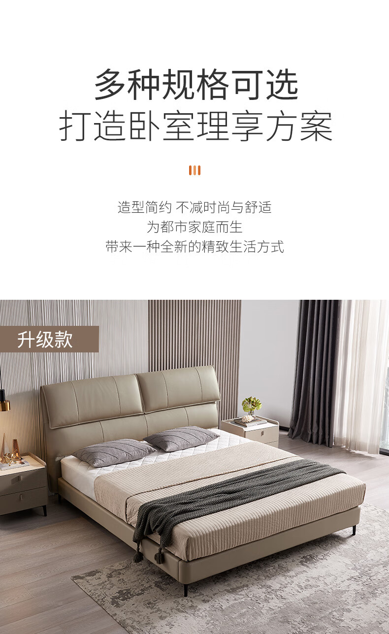 Mousse (de RUCCI) bed double bed leather bed Italian light luxury large bed master bedroom leather bed bedroom furniture large bed leather art bed edge-to-edge style (dark beige)-BCW1-103 1.8*2 meters