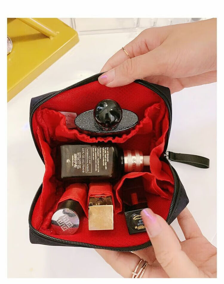 Shifang Xiucai Mini Cosmetic Bag Women's Small Portable Hand Cosmetic Bag Simple Ins Style Cosmetic Storage Bag Black Interior Red B Style