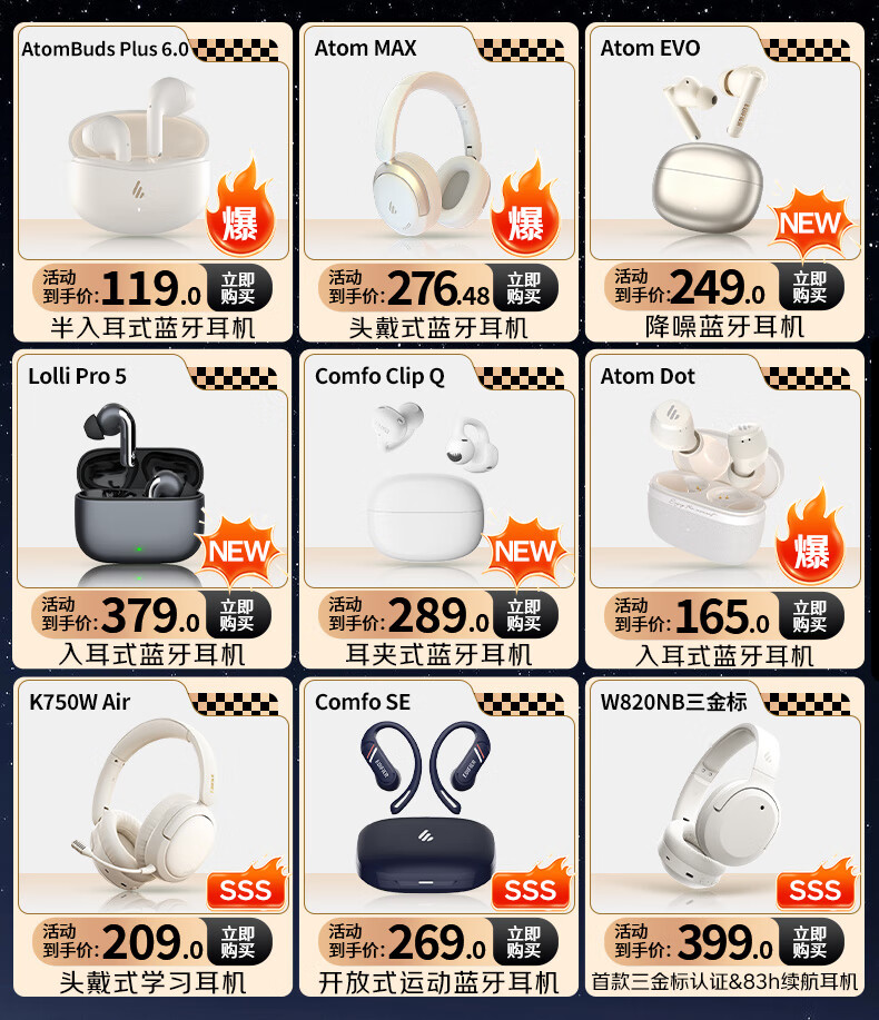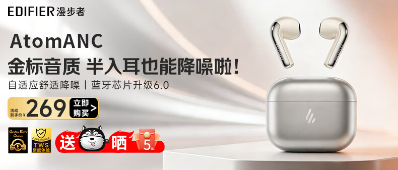 Edifier (EDIFIER) AtomBuds True Wireless Bluetooth Headset Semi-In-Ear AtomBuds Plus Noise Reduction Call Music Sports Low Latency Gaming Super Long Battery Life Holiday Gift Plus Renewed Edition-Yunbai 2025 New