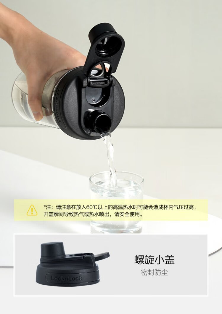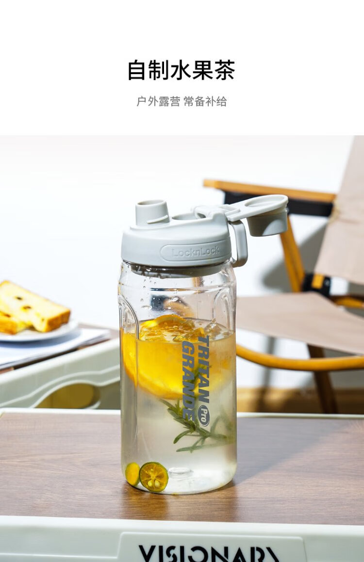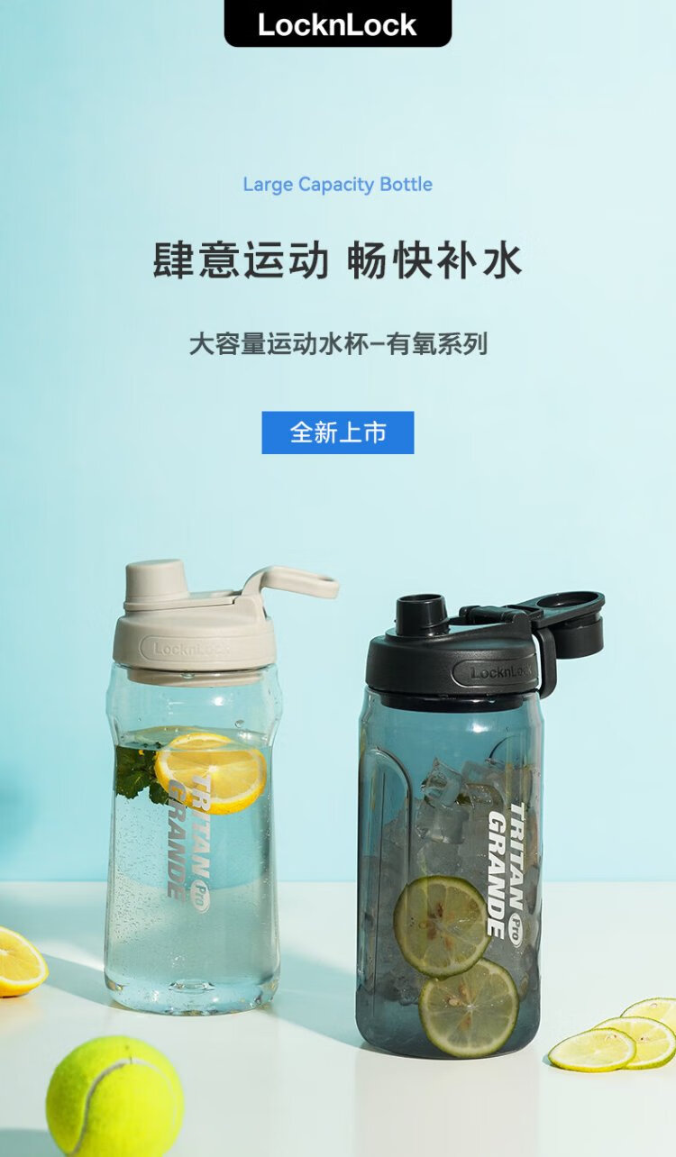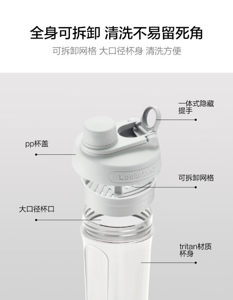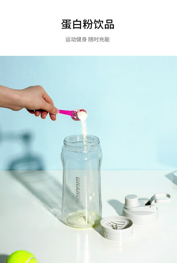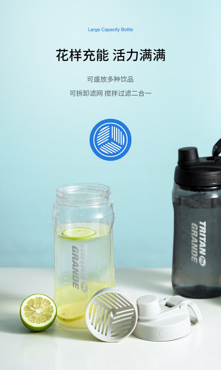 LOCK & LOCK large-capacity outdoor sports kettle with tea separator plastic cup with scale, military training water cup, aerobic cup - white - 1500ml