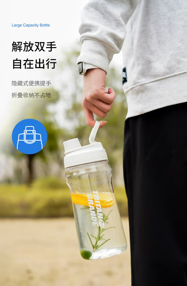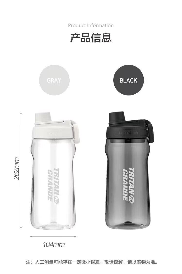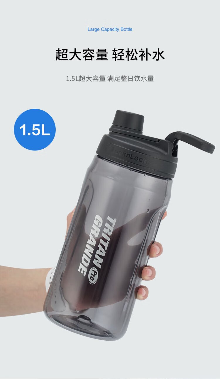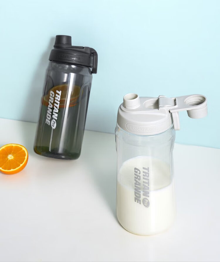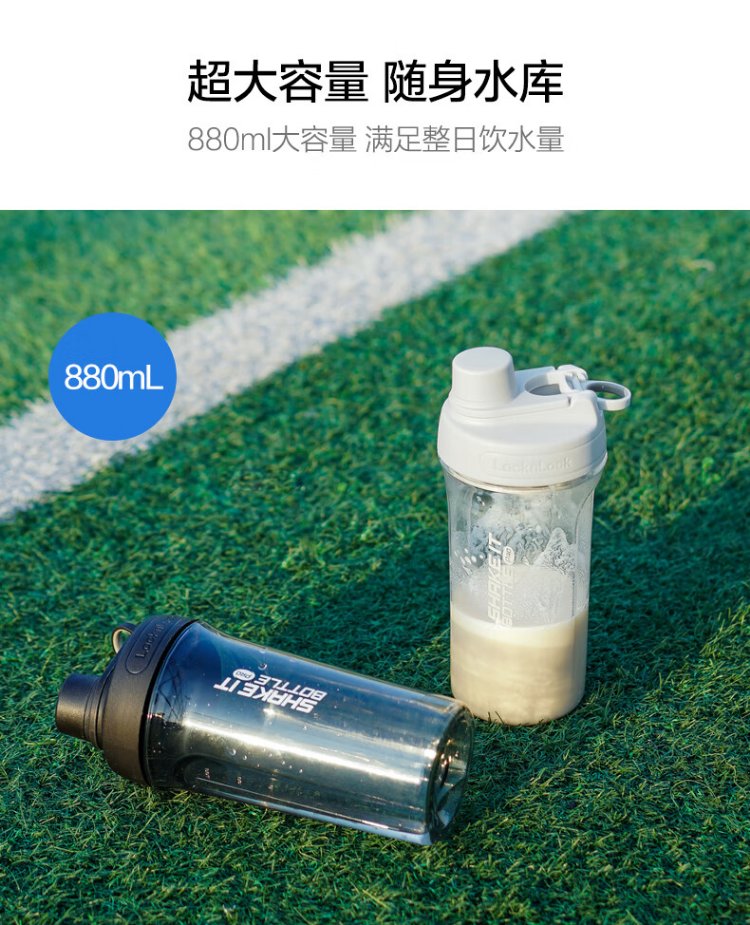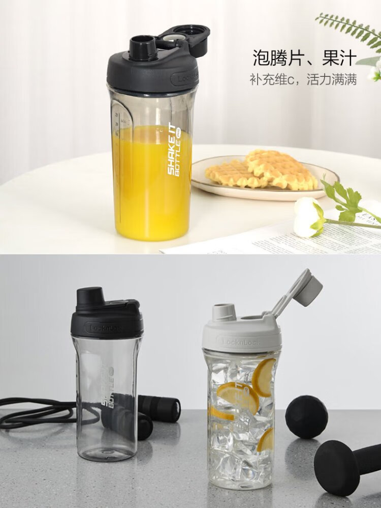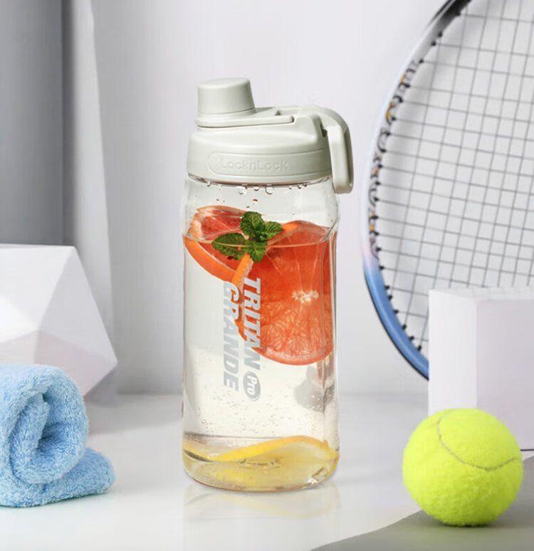 LOCK & LOCK large-capacity outdoor sports kettle with tea separator plastic cup with scale, military training water cup, aerobic cup - white - 1500ml