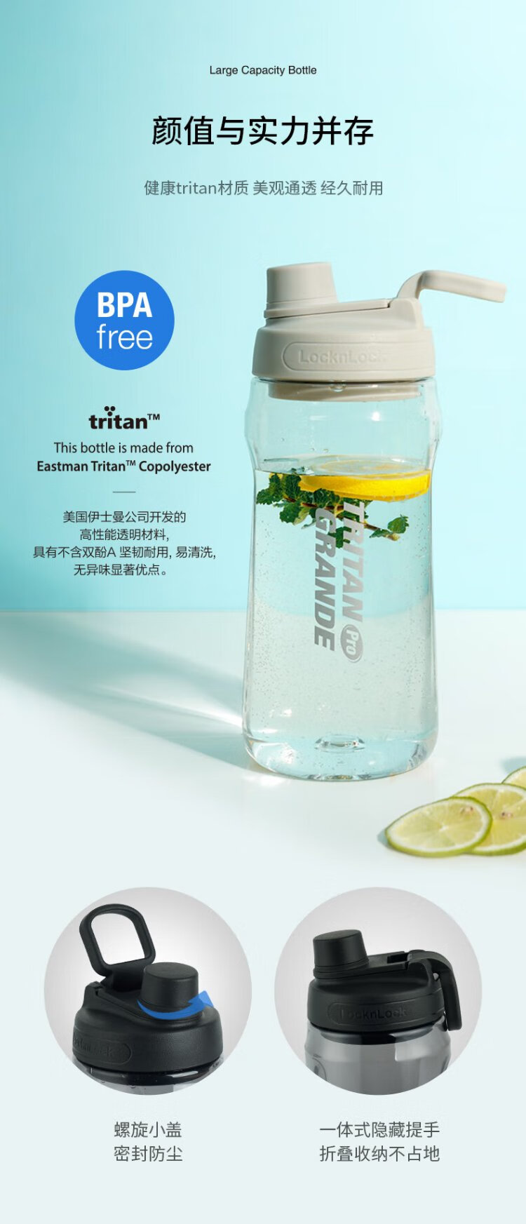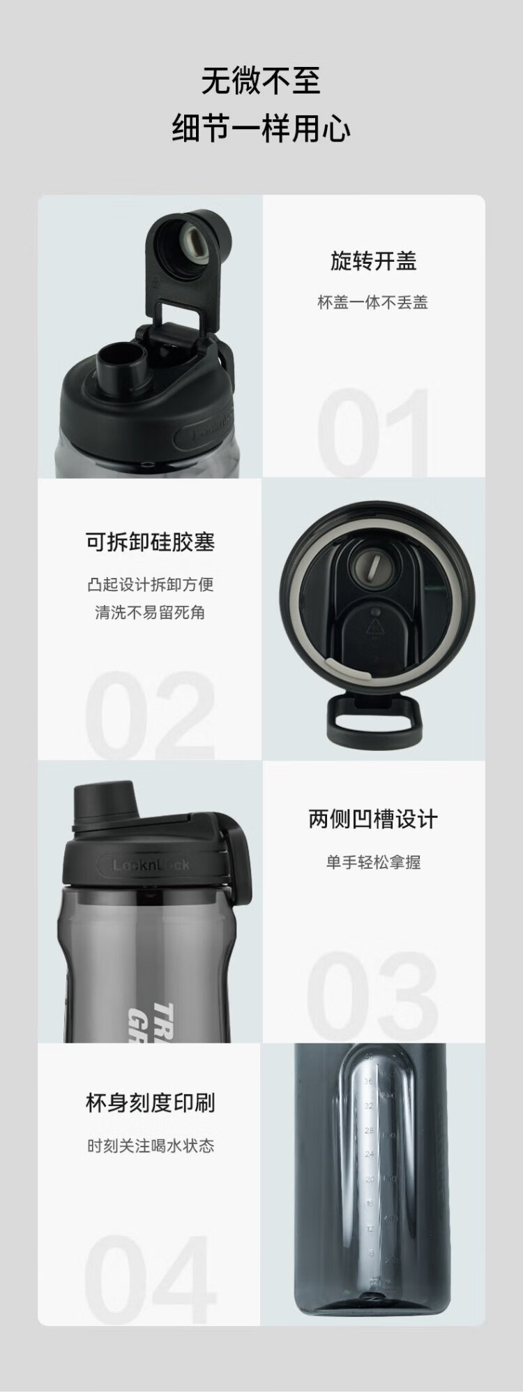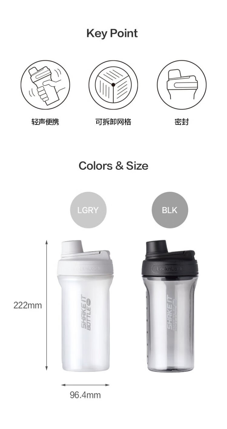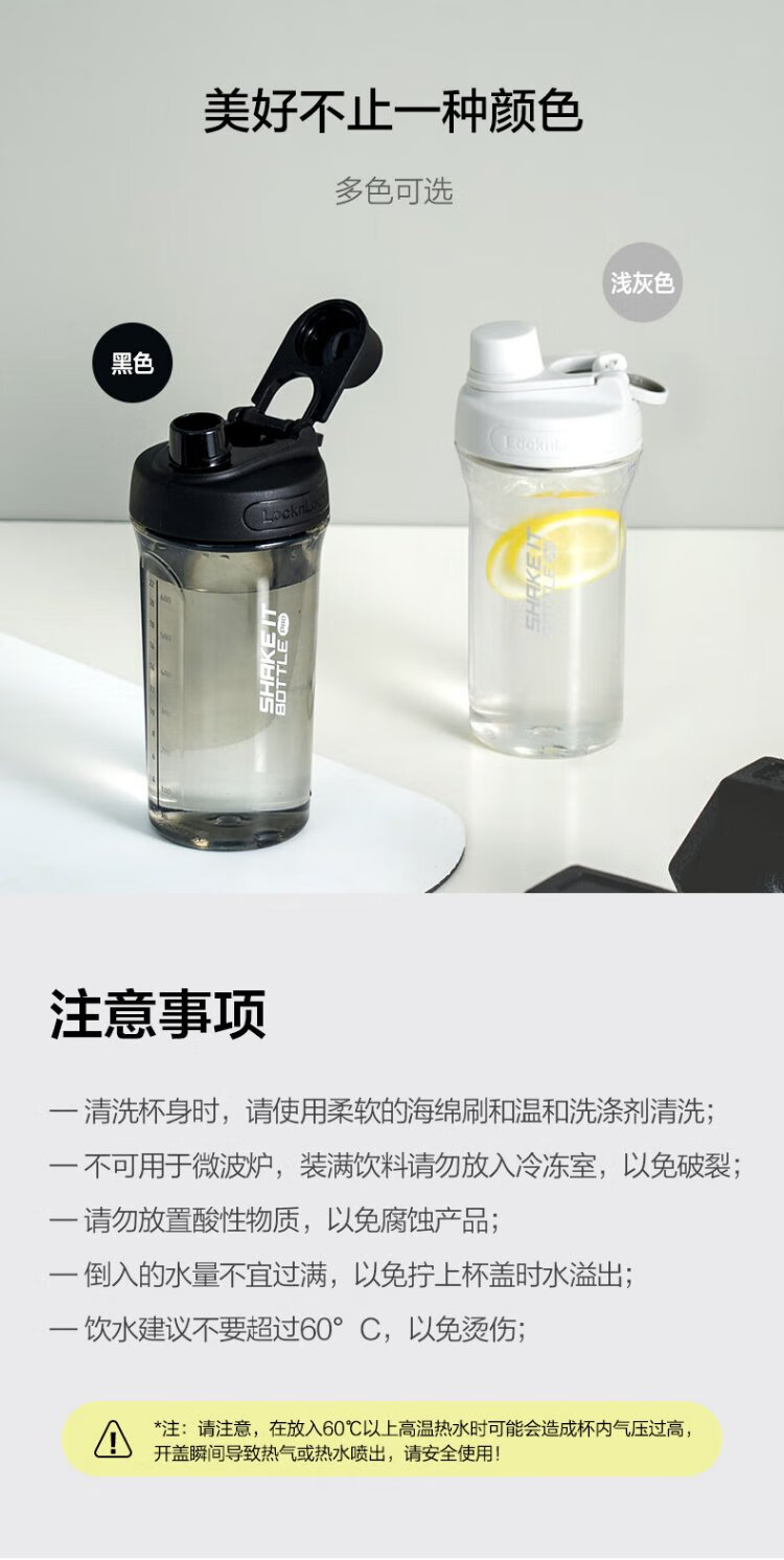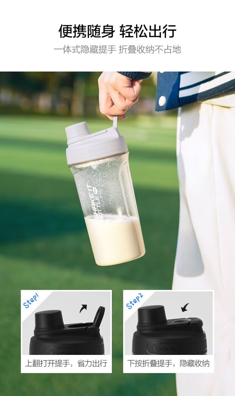 LOCK & LOCK large-capacity outdoor sports kettle with tea separator plastic cup with scale, military training water cup, aerobic cup - white - 1500ml