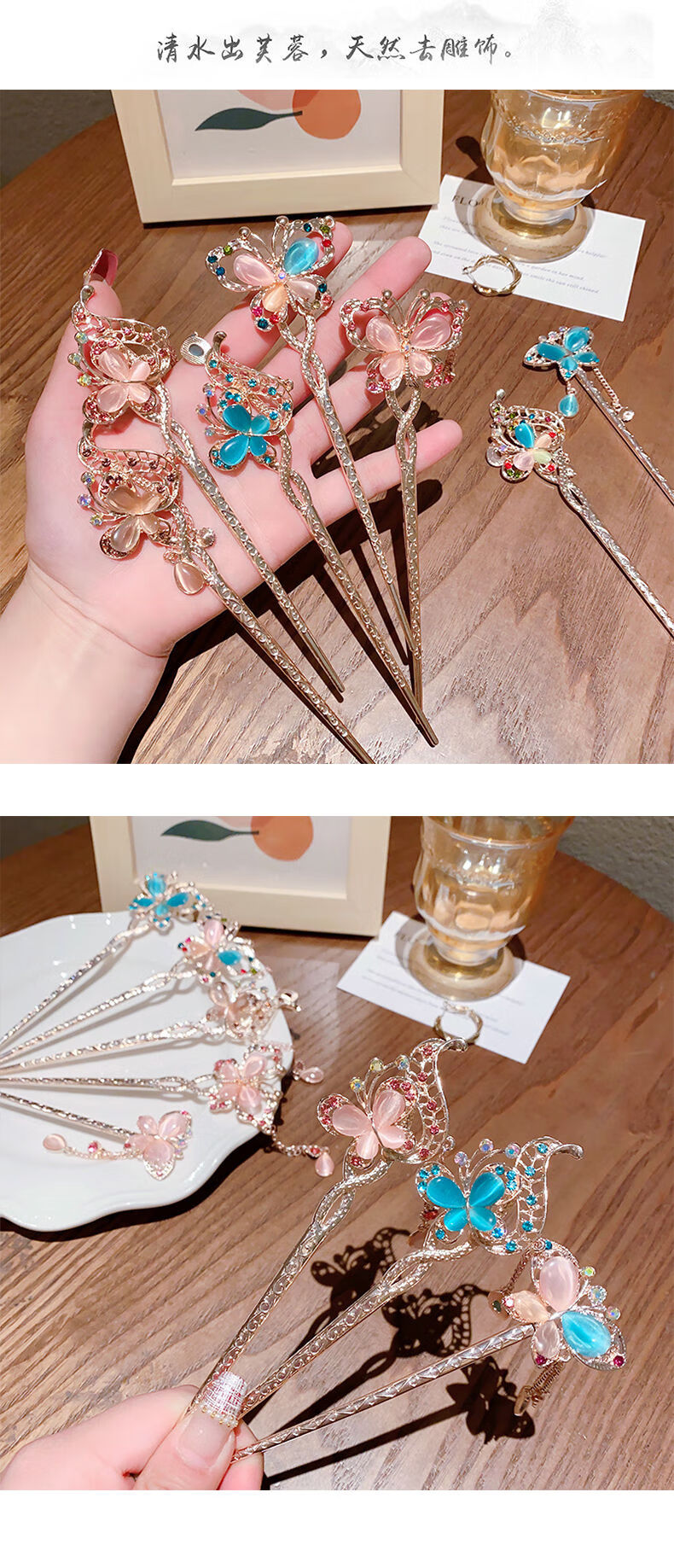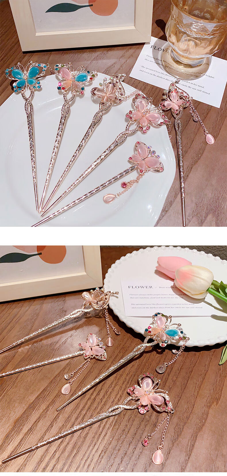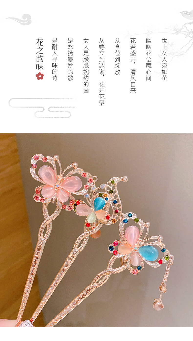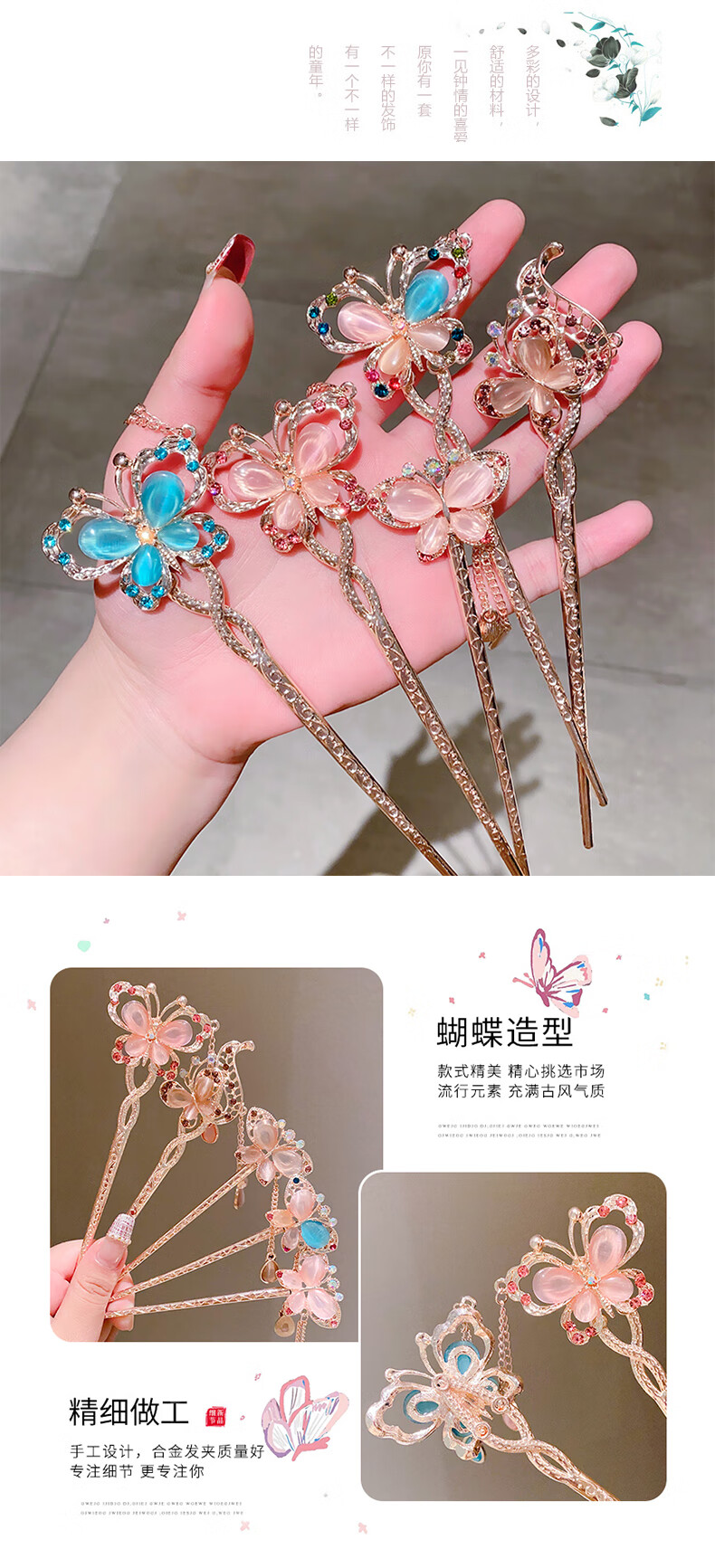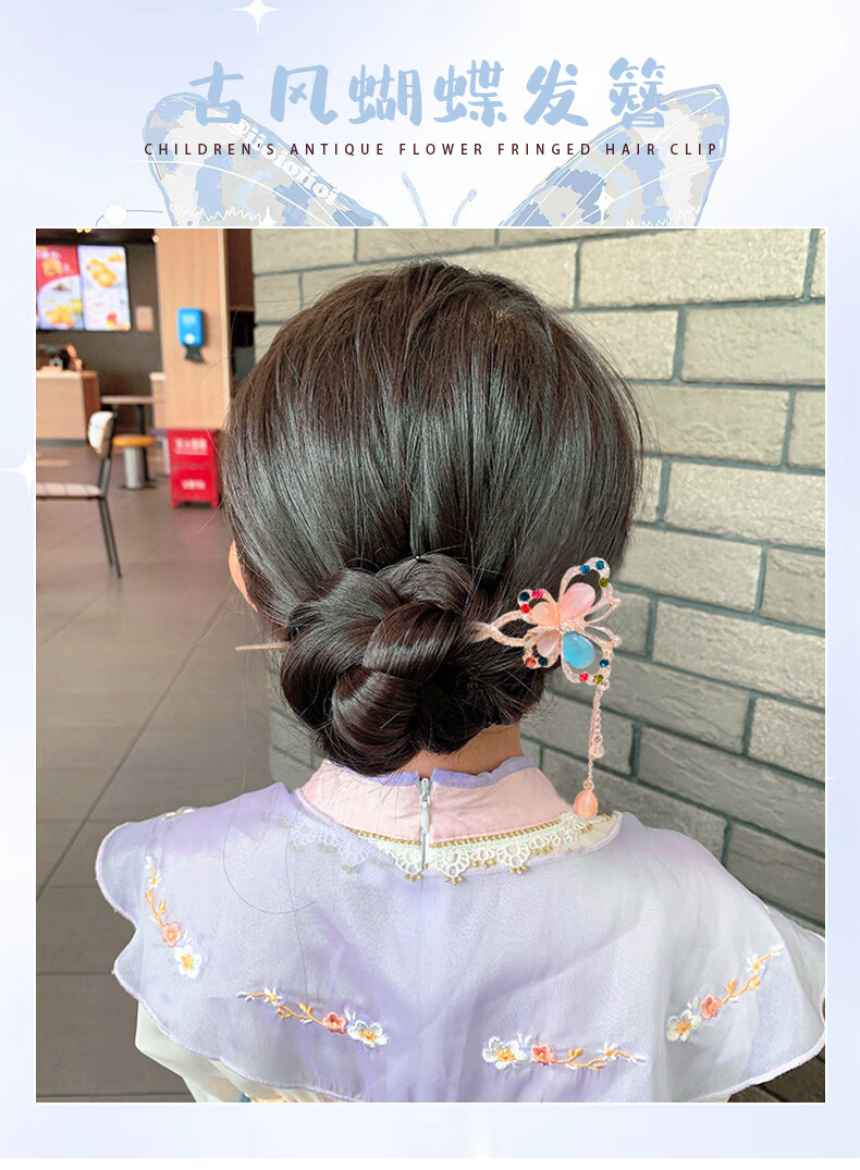 Wanbaozi Children's Ancient Style Hanfu Butterfly Hairpin Children's Updo Hairpin Headband Wind Hairpin Tassel Hairpin Hair Accessory Diefei-Pink