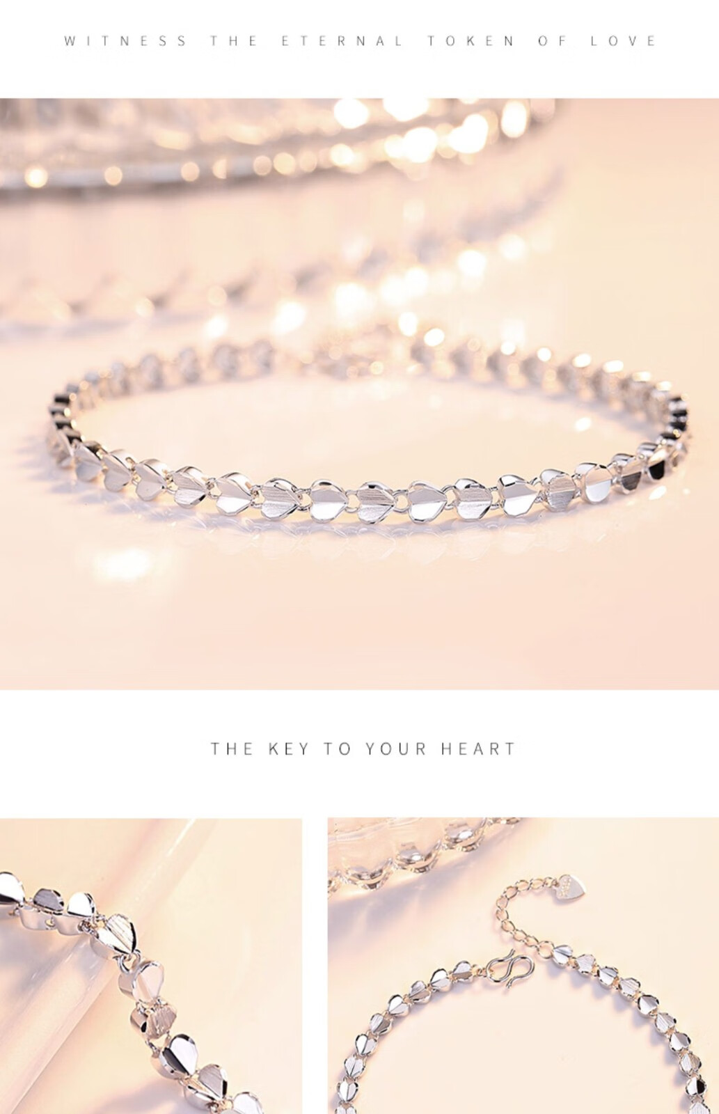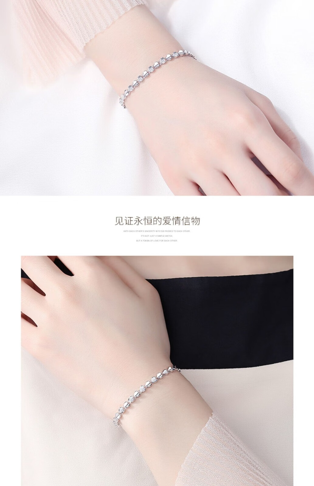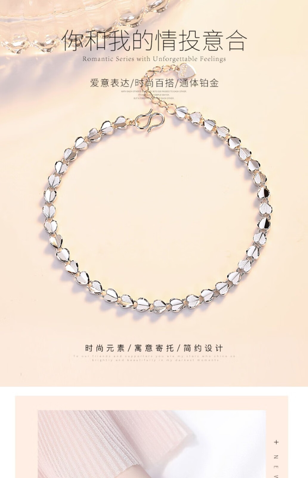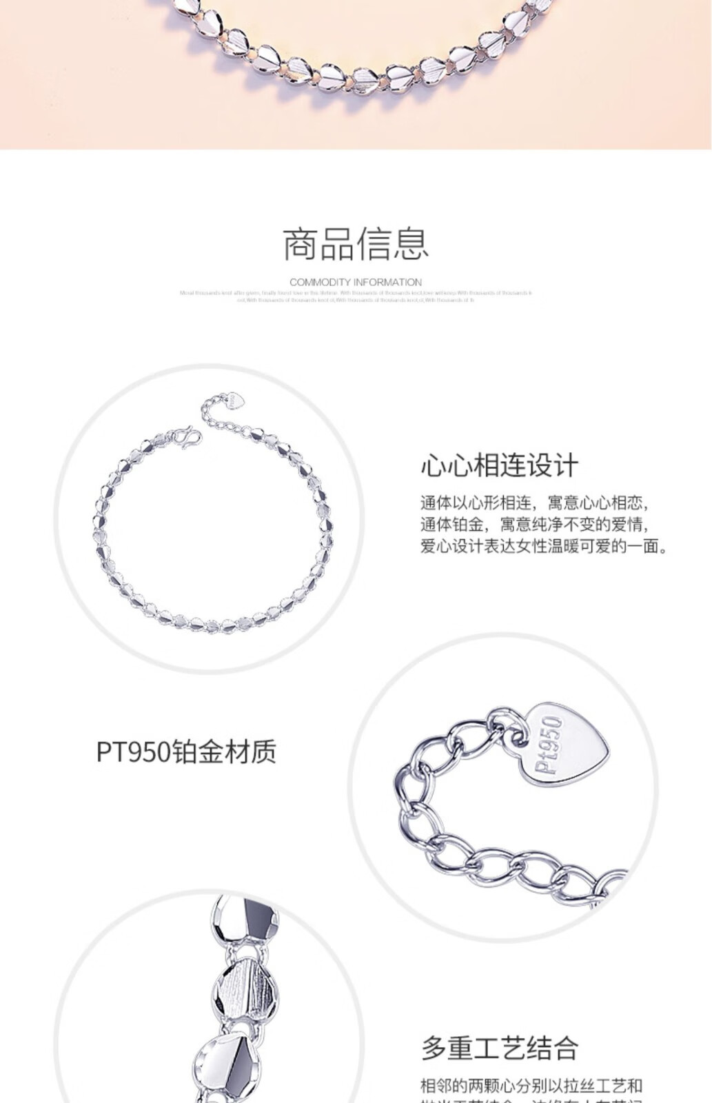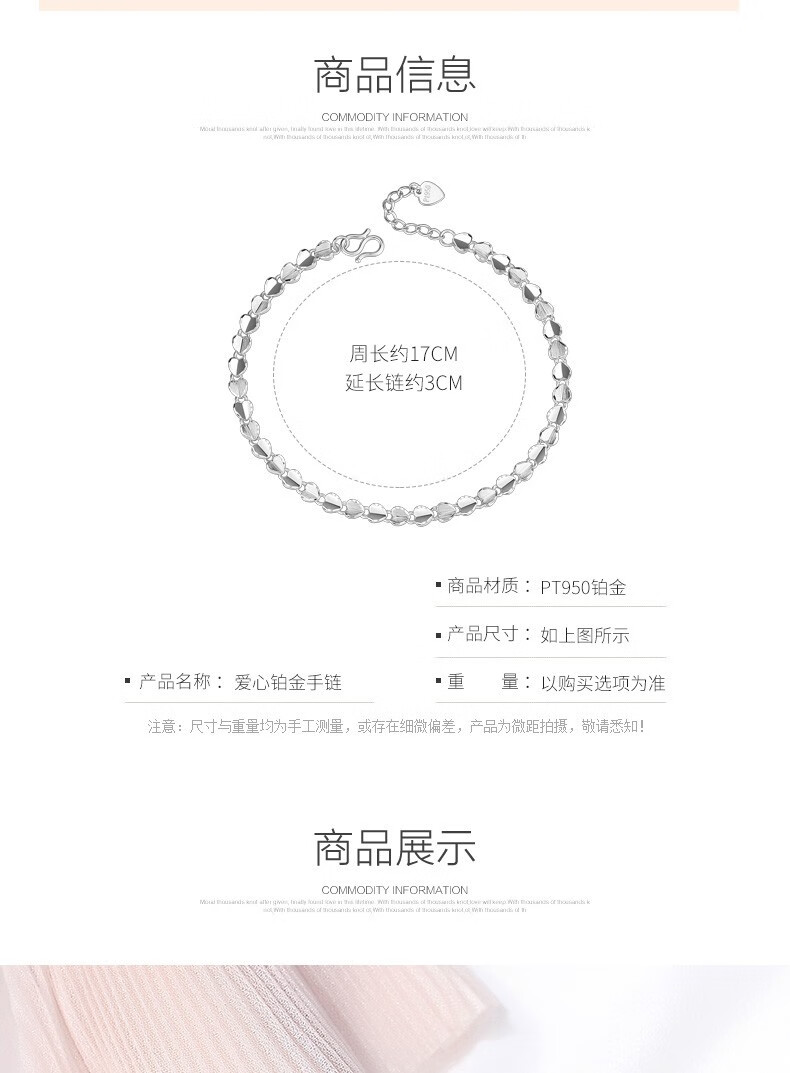 Platinum bracelet for women pt950 love platinum 950 heart-shaped simple bracelet as a gift for girlfriend (length 16+3cm)