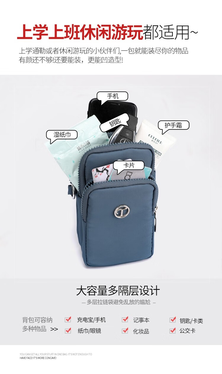 ROUHILDY running mobile phone arm bag outdoor men's and women's arm strap sports wrist bag crossbody light blue size