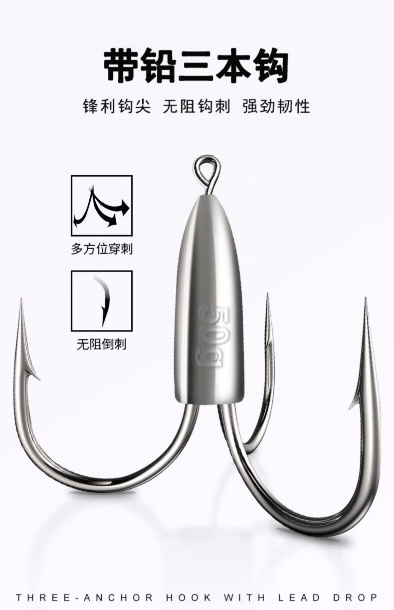 Late fishing three-piece set, 3-claw anchor hook with lead, three-point knife tip, anchor hook, spear fish hook, special hook hair hook with barb, 20g (three-piece set)