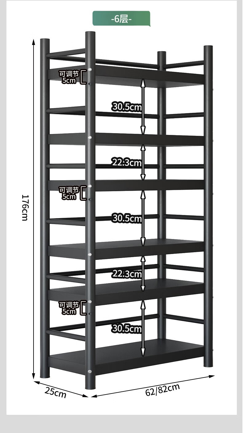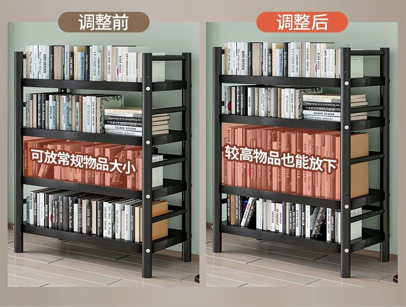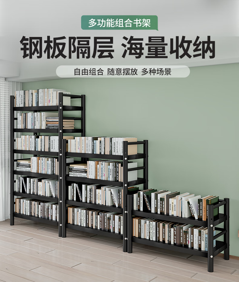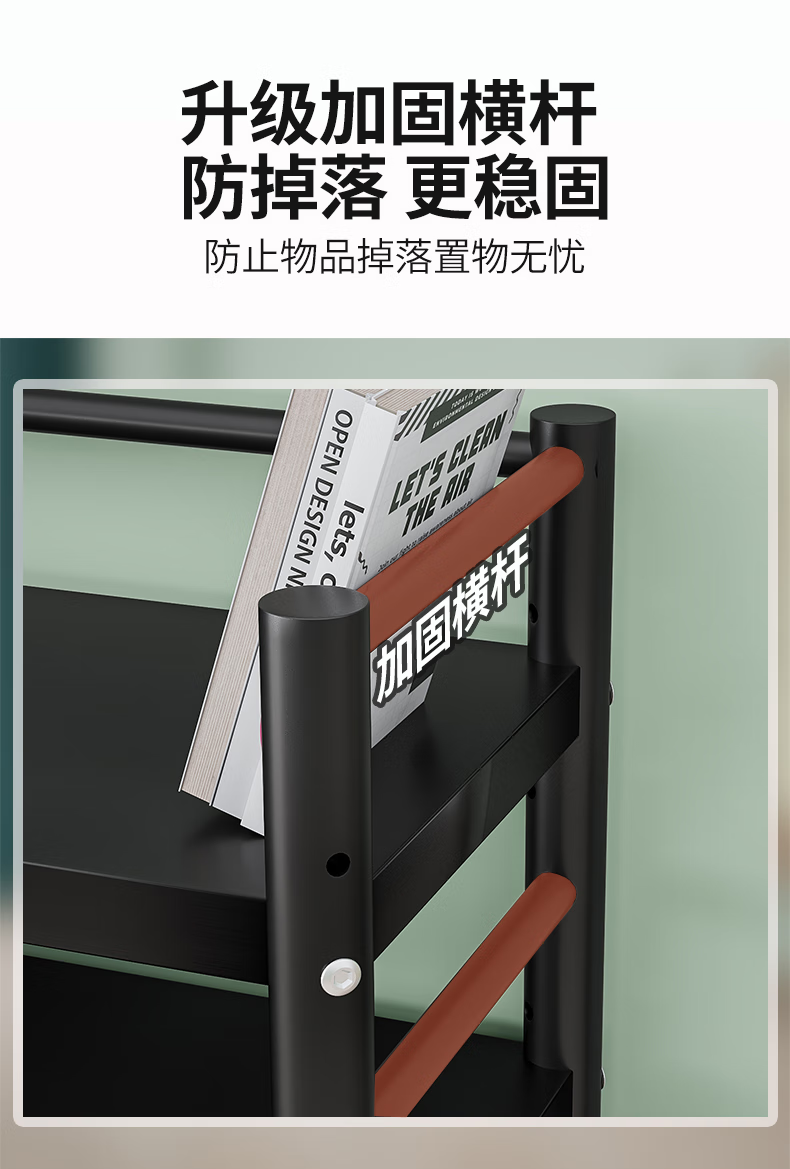 Xibaili movable home bookshelf multi-layer floor-standing storage rack multi-functional steel storage cabinet black long 82CM 6 layers/pulley