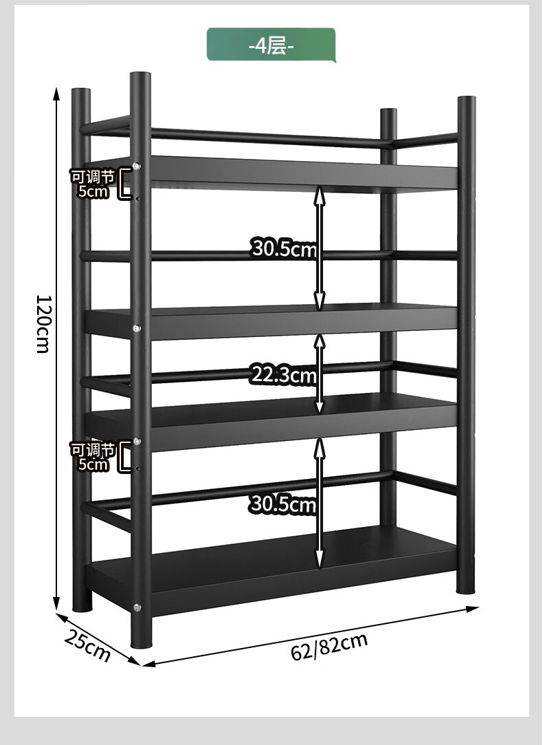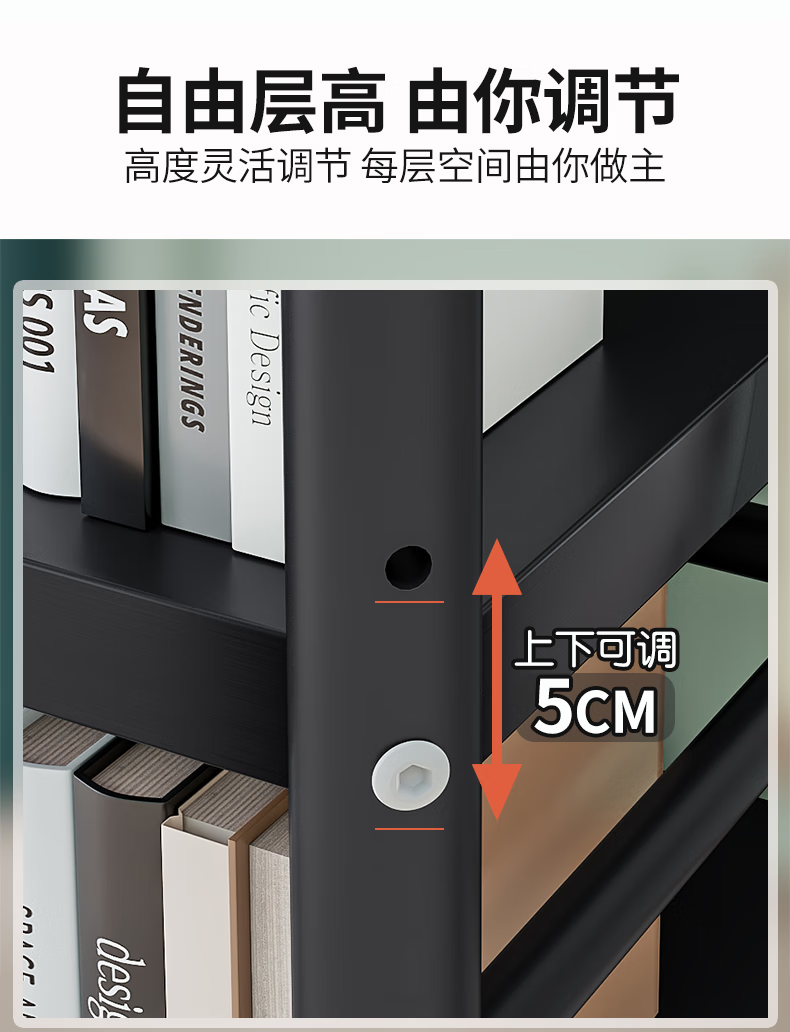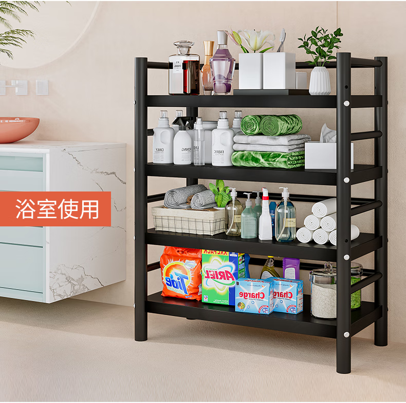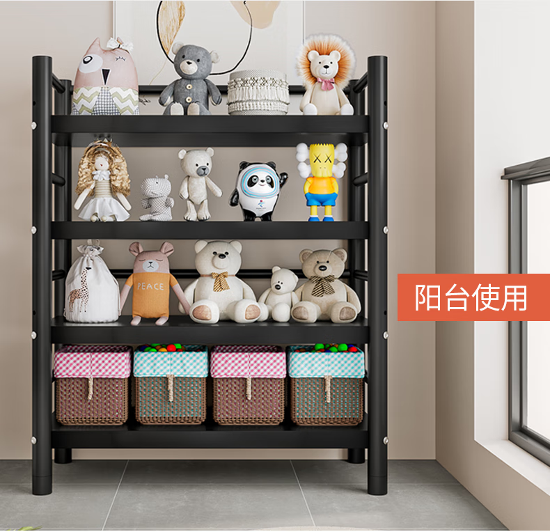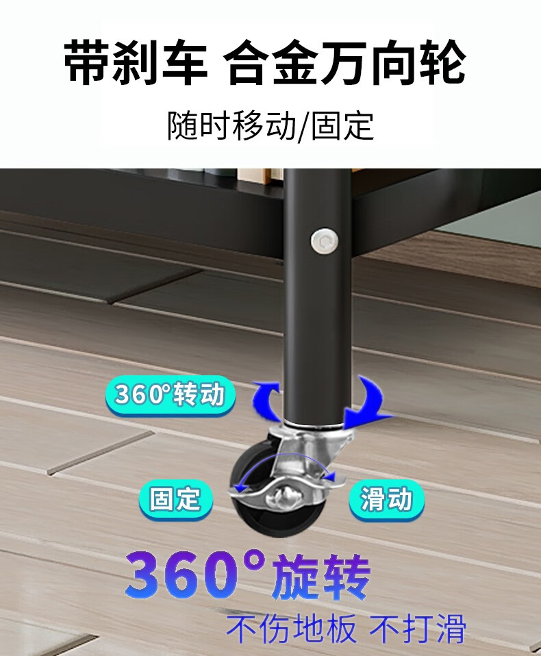 Xibaili movable home bookshelf multi-layer floor-standing storage rack multi-functional steel storage cabinet black long 82CM 6 layers/pulley