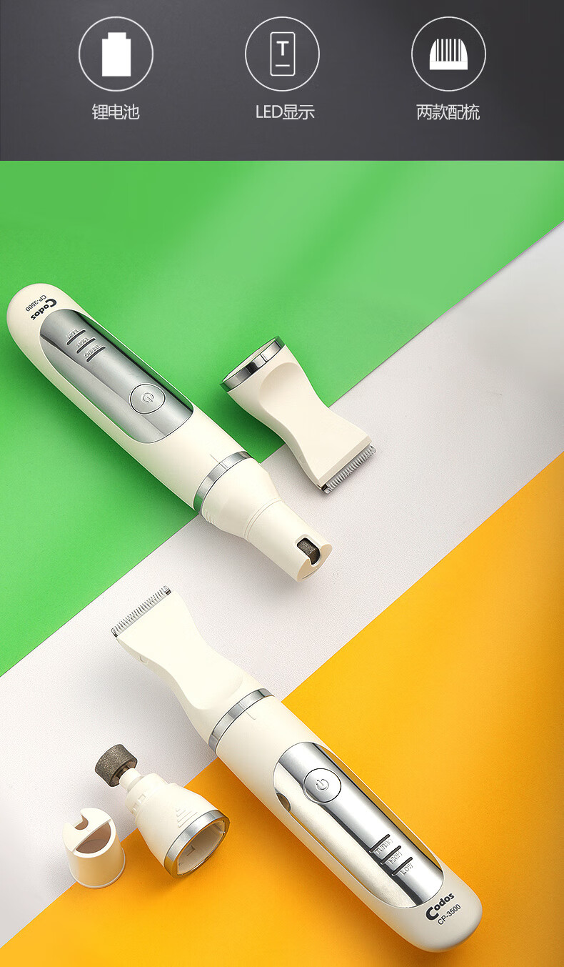 Codos Pet Foot Shaving Device Dog Sole Pedicure Electric Clipper Shaver Hair Trimmer and Nail Polisher 2-in-1 3500 Package 3 Standard + 1 Nail Polishing Head