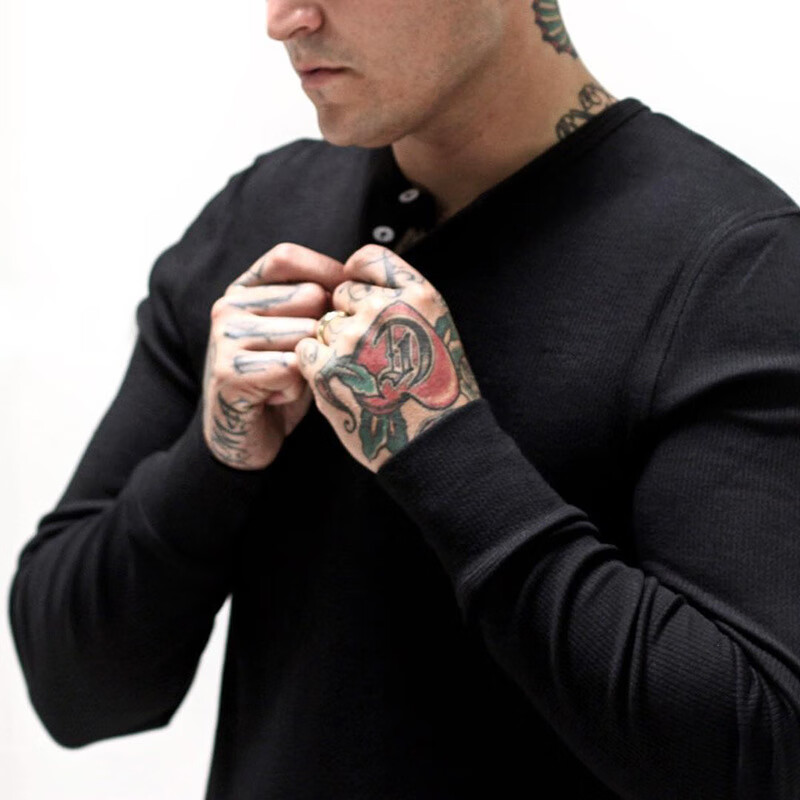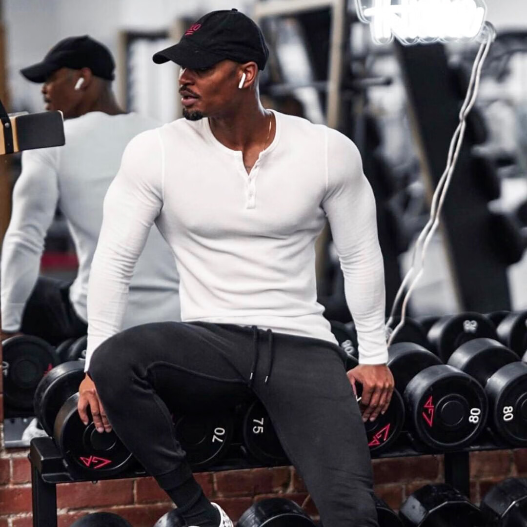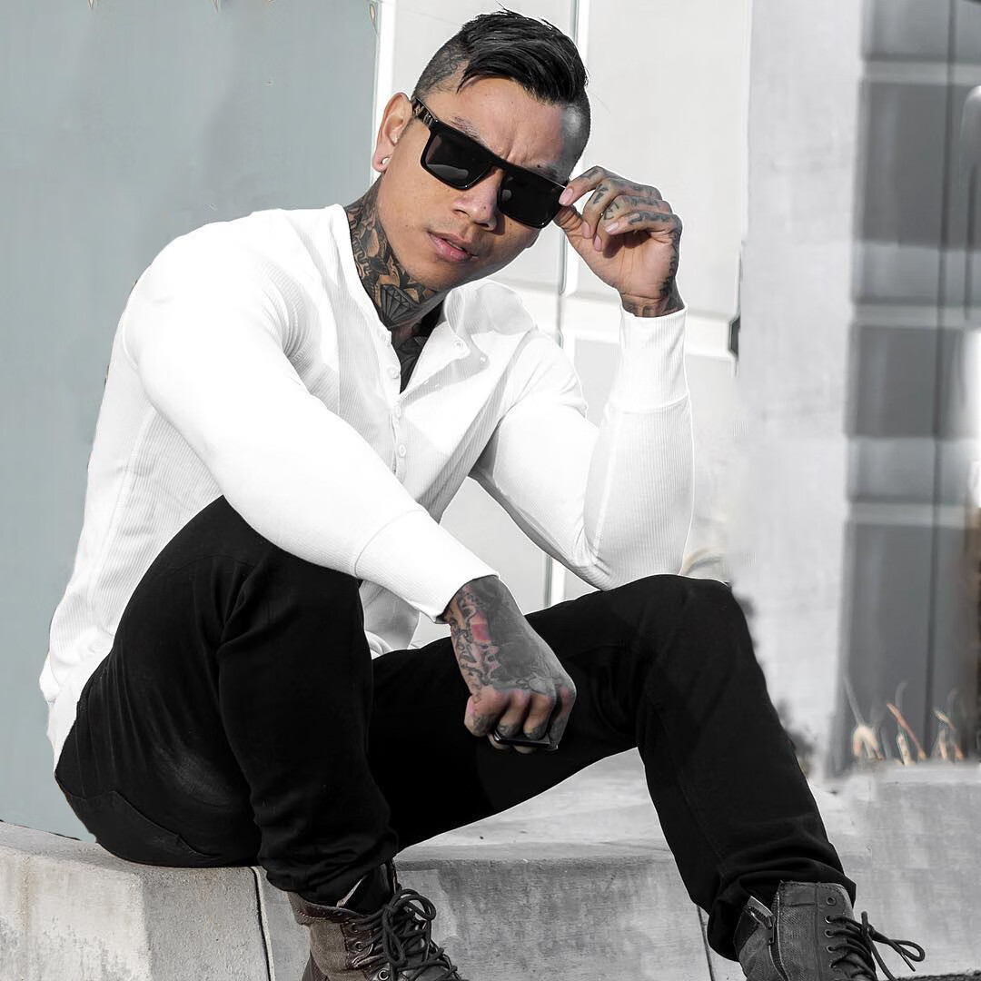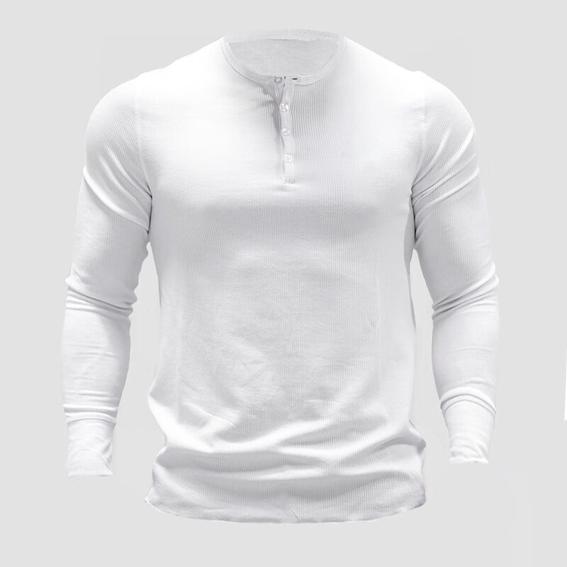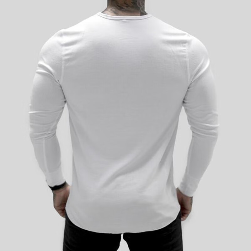 Hengyuanxiang muscle fitness long-sleeved American Henry shirt bottoming shirt men's tough guy Henry collar T-shirt slim sports casual clothes white (M