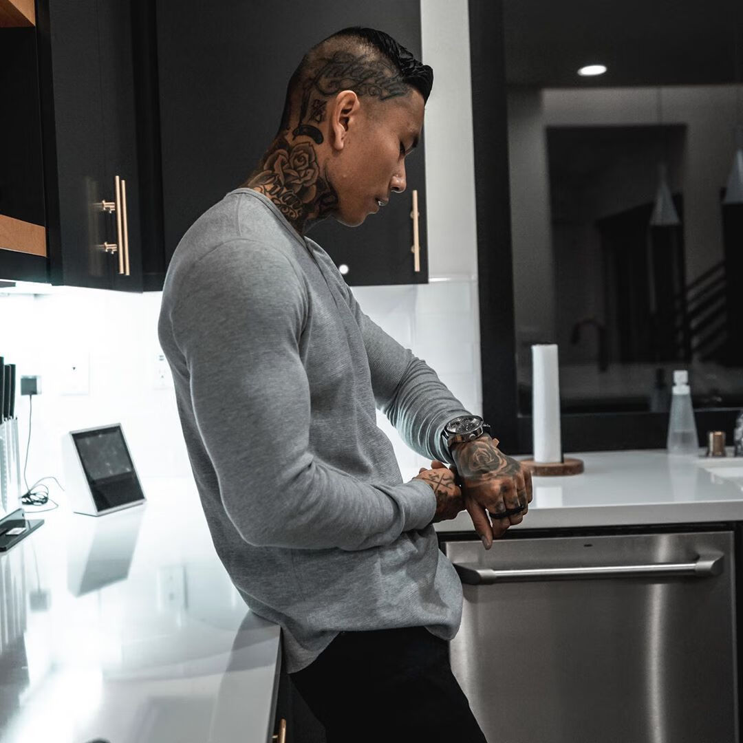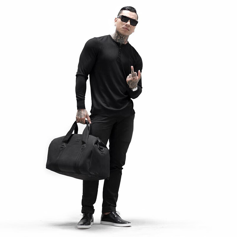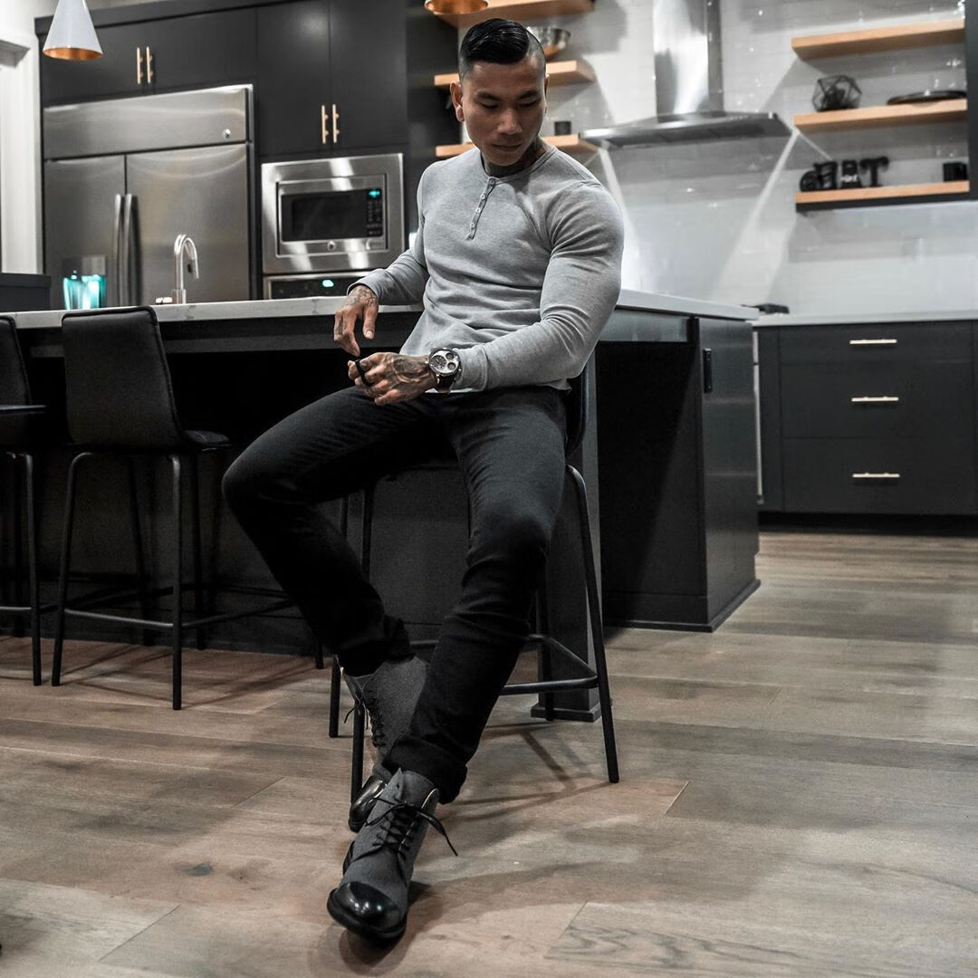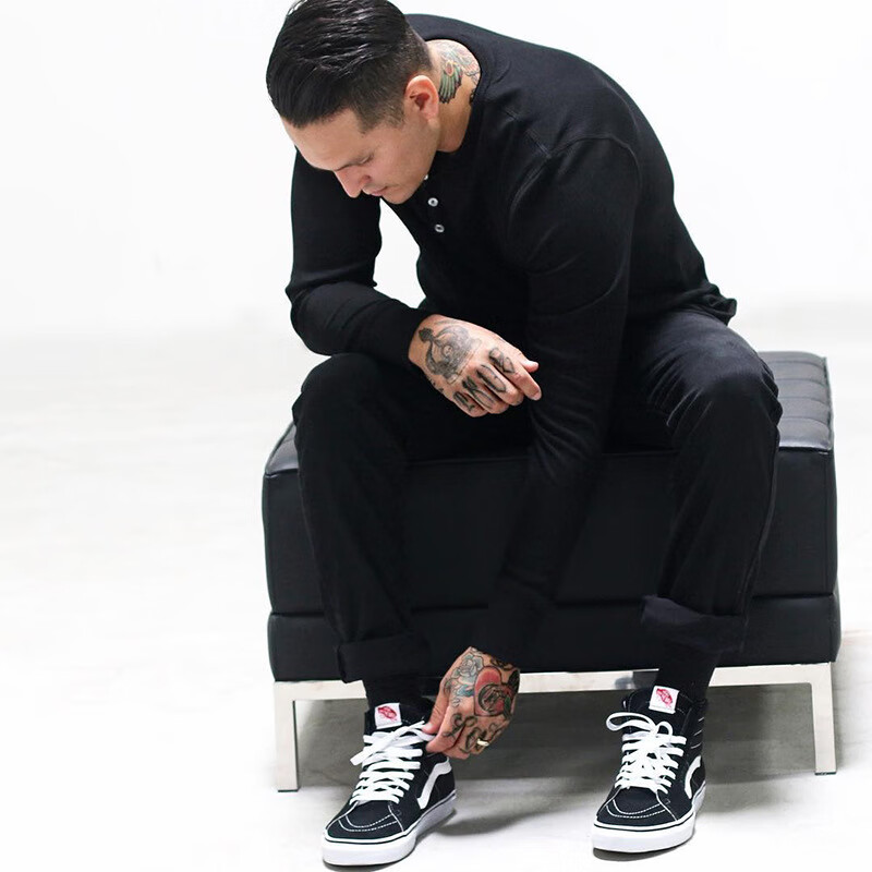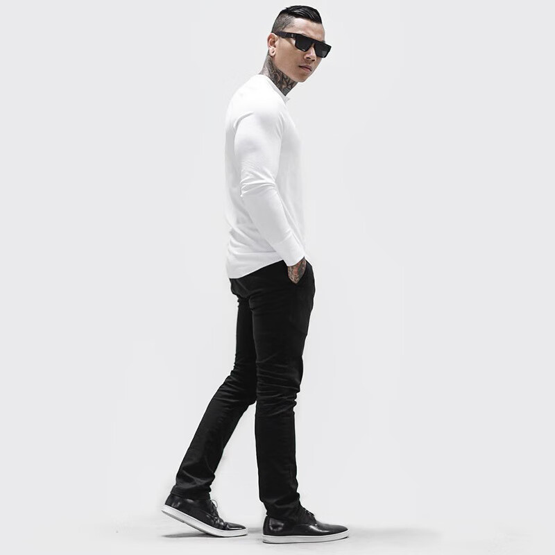 Hengyuanxiang muscle fitness long-sleeved American Henry shirt bottoming shirt men's tough guy Henry collar T-shirt slim sports casual clothes white (M