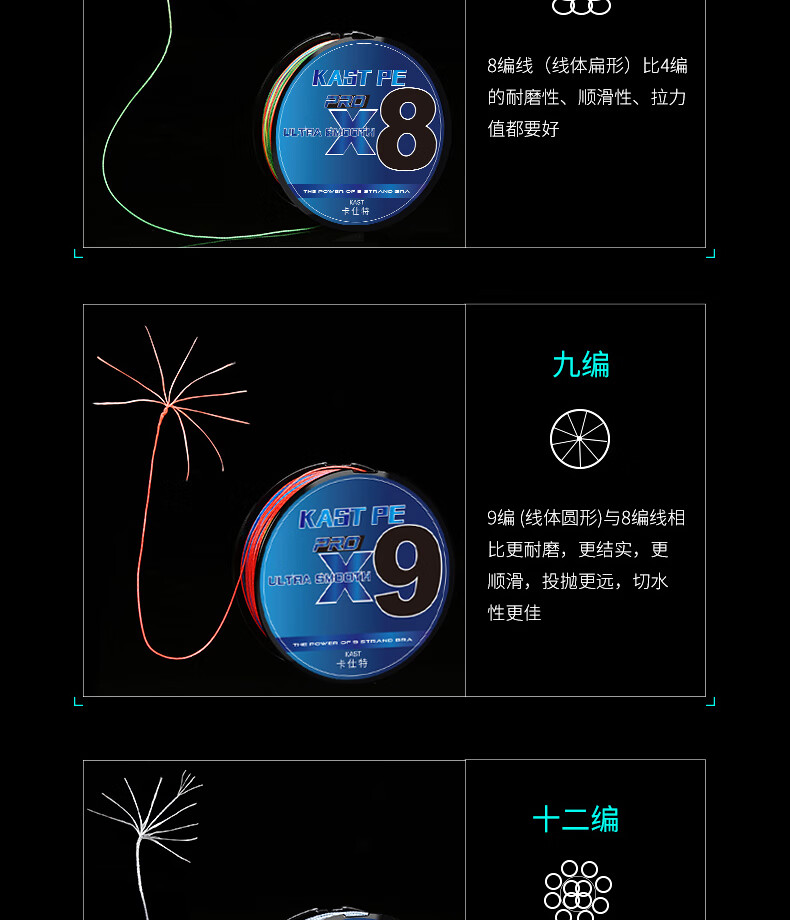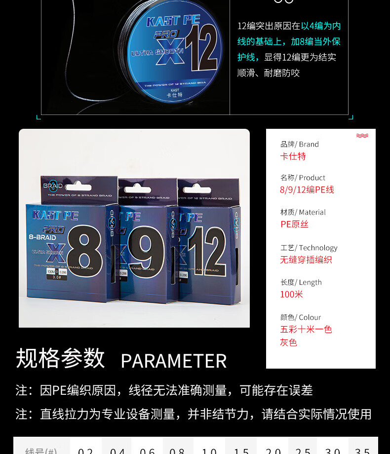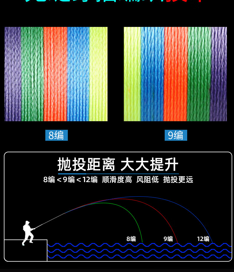 KAST Dali Horse Fishing Line Main Line Sub-line Braided Line PE Line Sub-line Sea Fishing Fishing Line Dali Horse Line 8 (Colorful) 100 Meters No. 8