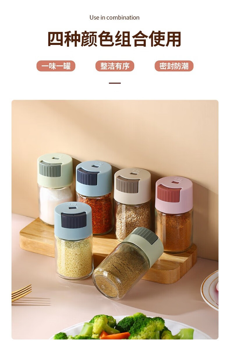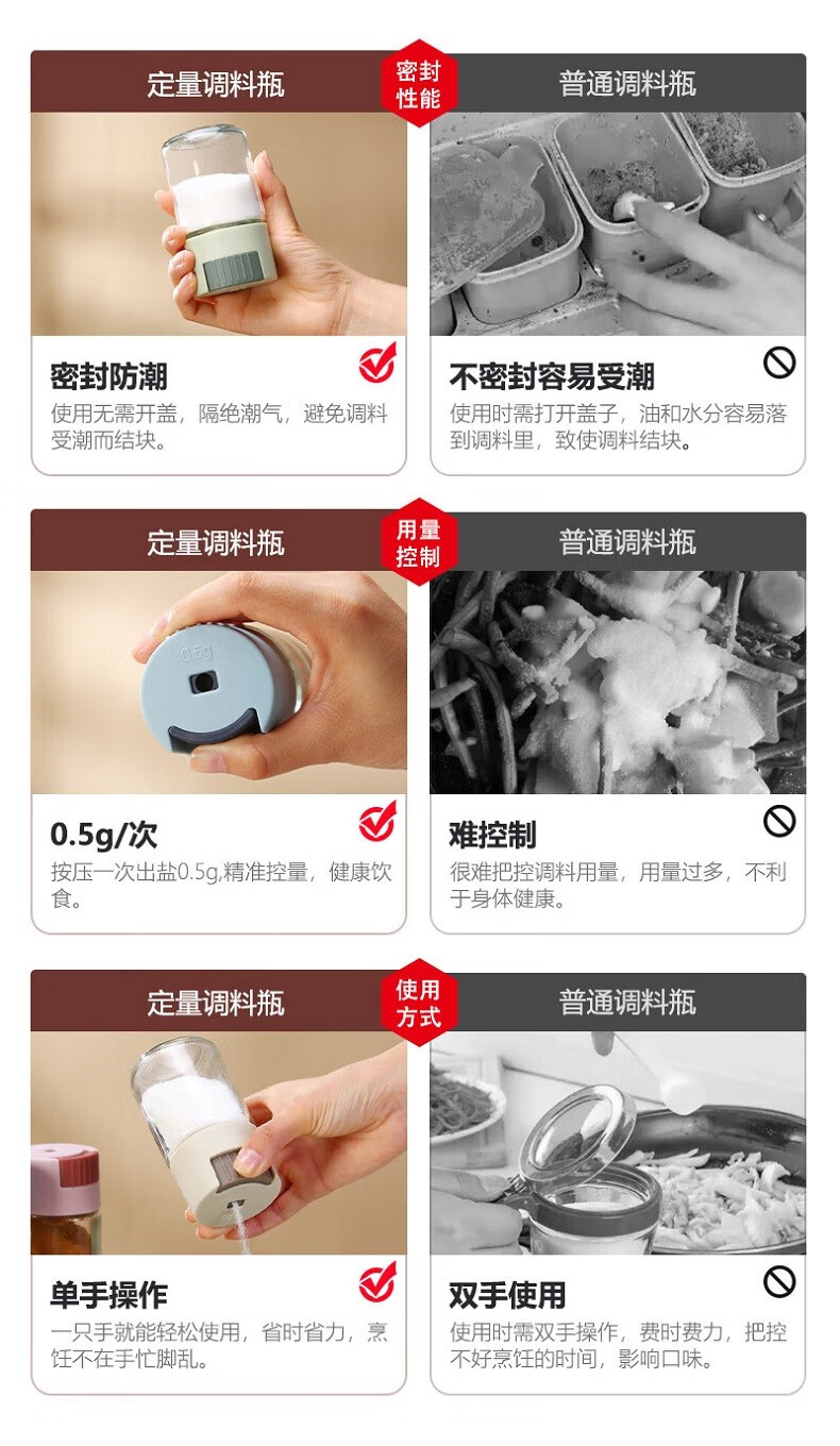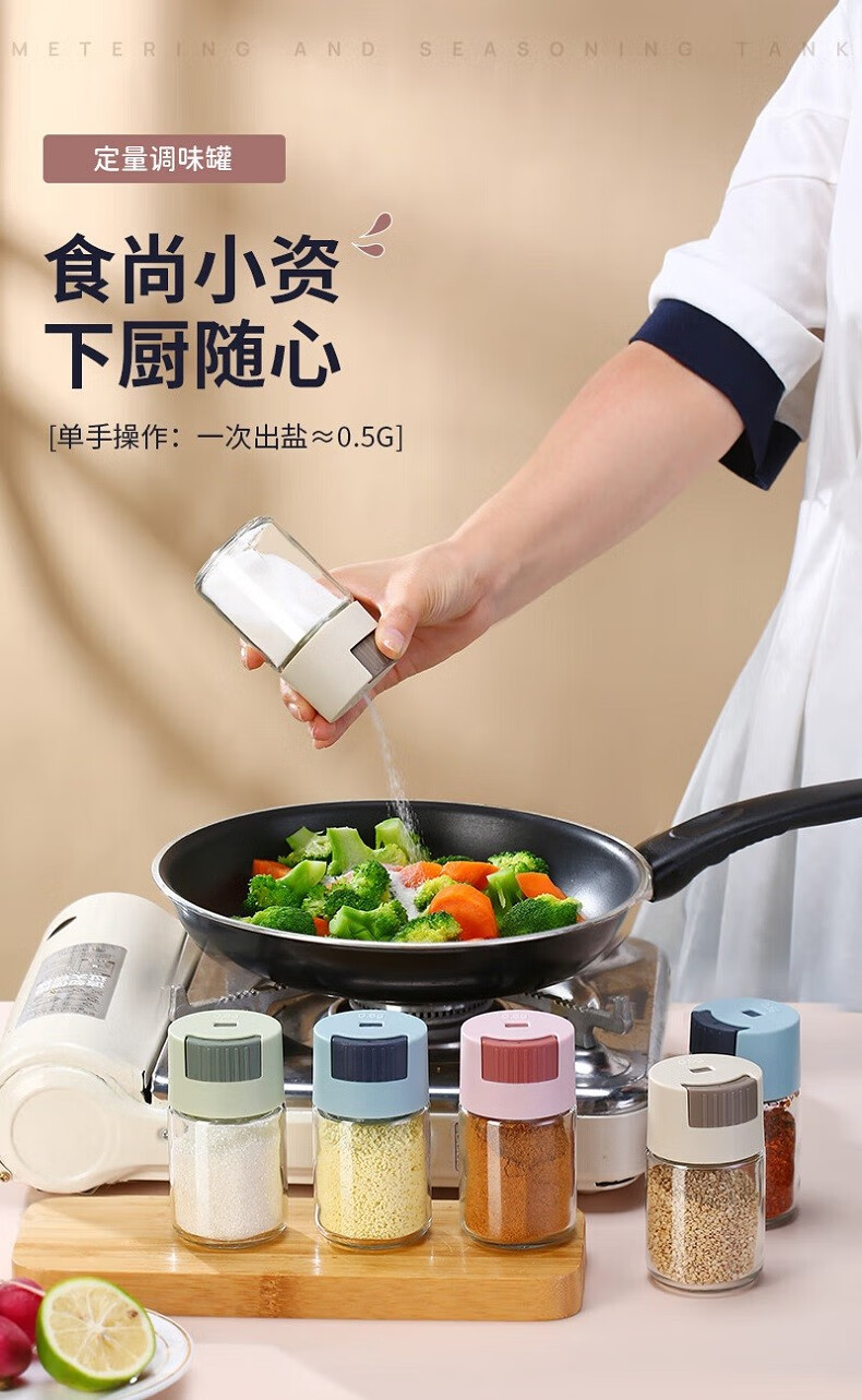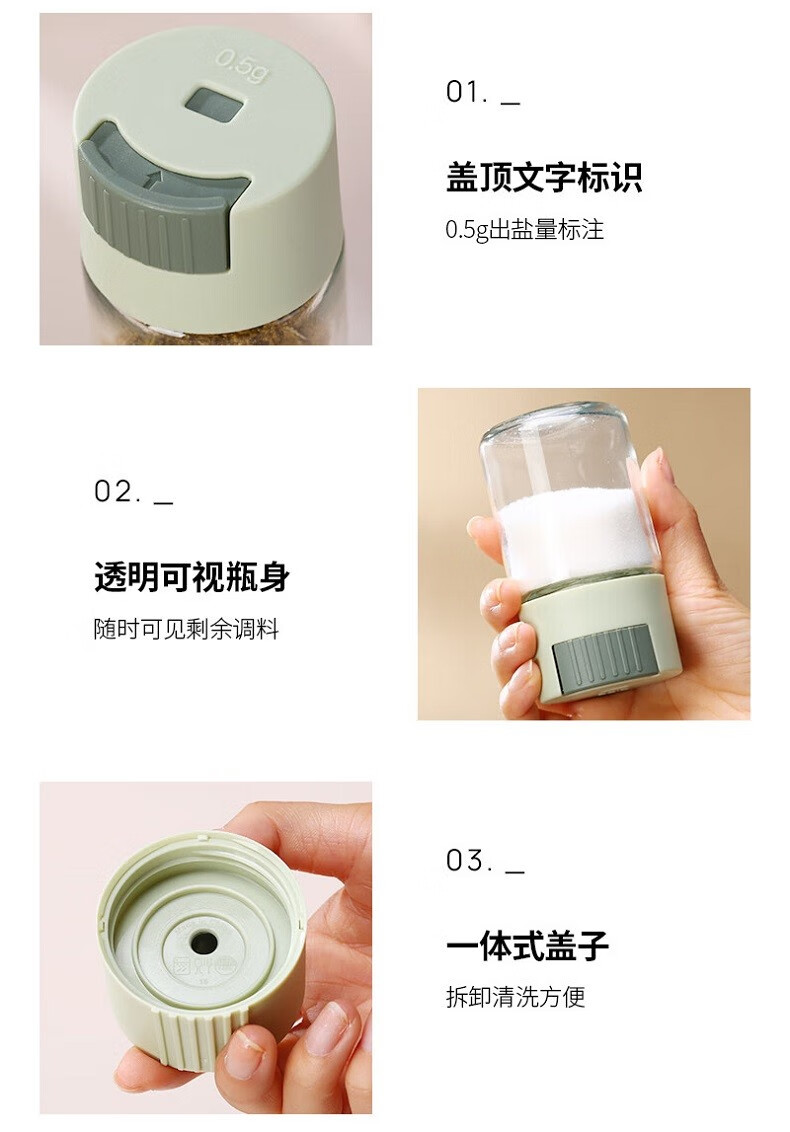 XIAO TIAN LAI quantitative salt shaker kitchen seasoning jar moisture-proof glass seasoning bottle controllable meterable salt bottle combination set (light green) quantitative seasoning bottle
