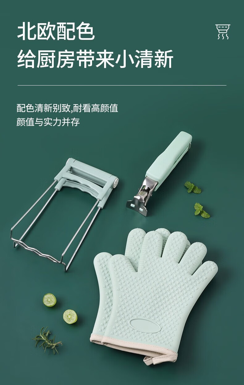 Baijie kitchen anti-scalding bowl clamp, plate clamp, casserole clamp, plate lifter, stainless steel anti-slip household anti-scalding gloves set, 2-pack of anti-scalding gloves