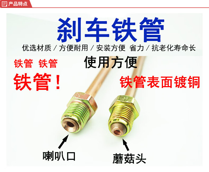 Luning | Brake oil pipe 1.5 meters, one end of mushroom head 12*1, one end of bell mouth 10*1, 1 year maintenance