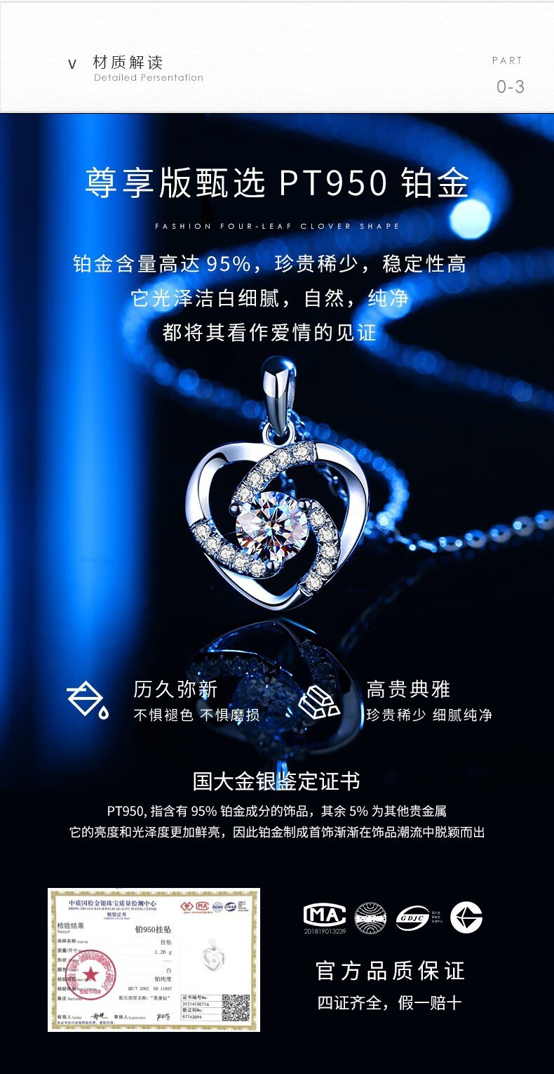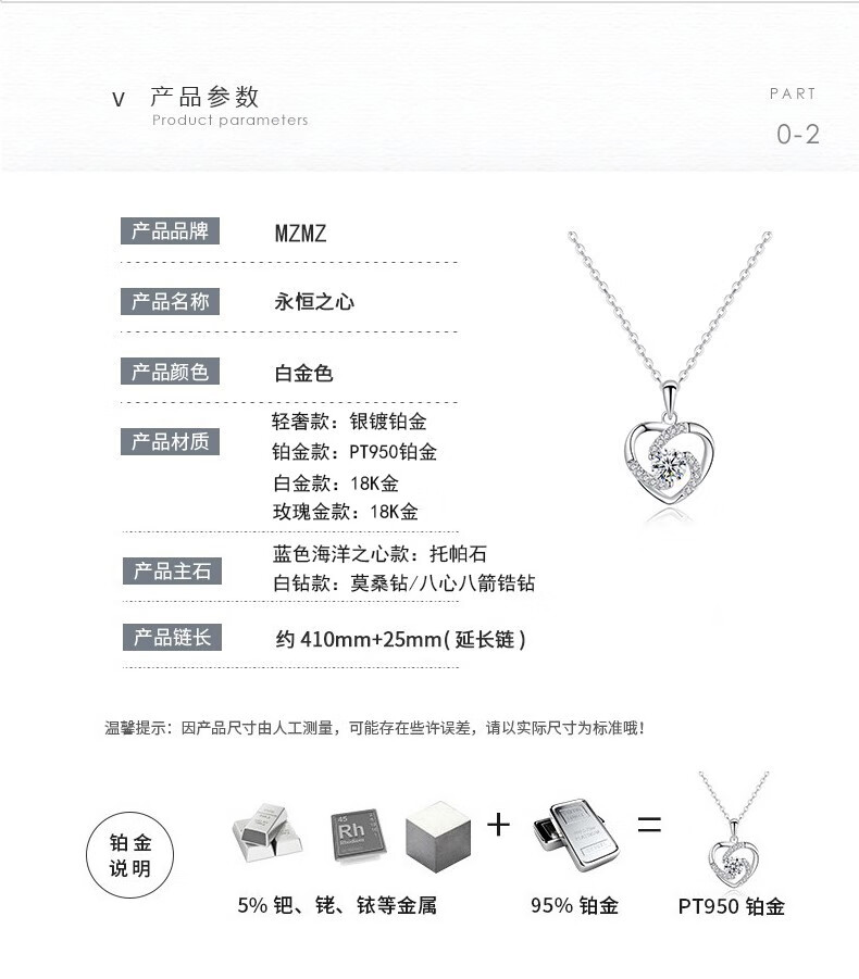 MZMZ Eternal Heart Platinum Necklace for Women pt950 Platinum Clavicle Chain Chinese Valentine's Day Gift for Girlfriend and Wife Light Luxury Style - Inlaid with Heart of the Ocean Free Engraving Exquisite Gift Box for Girls
