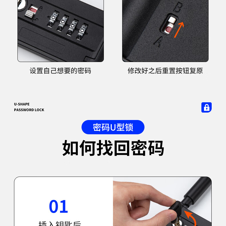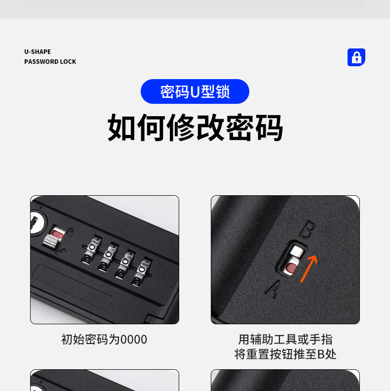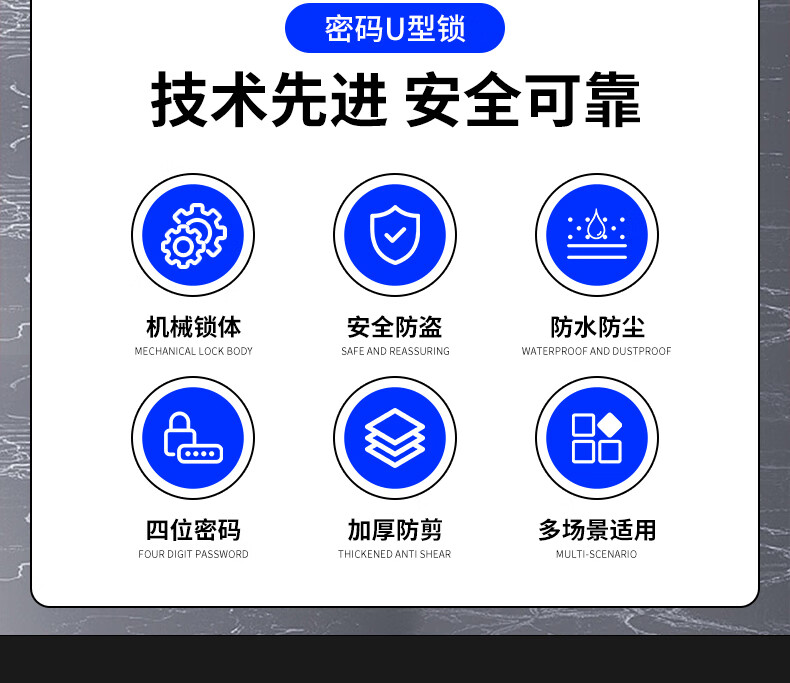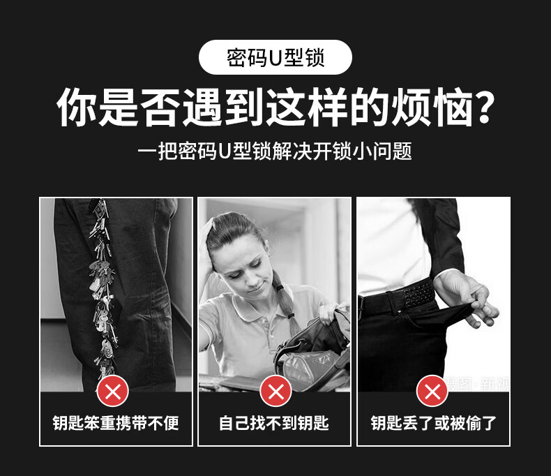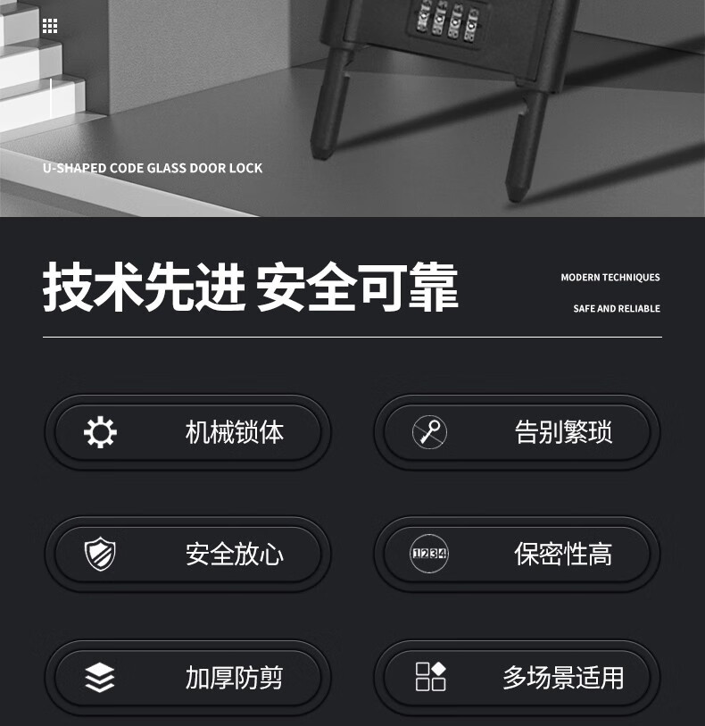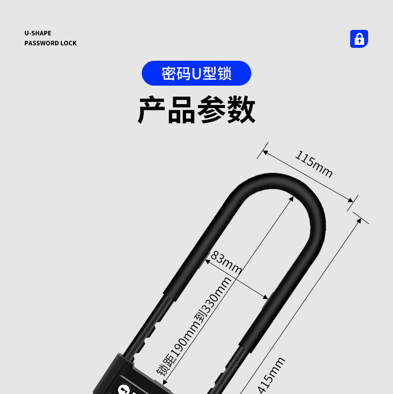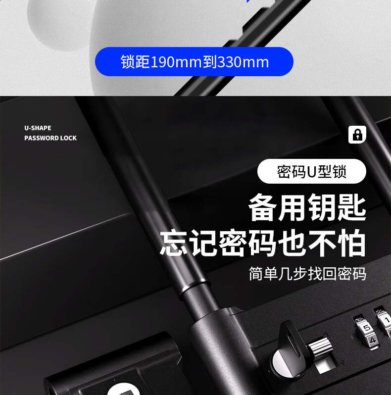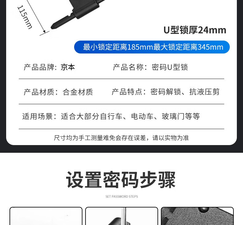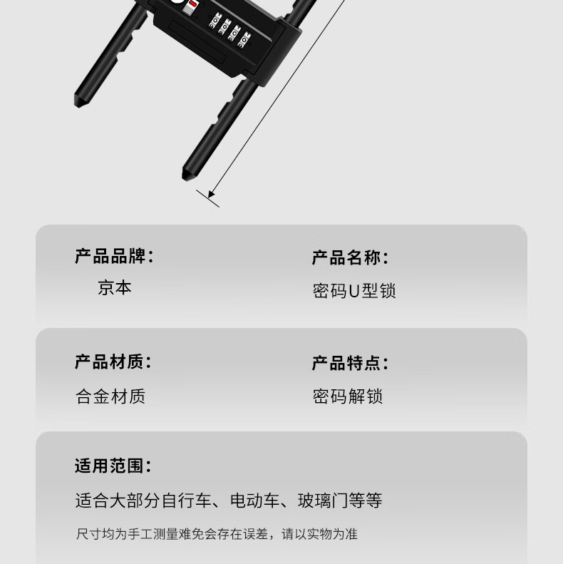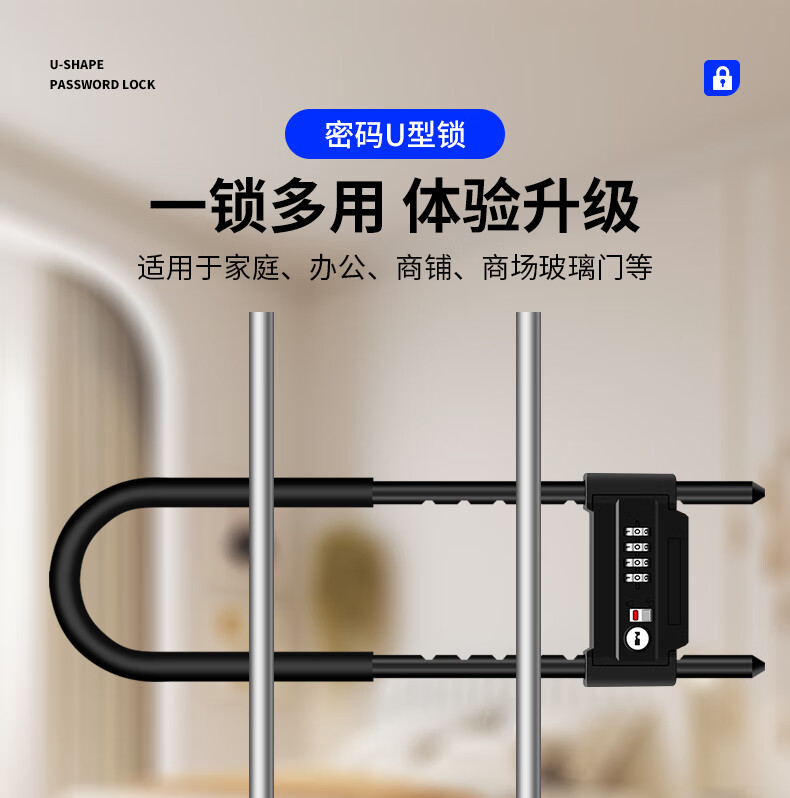 Jingben door opener U-shaped password lock glass door lock rust-proof, shear-resistant and pry-resistant shop double door motorcycle U-shaped lock promotion 18-35cm metal password U-shaped lock