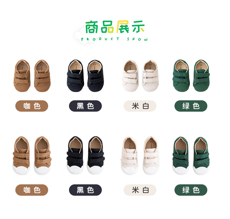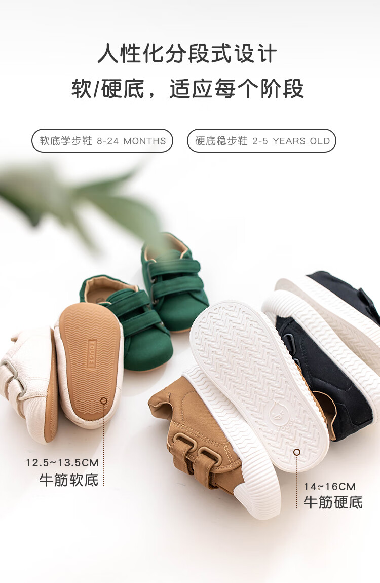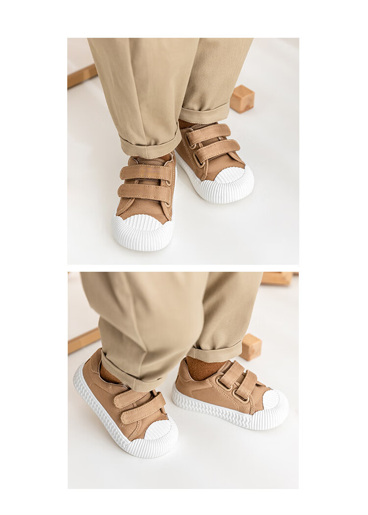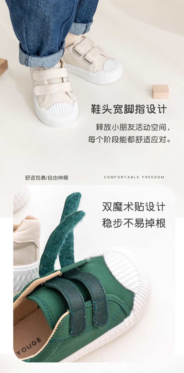 YOUGE children's casual and versatile sports canvas shoes 2023 new fashionable Velcro shoes for infants and young children, off-white (14-16 hard sole), inner length 15cm