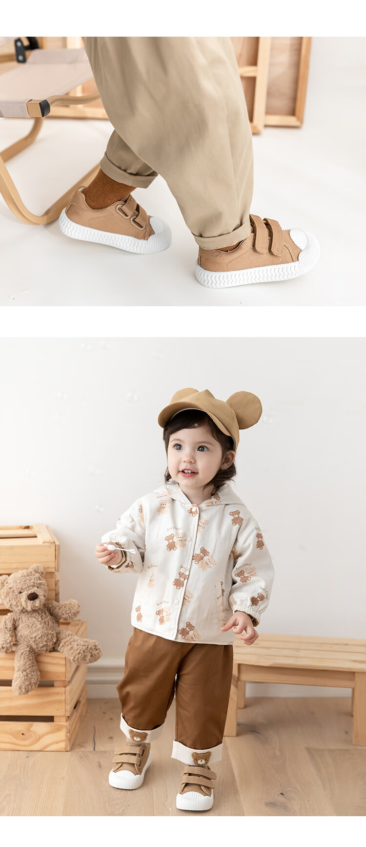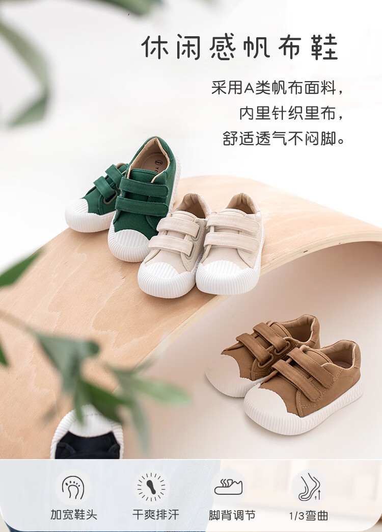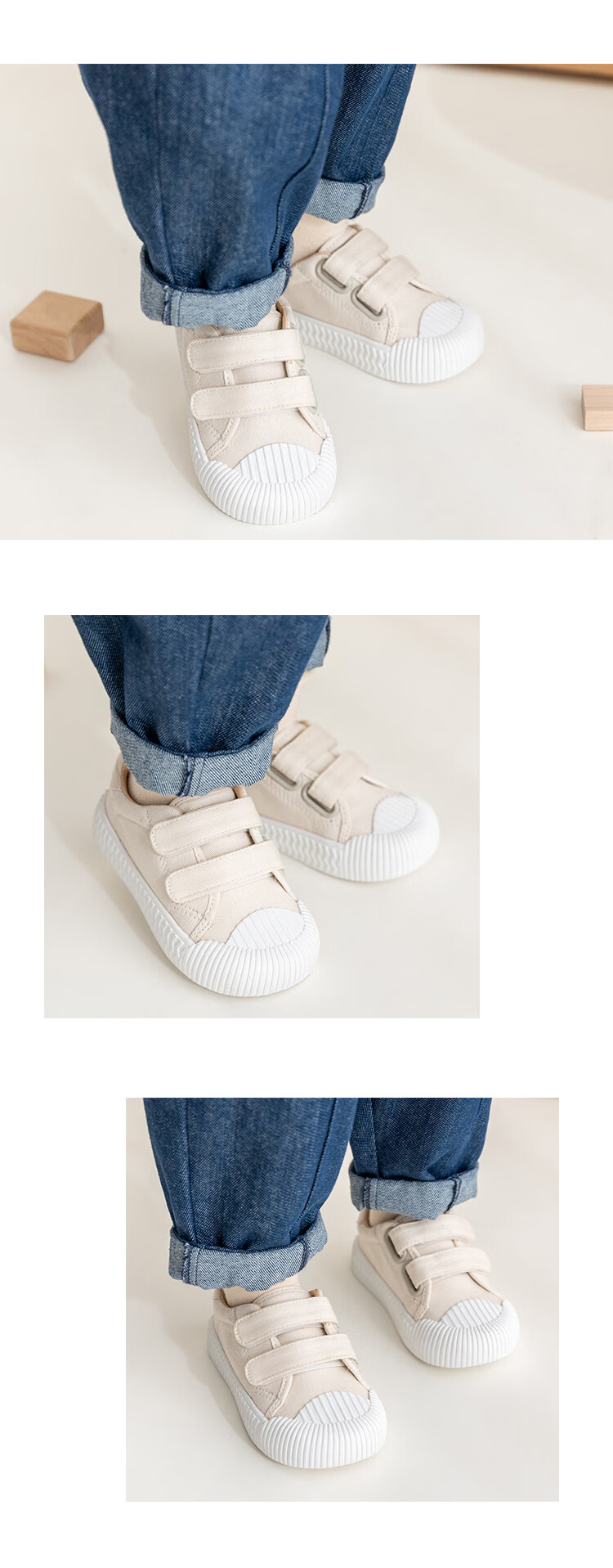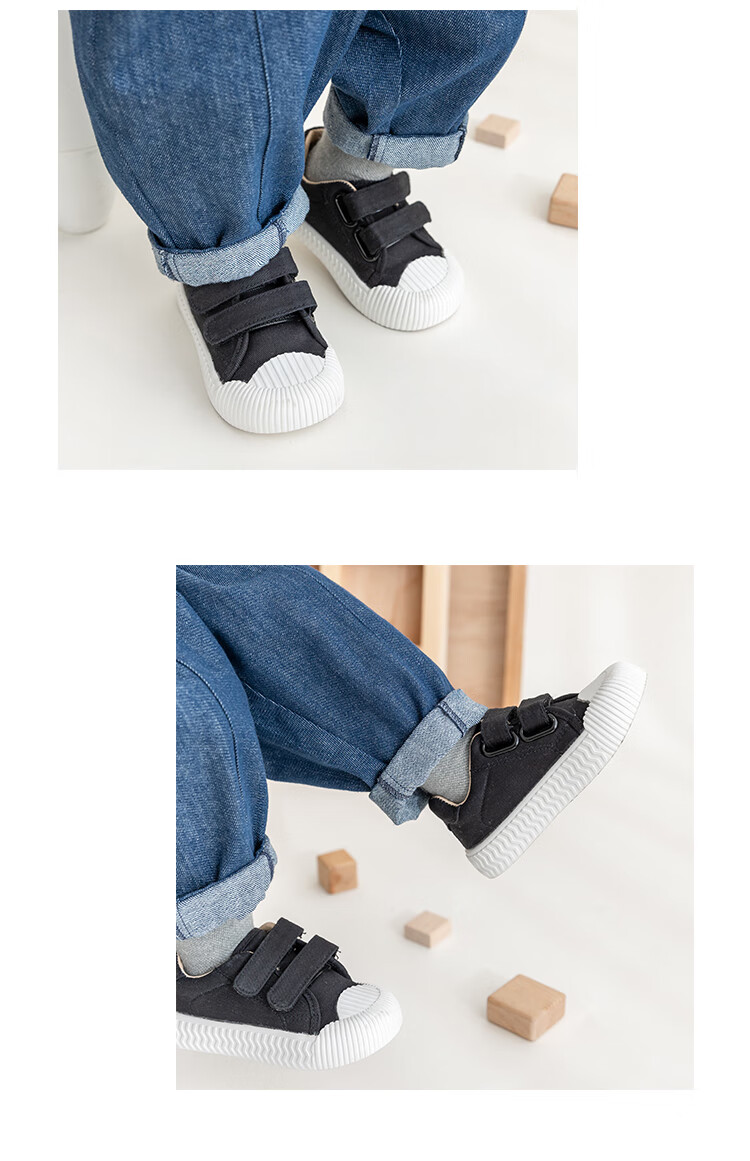 YOUGE children's casual and versatile sports canvas shoes 2023 new fashionable Velcro shoes for infants and young children, off-white (14-16 hard sole), inner length 15cm
