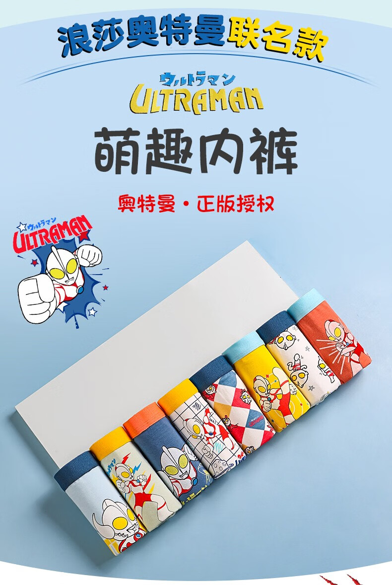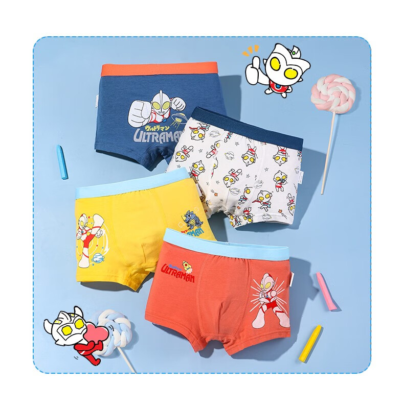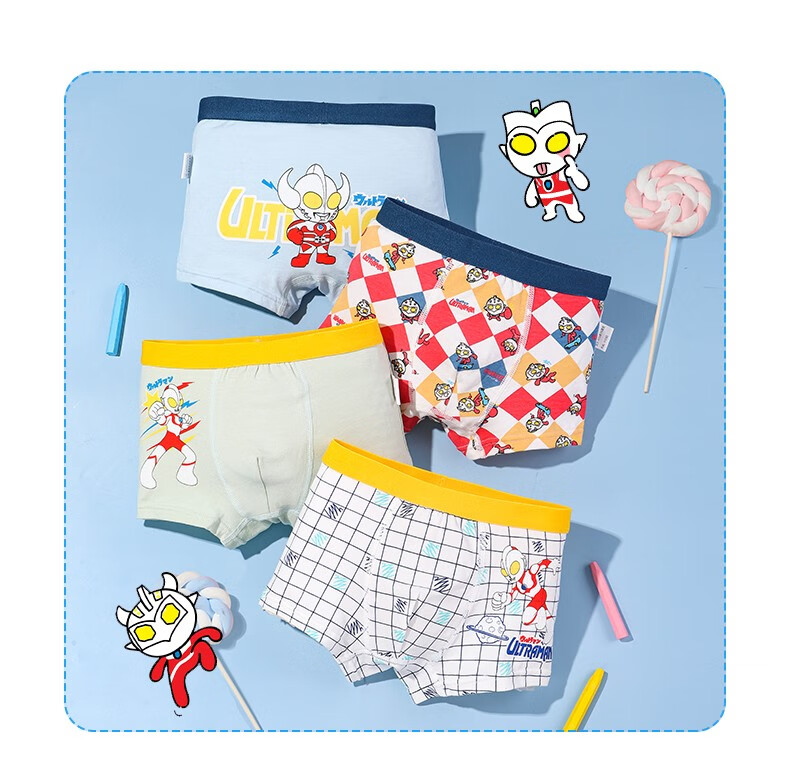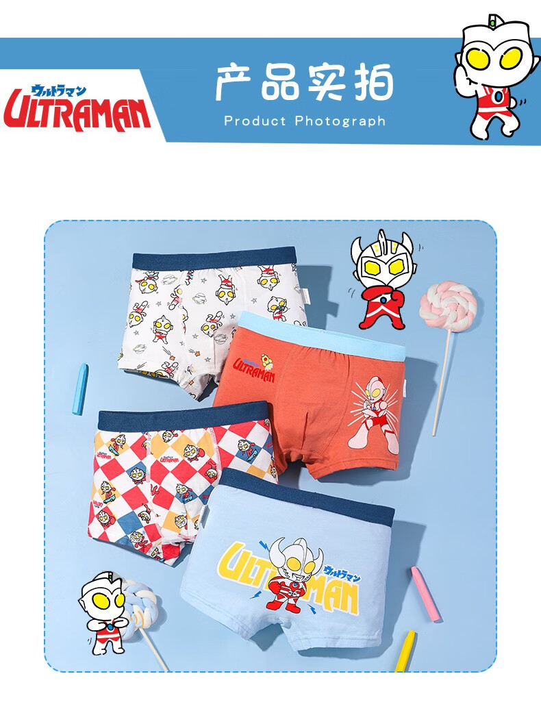 Langsha children's underwear for boys, Ultraman baby boxers, junior high school students, middle and older children's skin-friendly shorts for all seasons, Ultraman Warrior (combed cotton, 7A antibacterial) 4 pieces 120 Recommended height 100-110cm