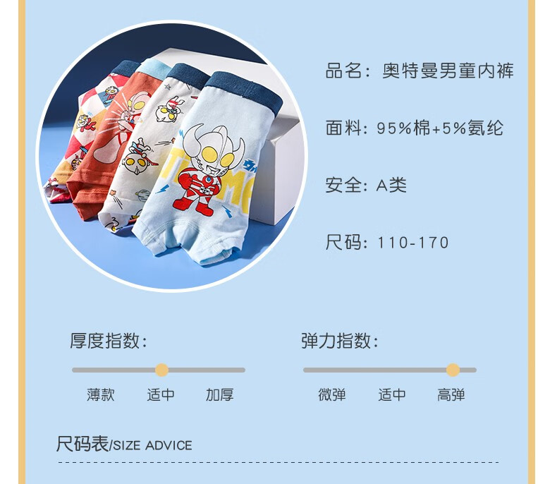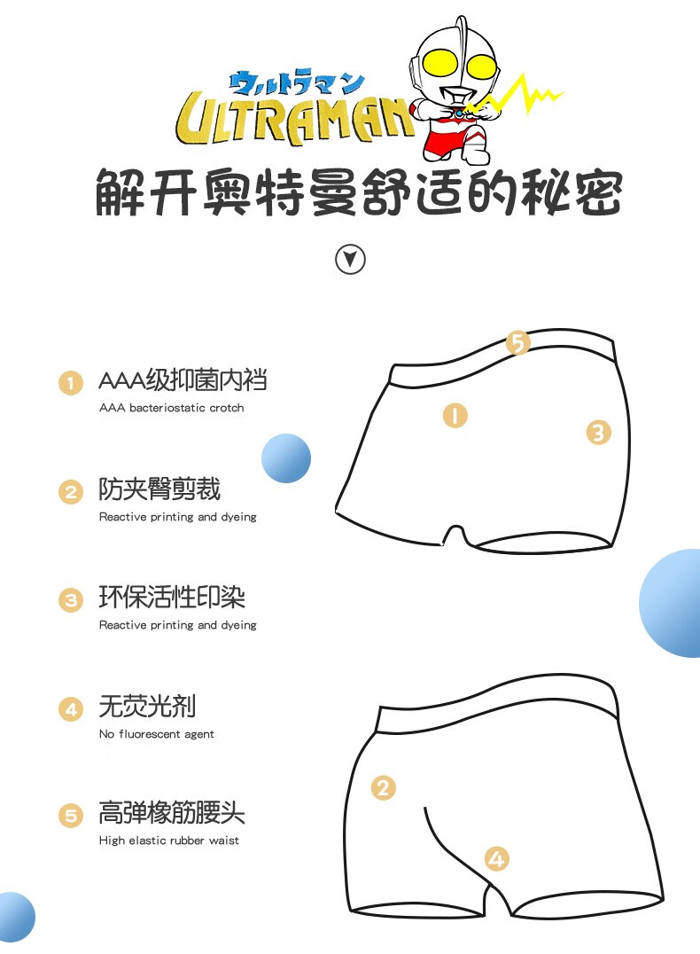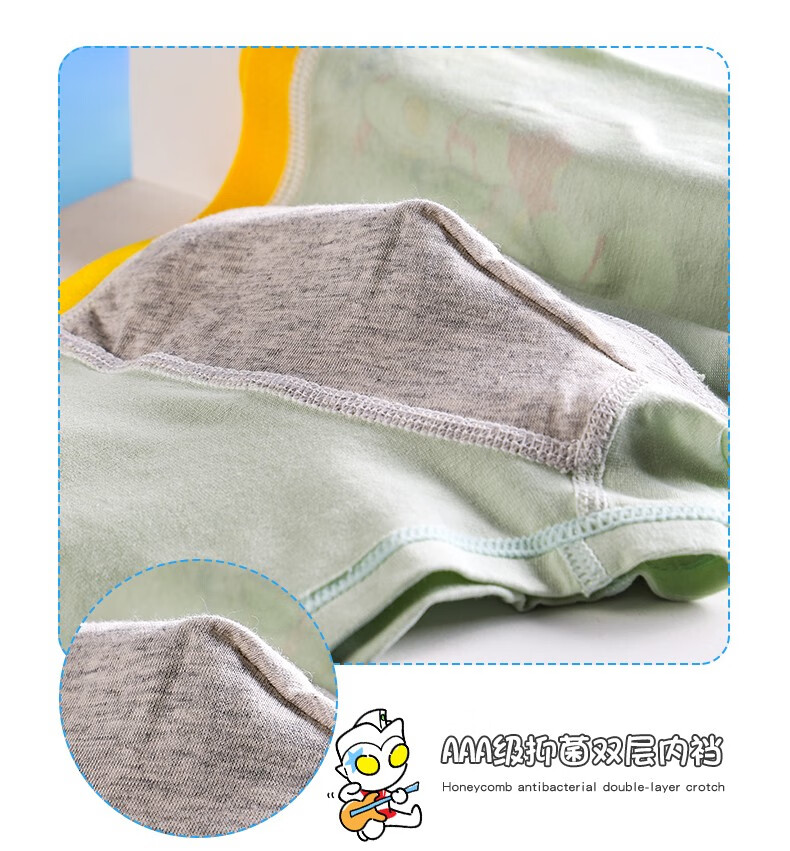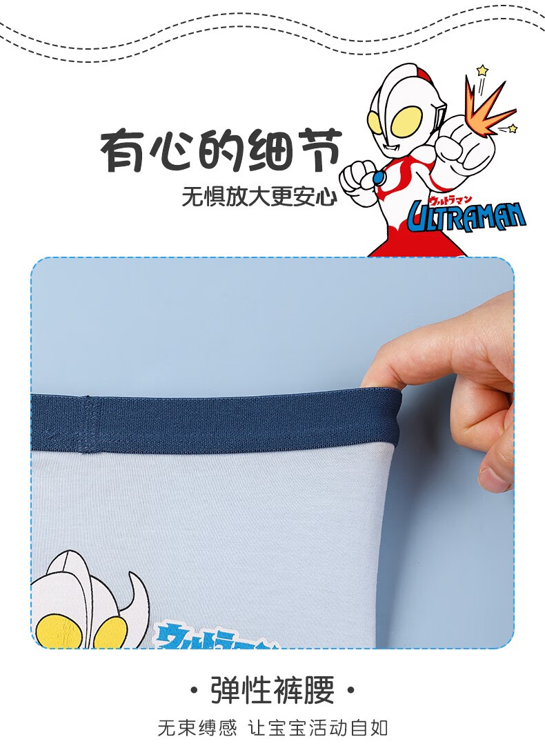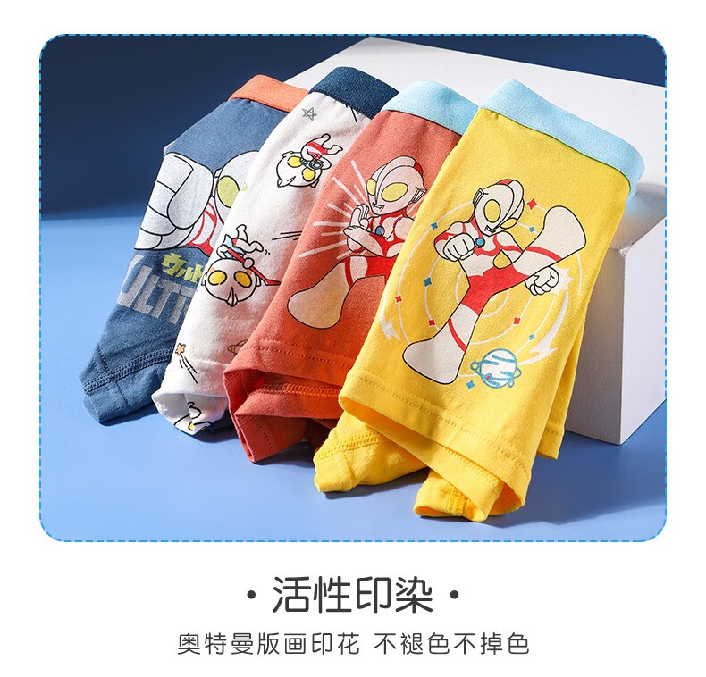 Langsha children's underwear for boys, Ultraman baby boxers, junior high school students, middle and older children's skin-friendly shorts for all seasons, Ultraman Warrior (combed cotton, 7A antibacterial) 4 pieces 120 Recommended height 100-110cm