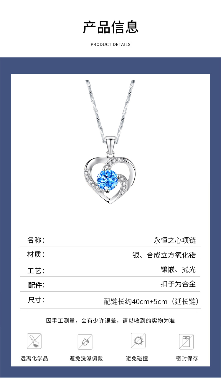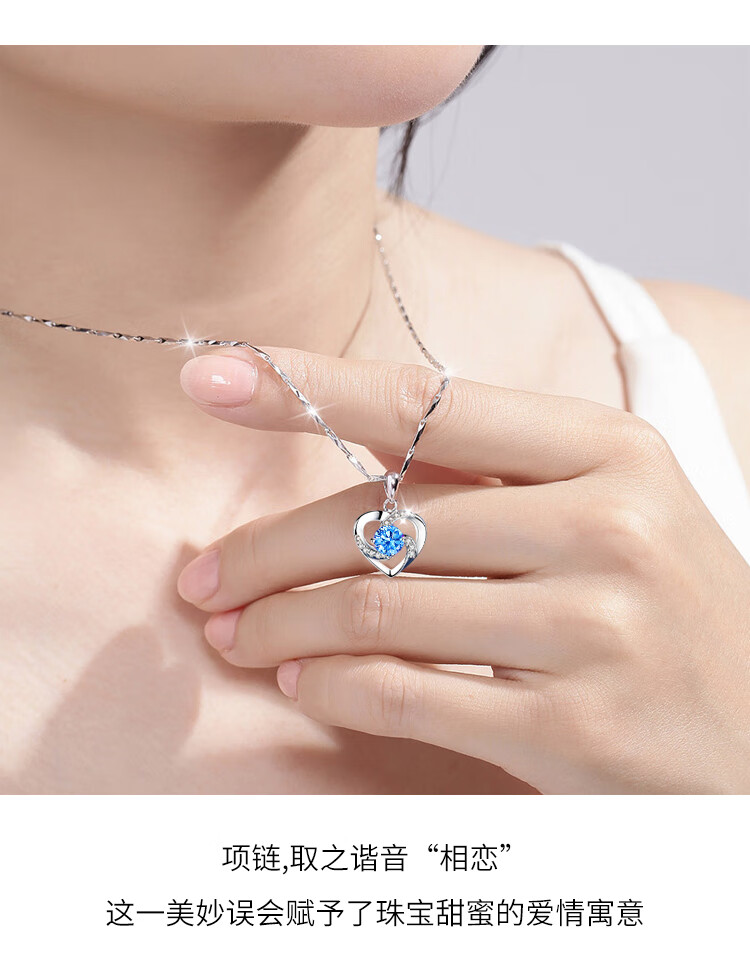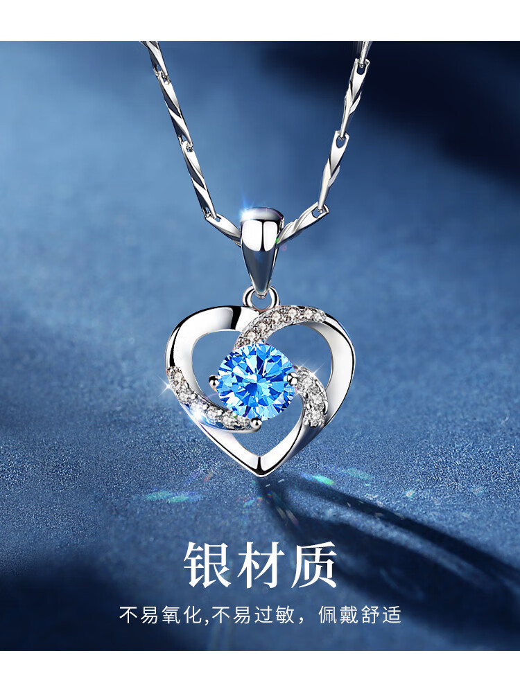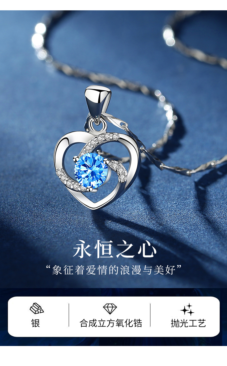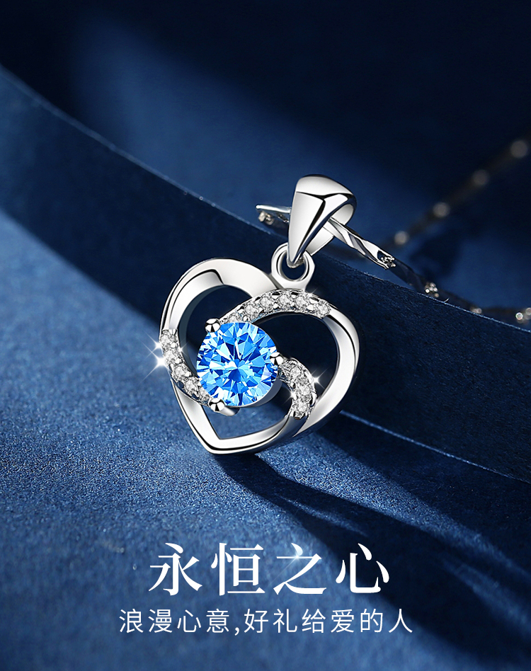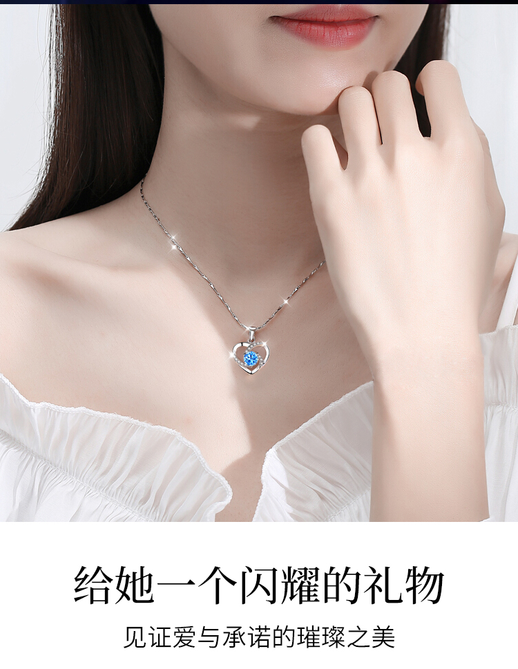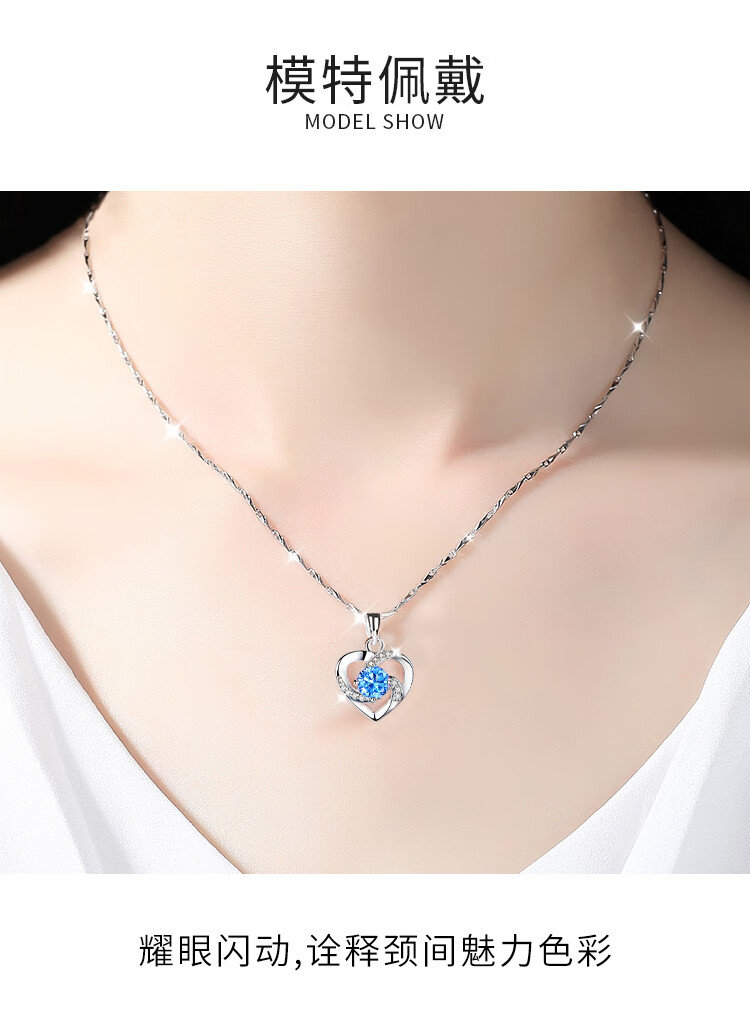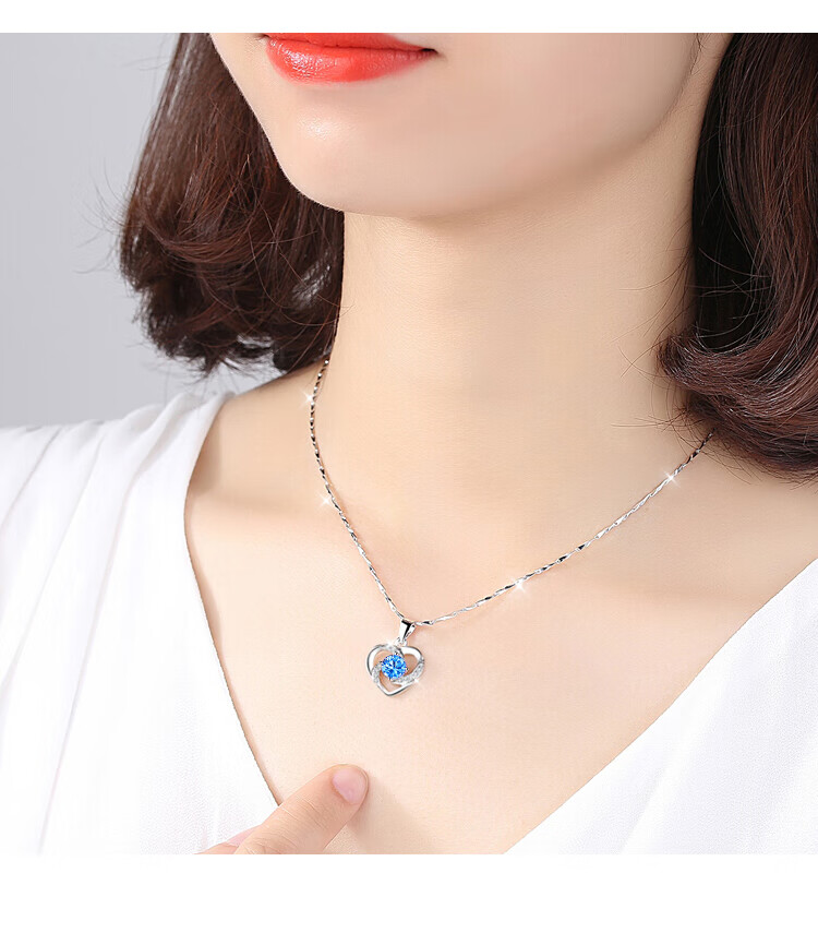 GRAMDA Eternal Heart Pure Silver Necklace Women's Clavicle Chain Mom Pendant Fashion Jewelry Wife's Birthday Gift for Girlfriend Pure Silver Necklace 925 Silver Bracelet Rose Gift Box