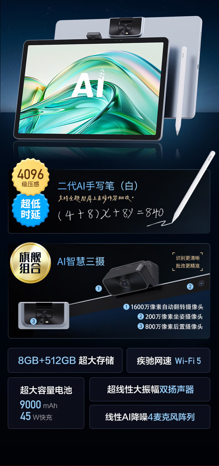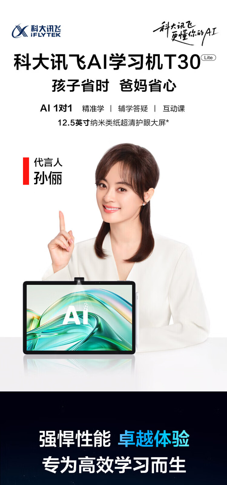 IFLYTEK Artificial Intelligence Learning Machine T30lite/T30pro AI accurate question answering tutoring large screen eye protection student tablet primary school junior high school high school synchronous tutoring machine learning and training machine T30 Lite 8+512G 8 warehouse speed delivery